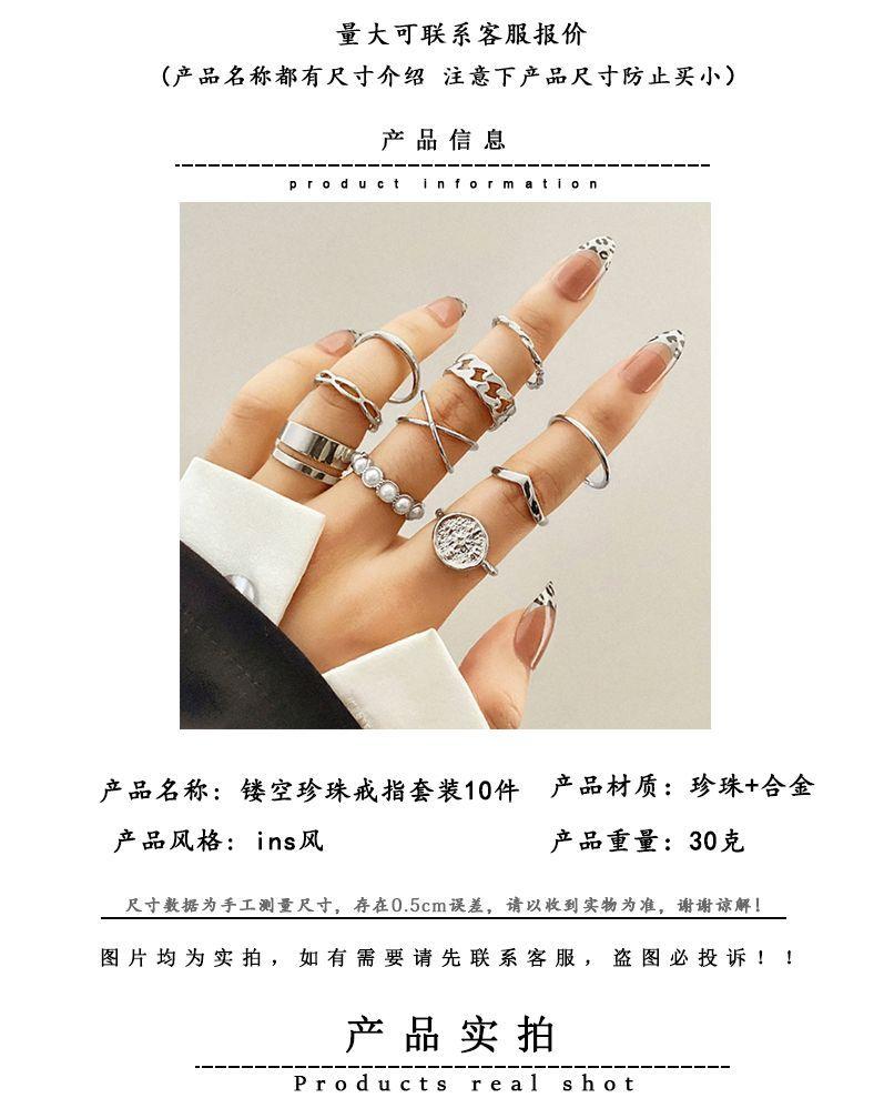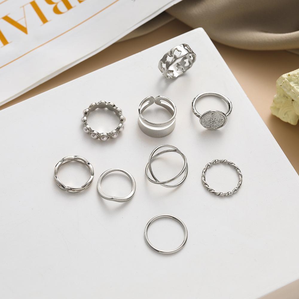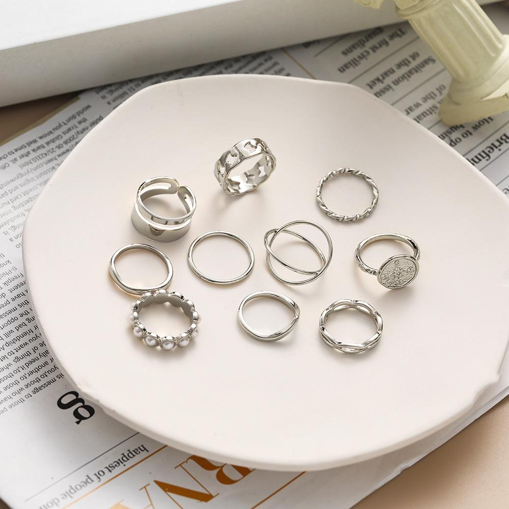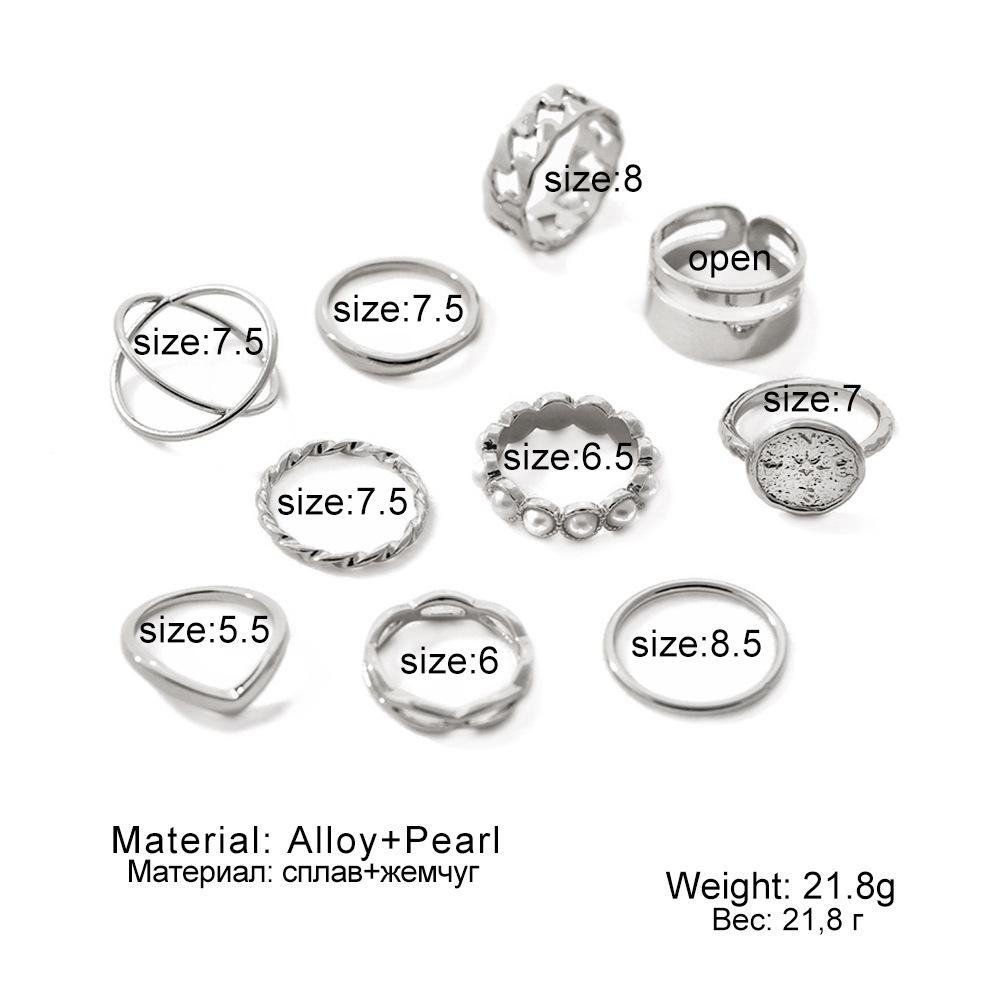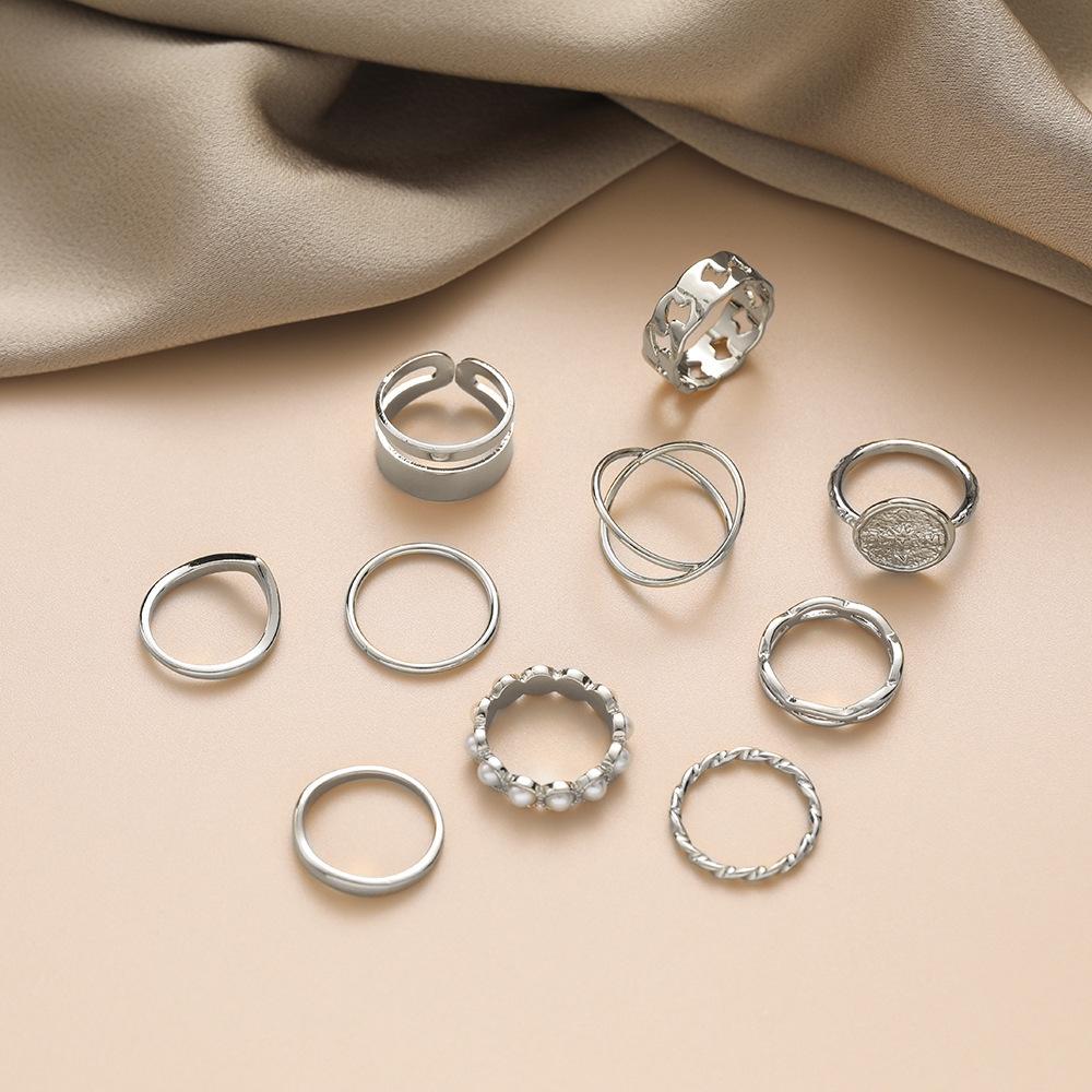 Juego de anillos de metal perlado más vendidos de Aliexpress para mujer Moda europea y americana Anillo simple para nudillo Joyería Juego de 10 piezas