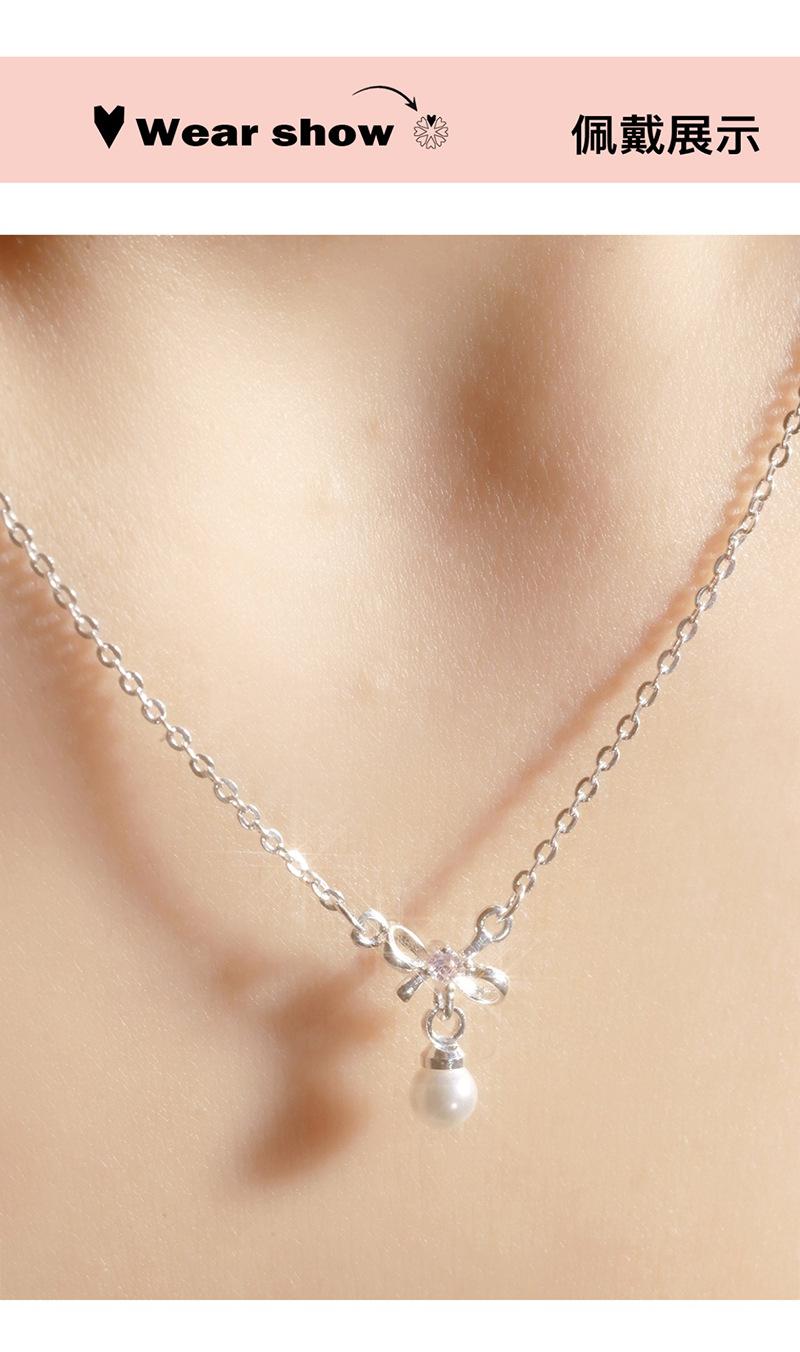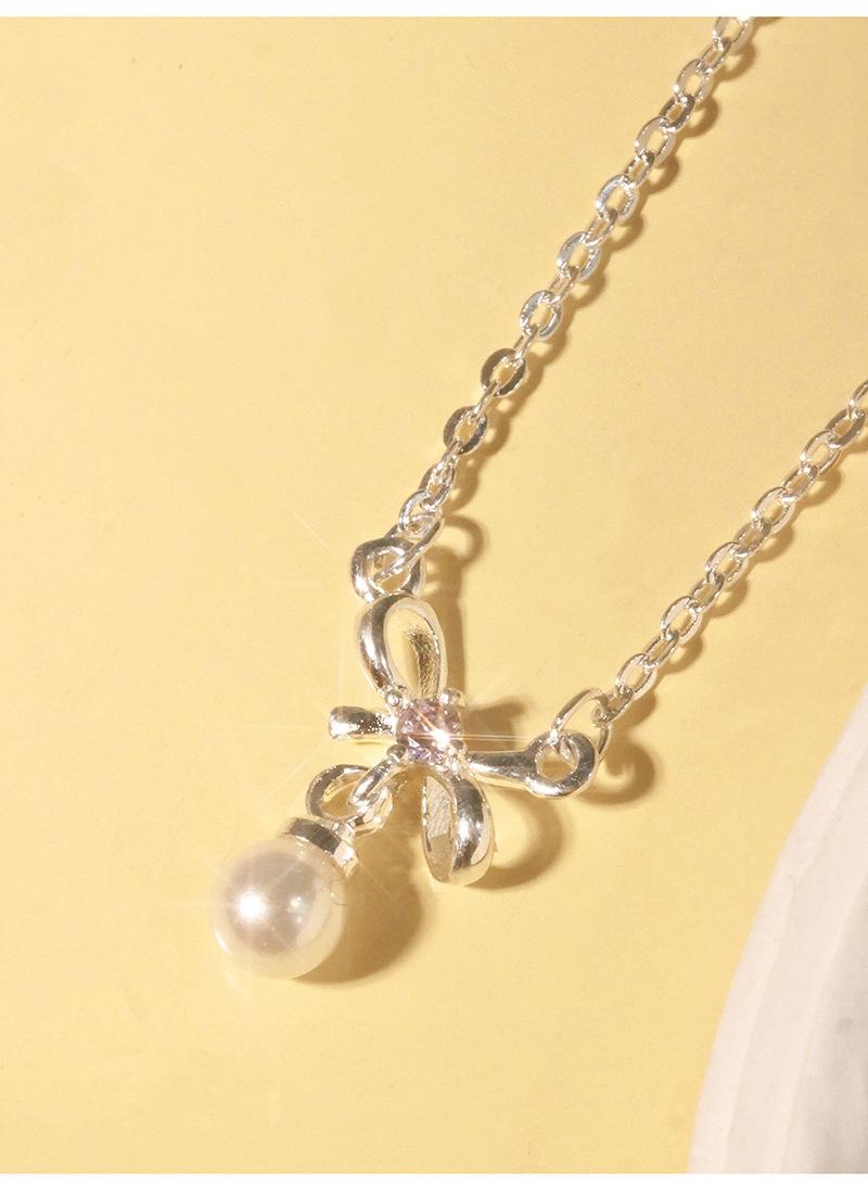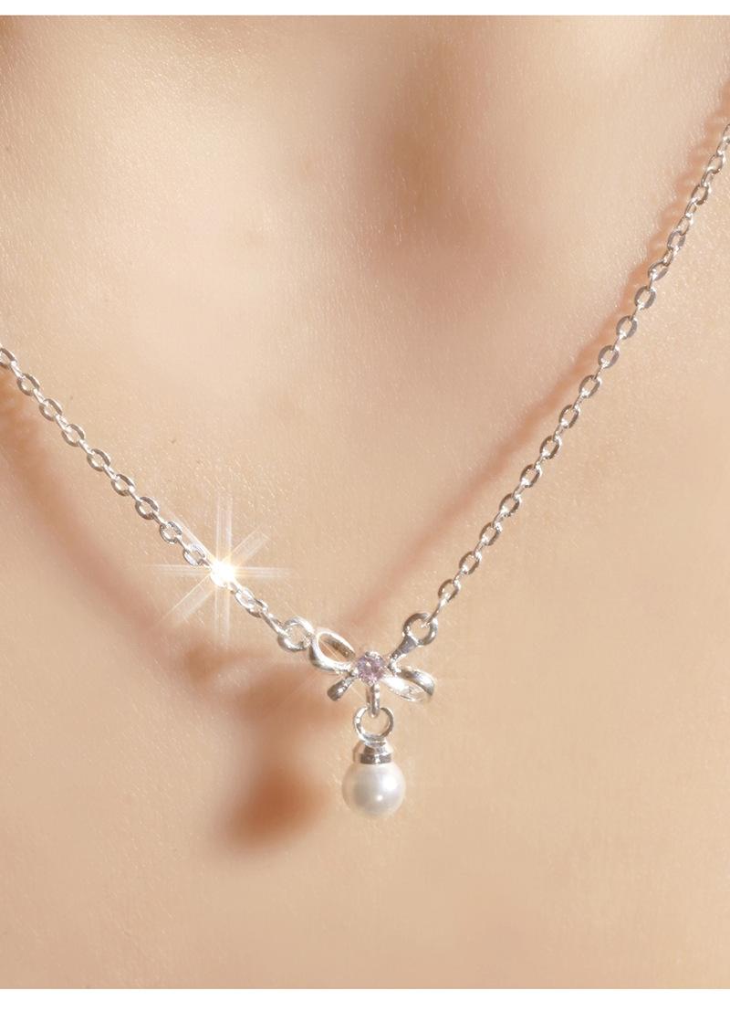 Collar de Lazo para Mujer Nicho Lujo Ligero Alta Gama Colgante de Perla Imitación Moda Zircón Acero Inoxidable Cadena Clavícula Nuevo Estilo