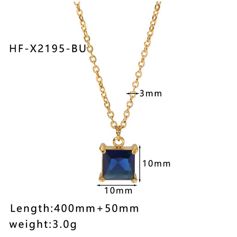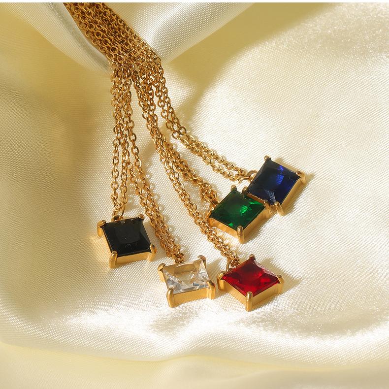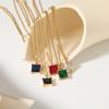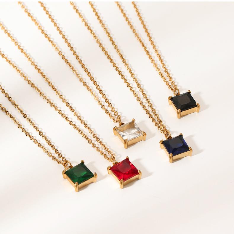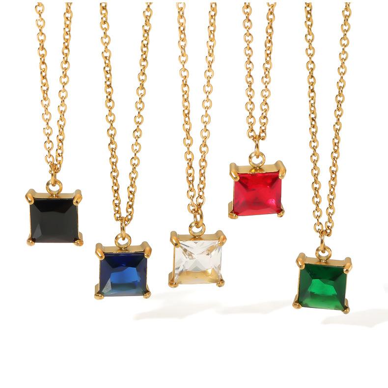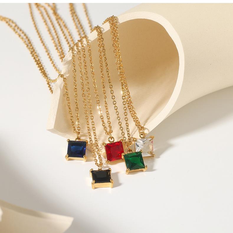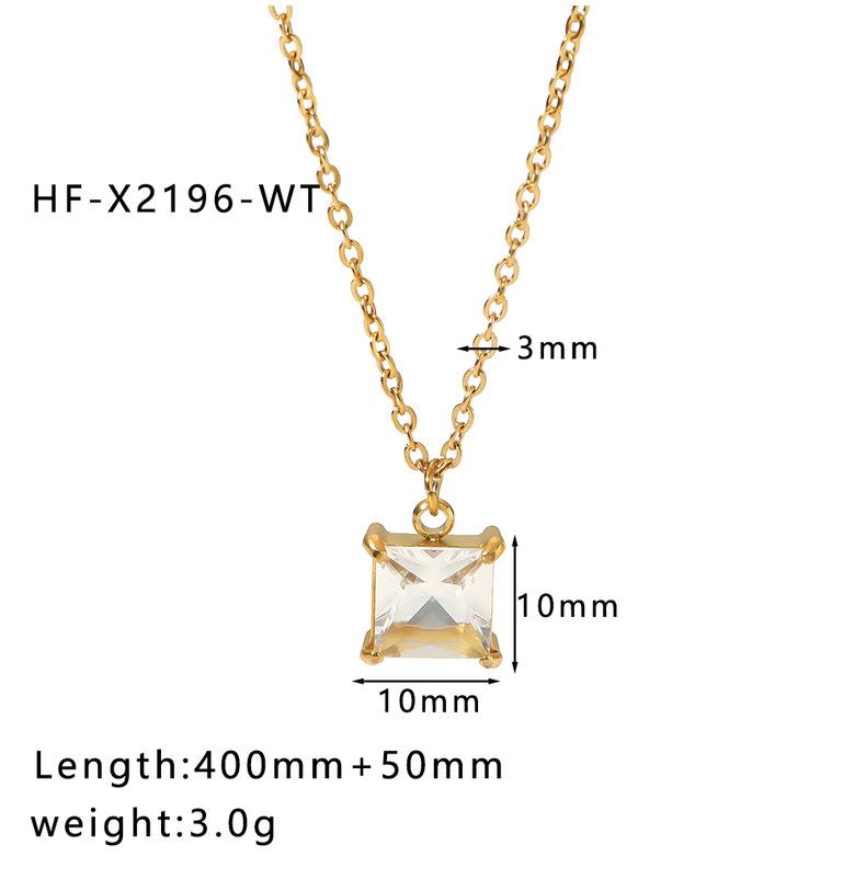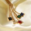 Collar Europeo y Americano Transfronterizo Ins de Acero de Titanio con Incrustaciones de Zircón para Mujer Acero Inoxidable Chapado en Oro de 18K Cuadrado Simple Retro para Mujer
