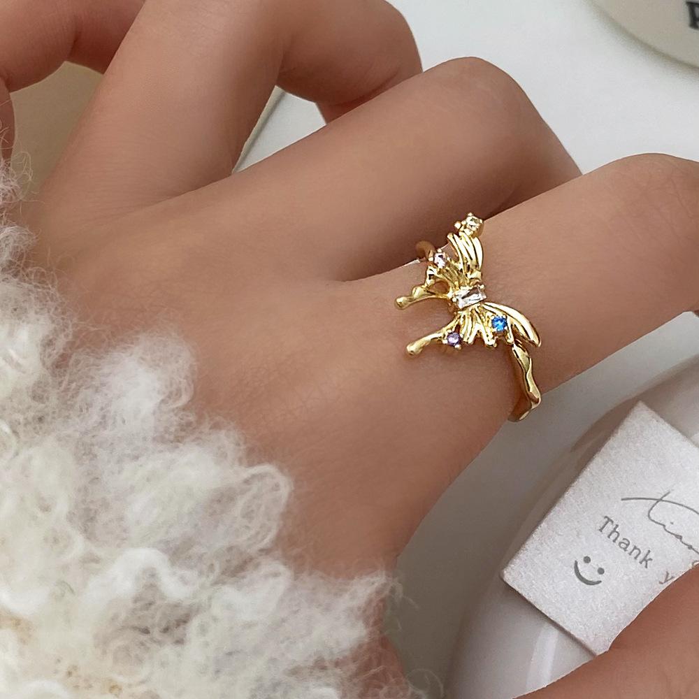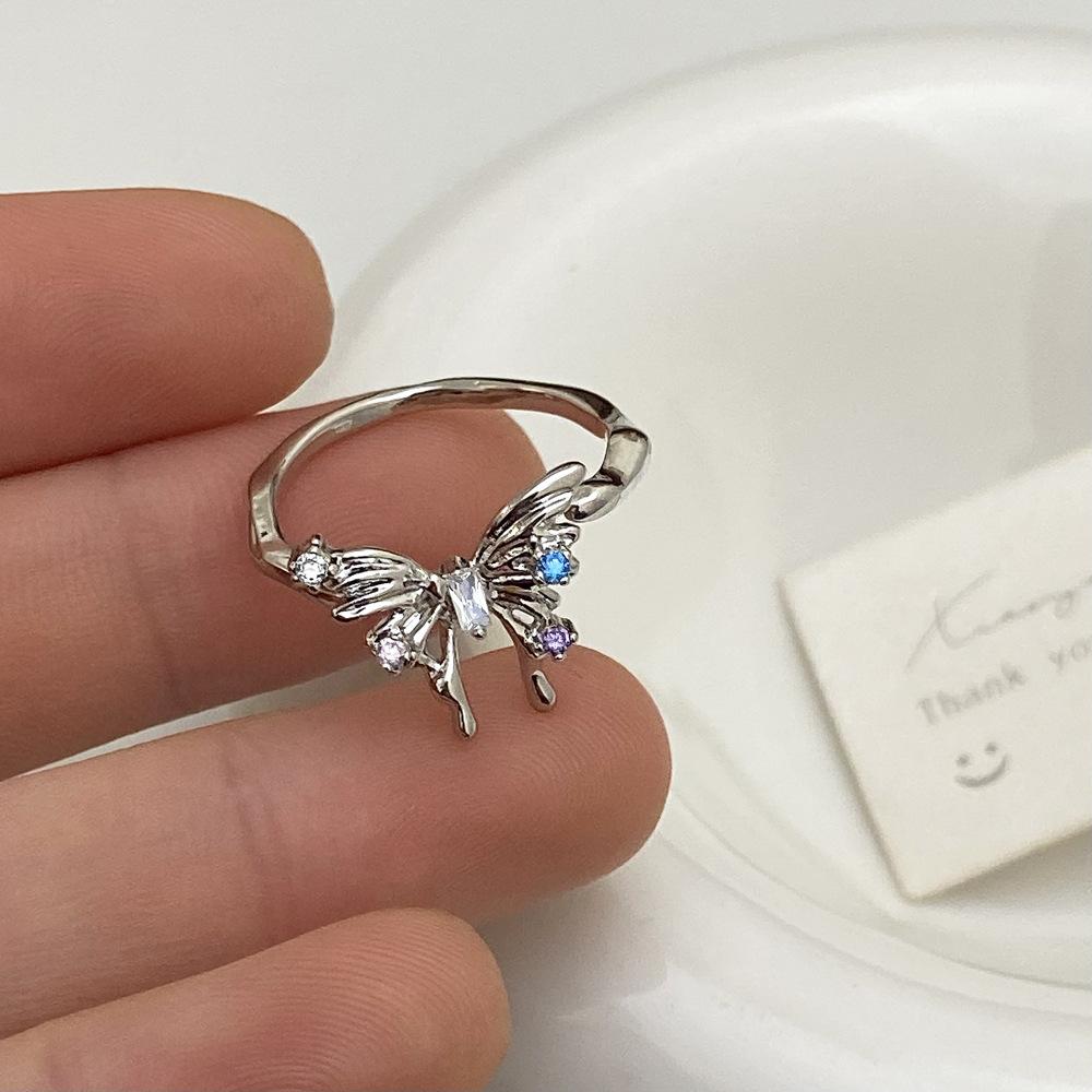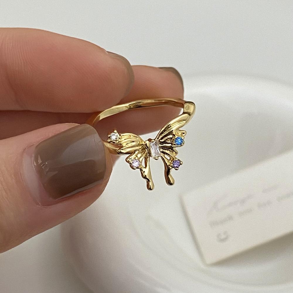 Golden Butterfly Opening Ring, silver butterfly opening ring