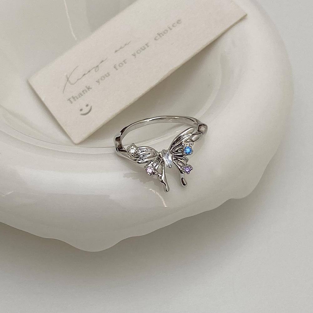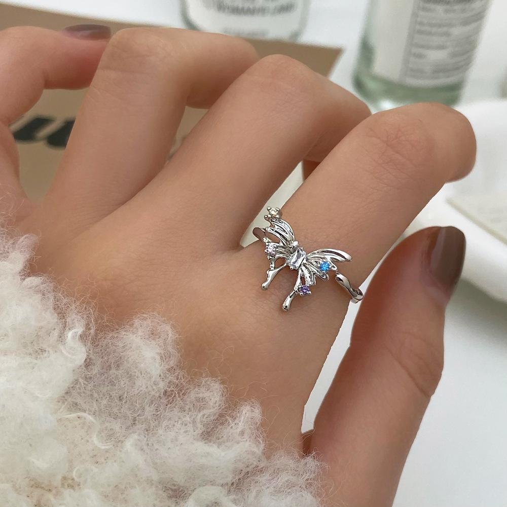 Anillo Abierto de Mariposa Irregular para Mujer Diseño Nicho Ajustable Anillo para Dedo Índice Estilo Frío Versátil Nuevo Anillo