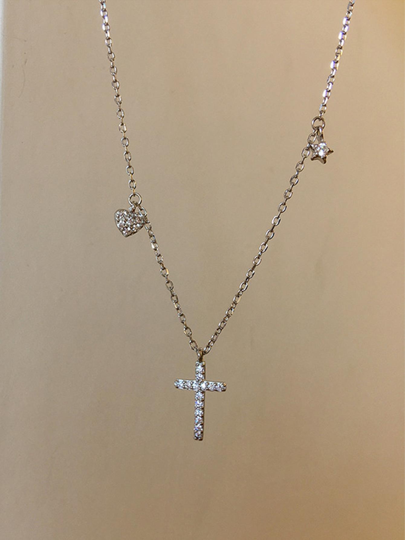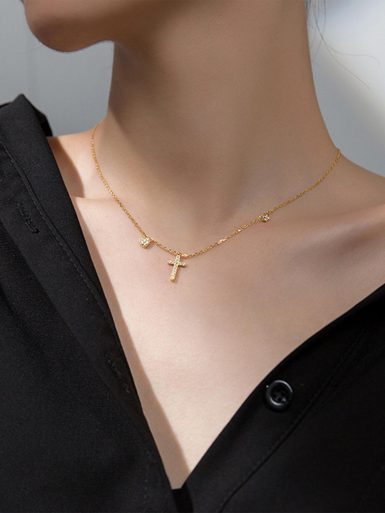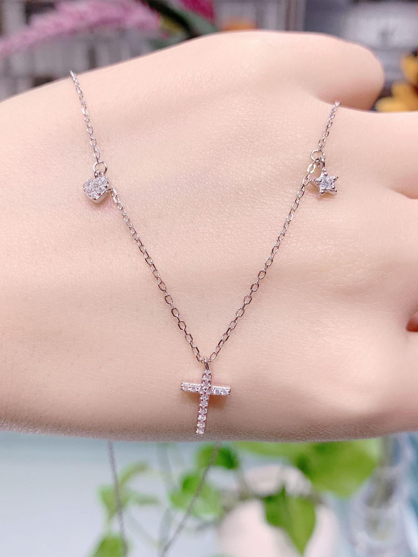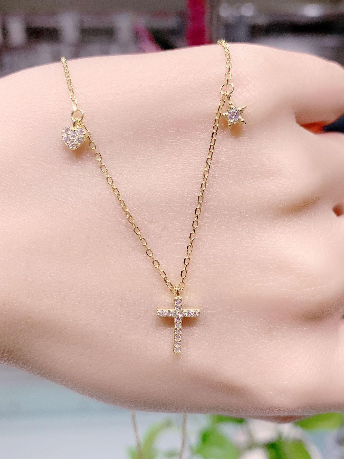Nuevo Collar de Clavícula con Cruz, Estrella y Luna con Incrustaciones de Diamantes para Mujer, Verano, Luz Solar, Lujo Ligero, Nicho Exquisito, Combinable