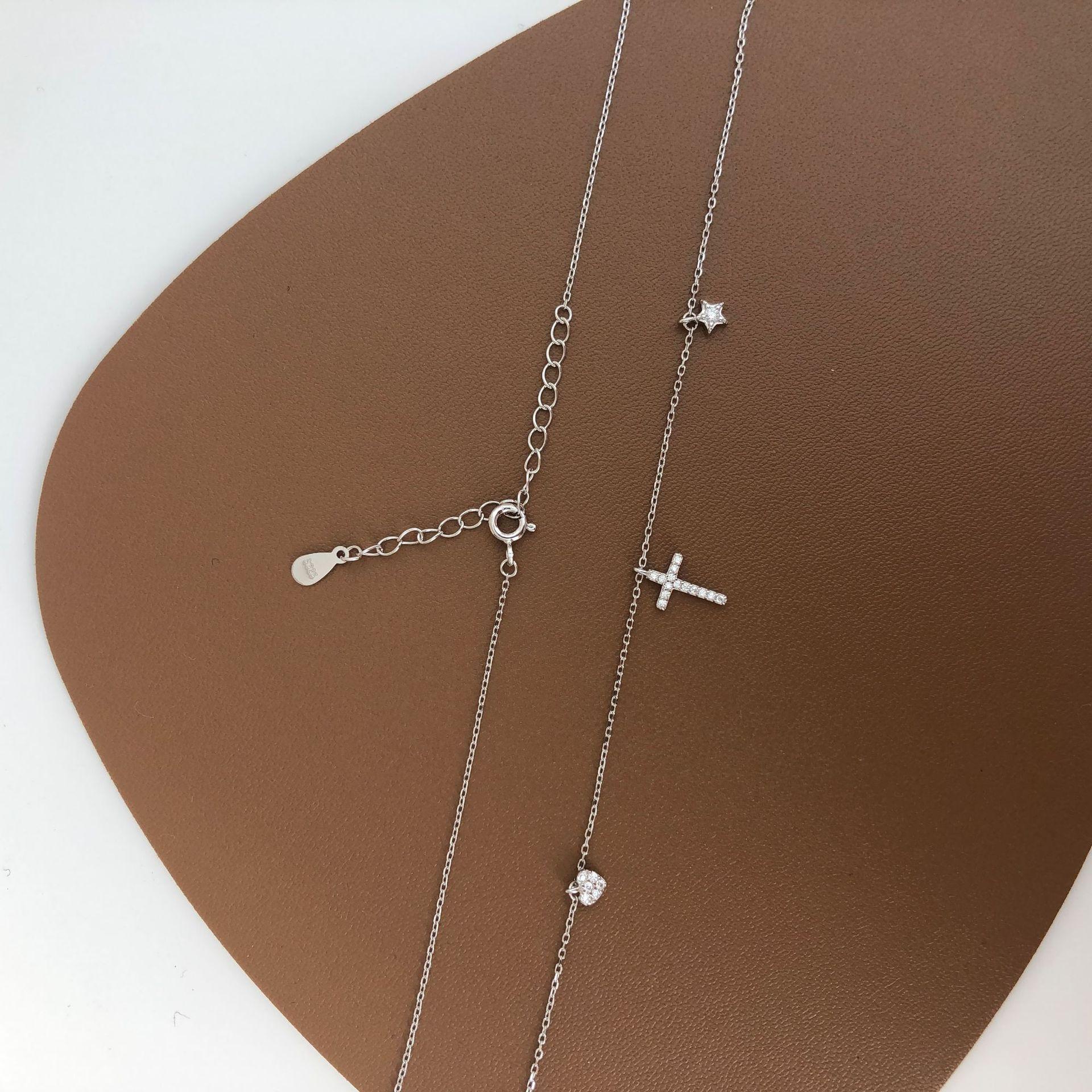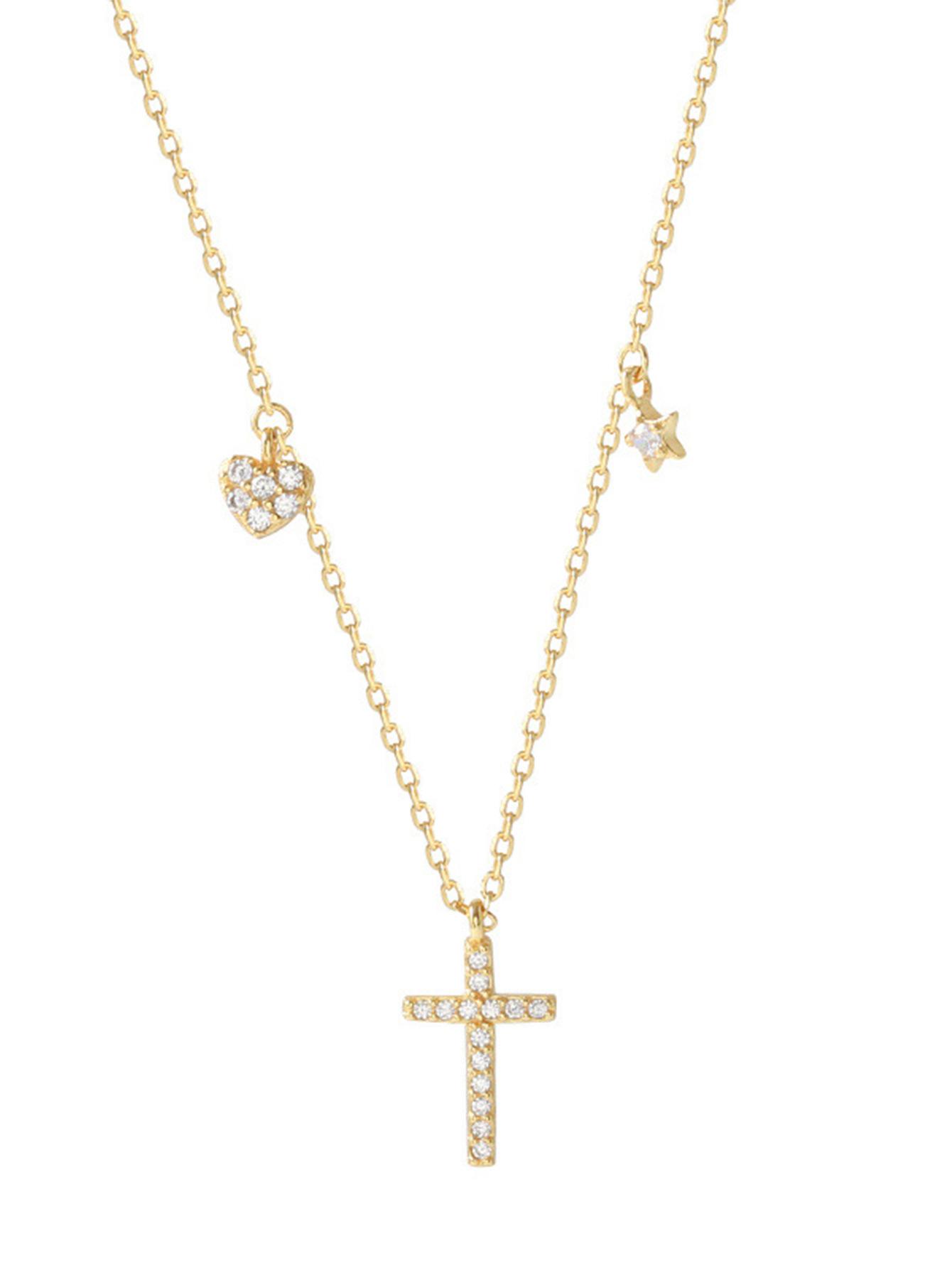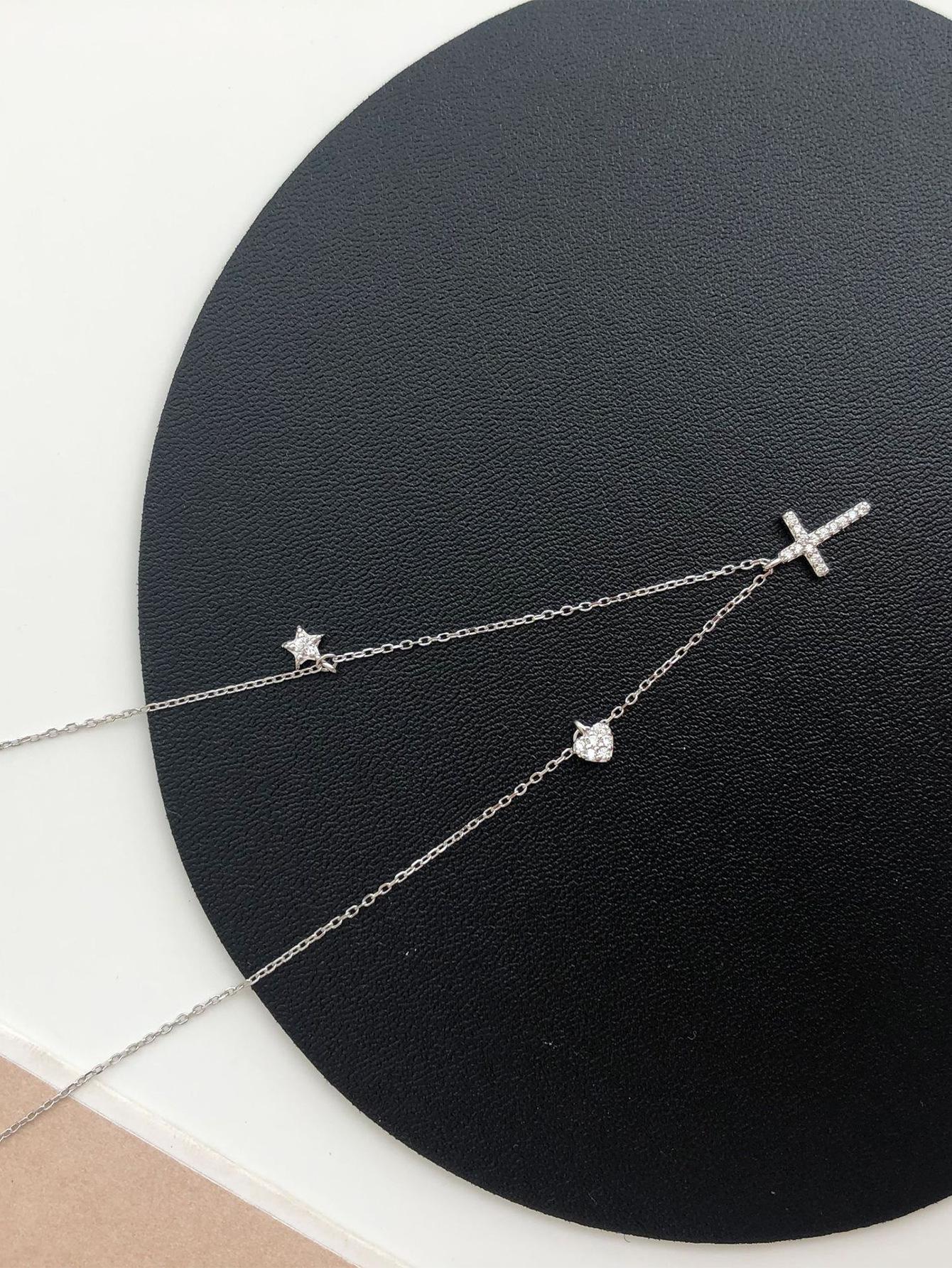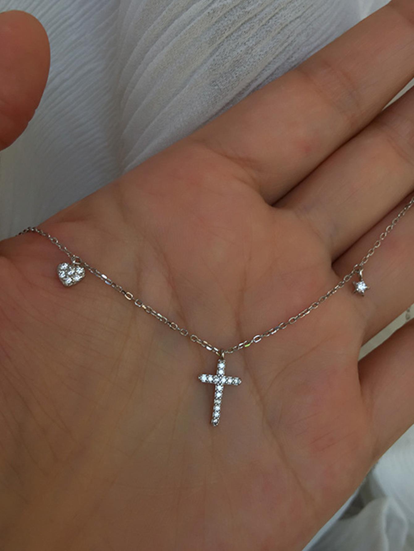Nuevo Collar de Clavícula con Cruz, Estrella y Luna con Incrustaciones de Diamantes para Mujer, Verano, Luz Solar, Lujo Ligero, Nicho Exquisito, Combinable