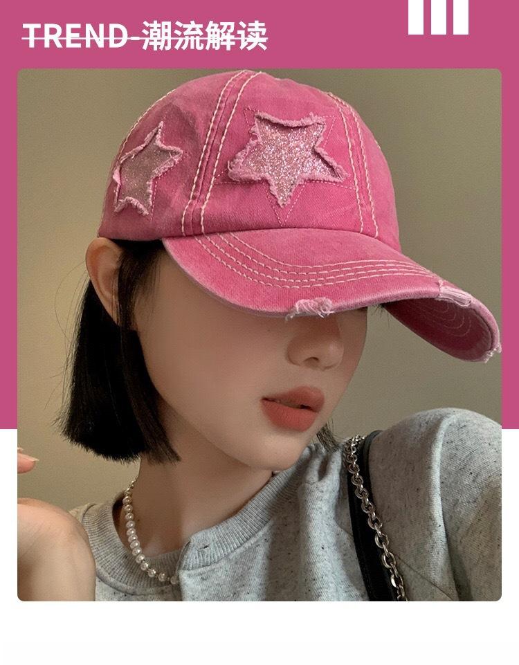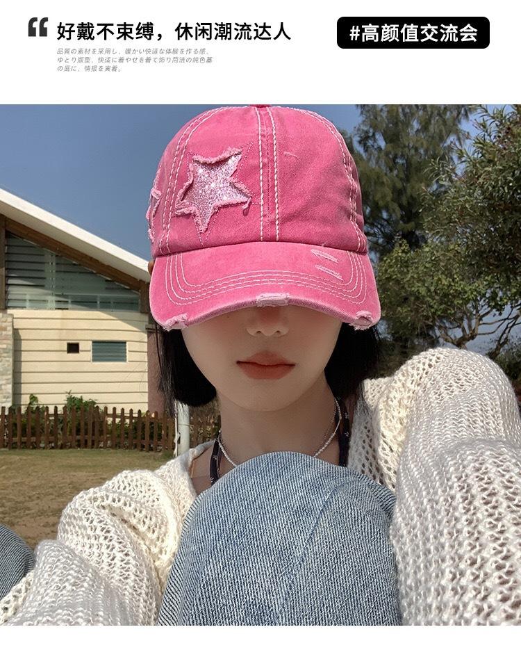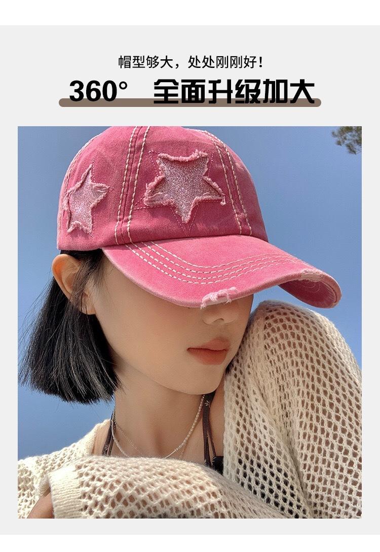 Gorra de béisbol retro con agujeros para mujer, primavera y verano, combina con todo, cabeza grande, cara pequeña, rosa, hermosa, sombrero de ala ancha para mujer