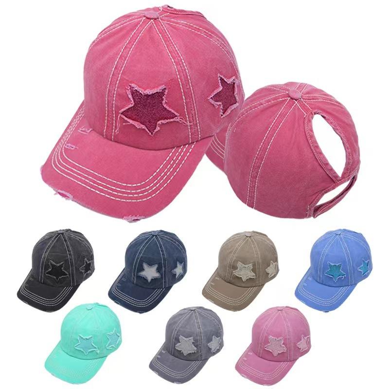 Sequin stars do old ponytail cap rose red, Sequin star distressed ponytail cap pink, Sequins stars do old pony...