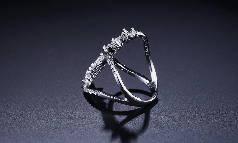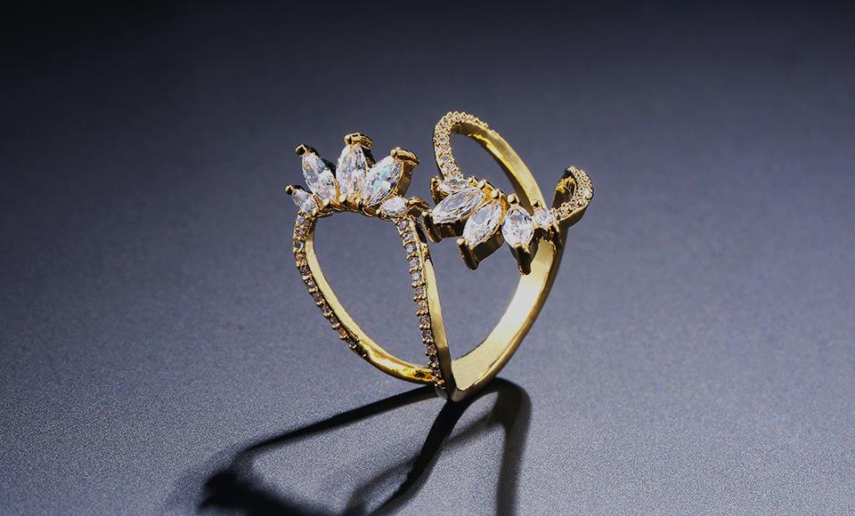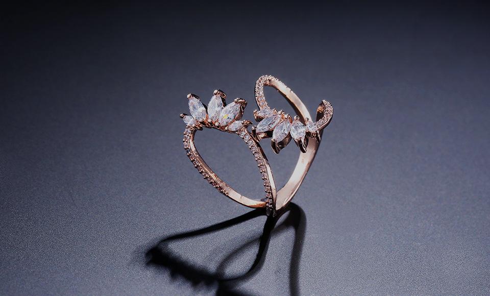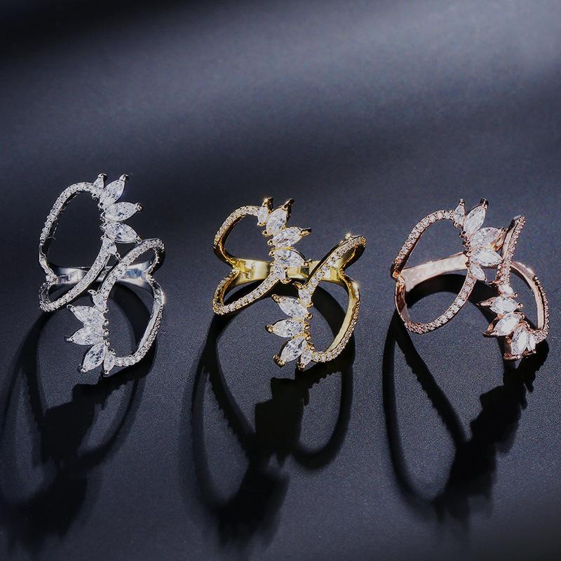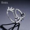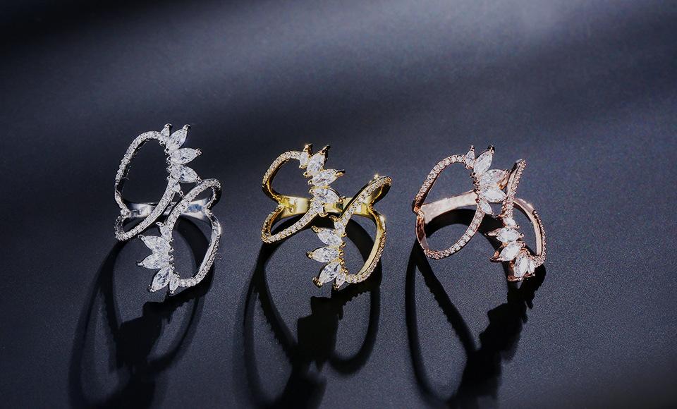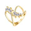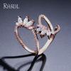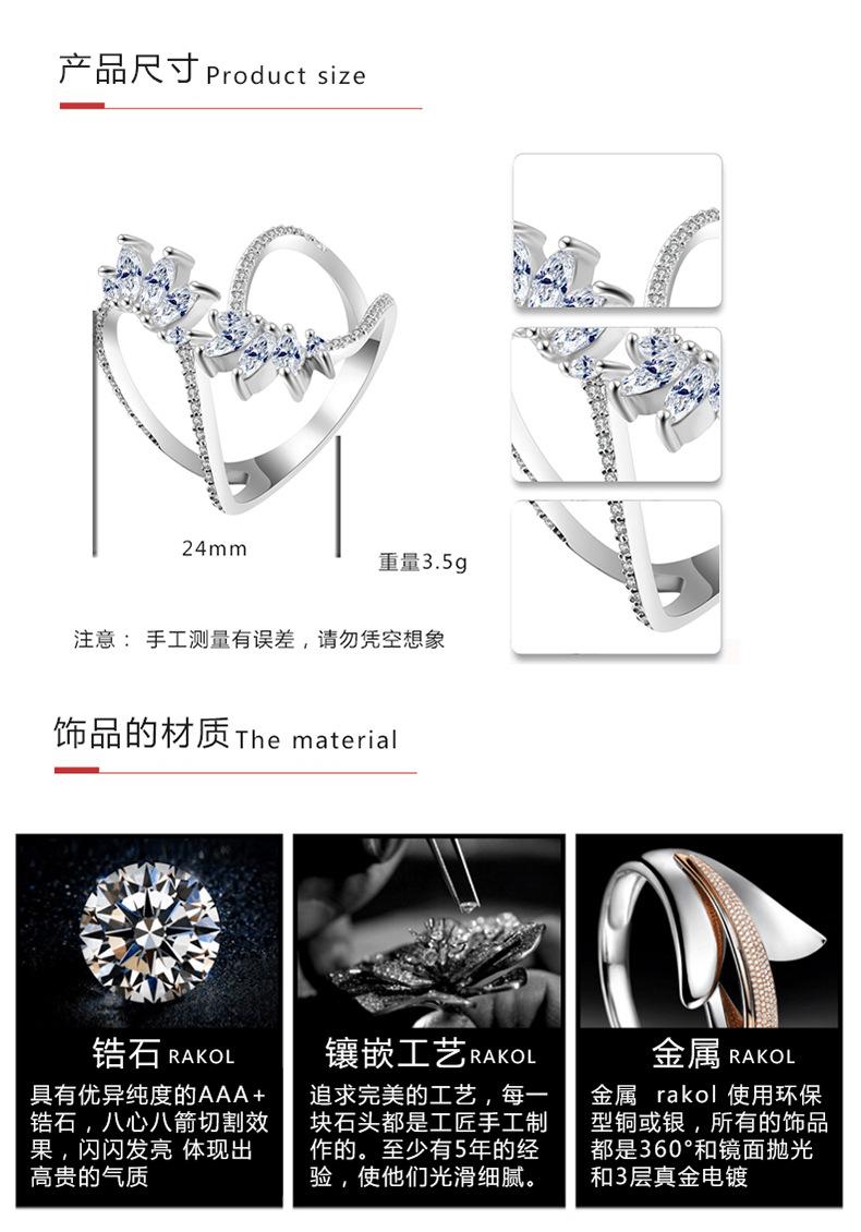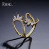 RAKOL Anillo Abierto de Flores con Líneas Geométricas Elegantes Europeas y Americanas para Mujer Exquisito Anillo Sencillo de Circonita Microincrustada