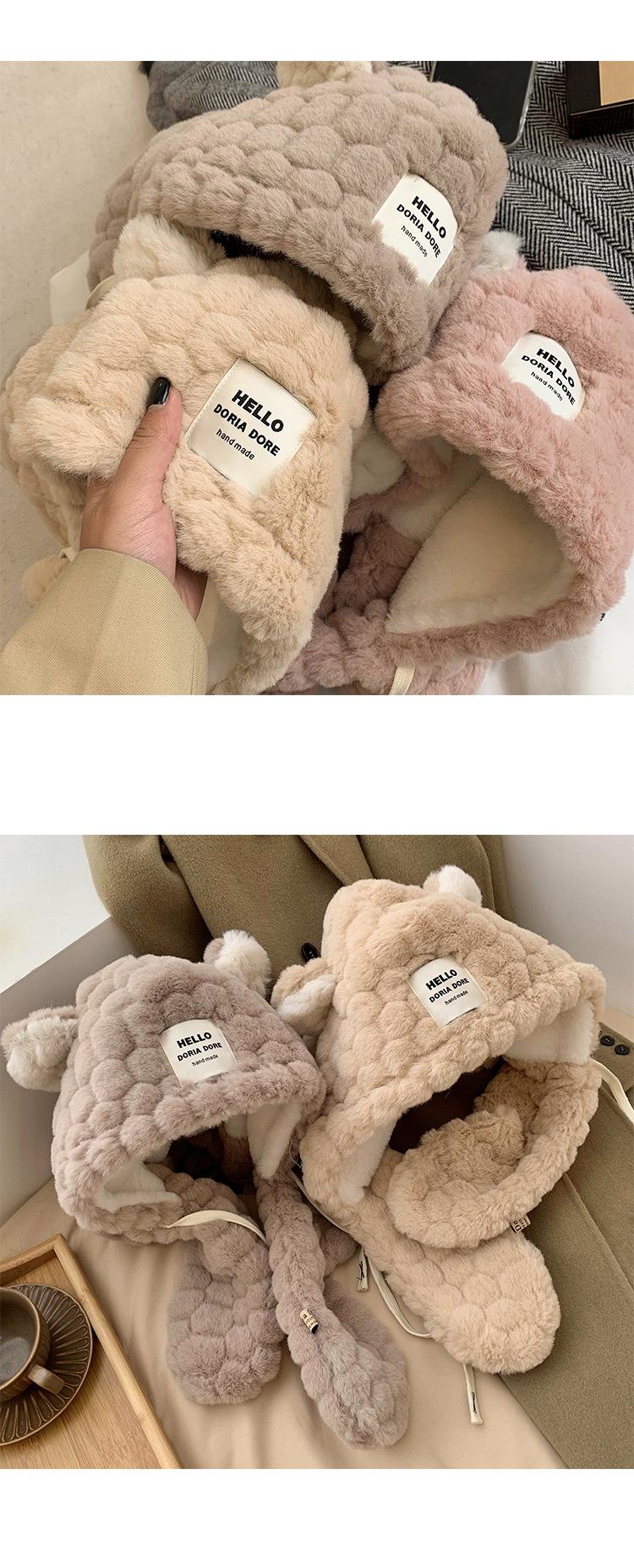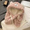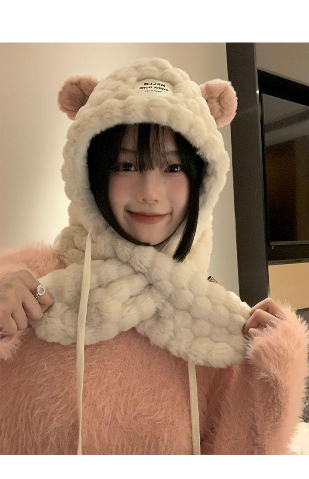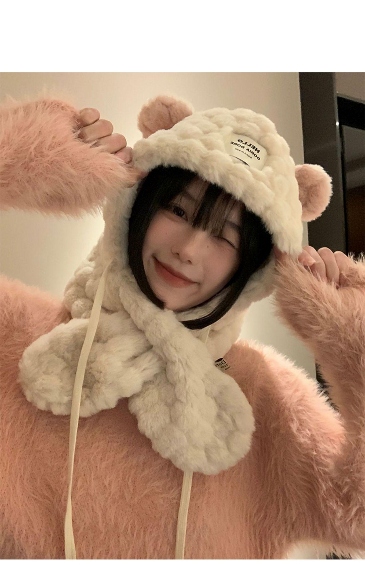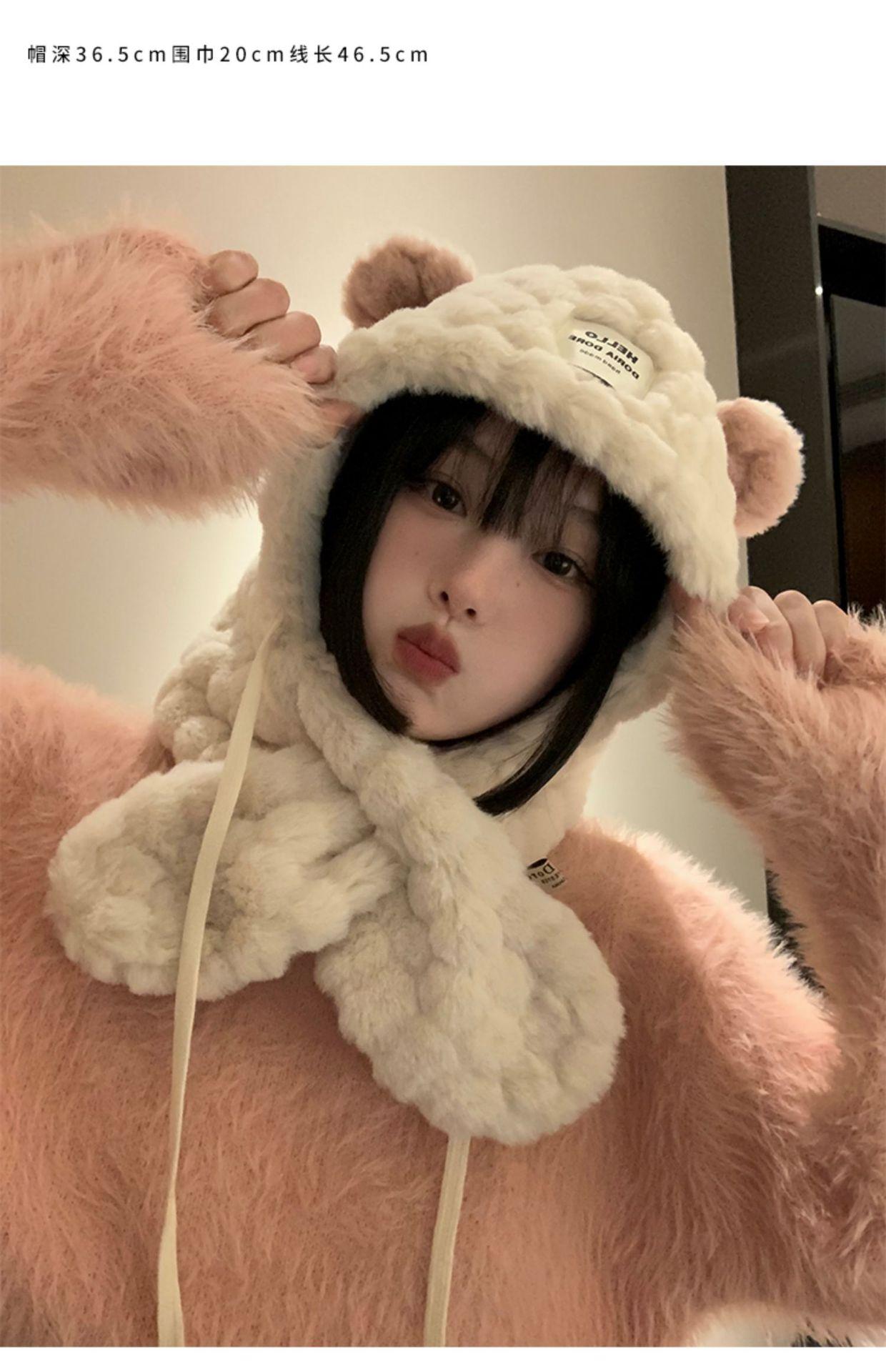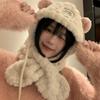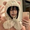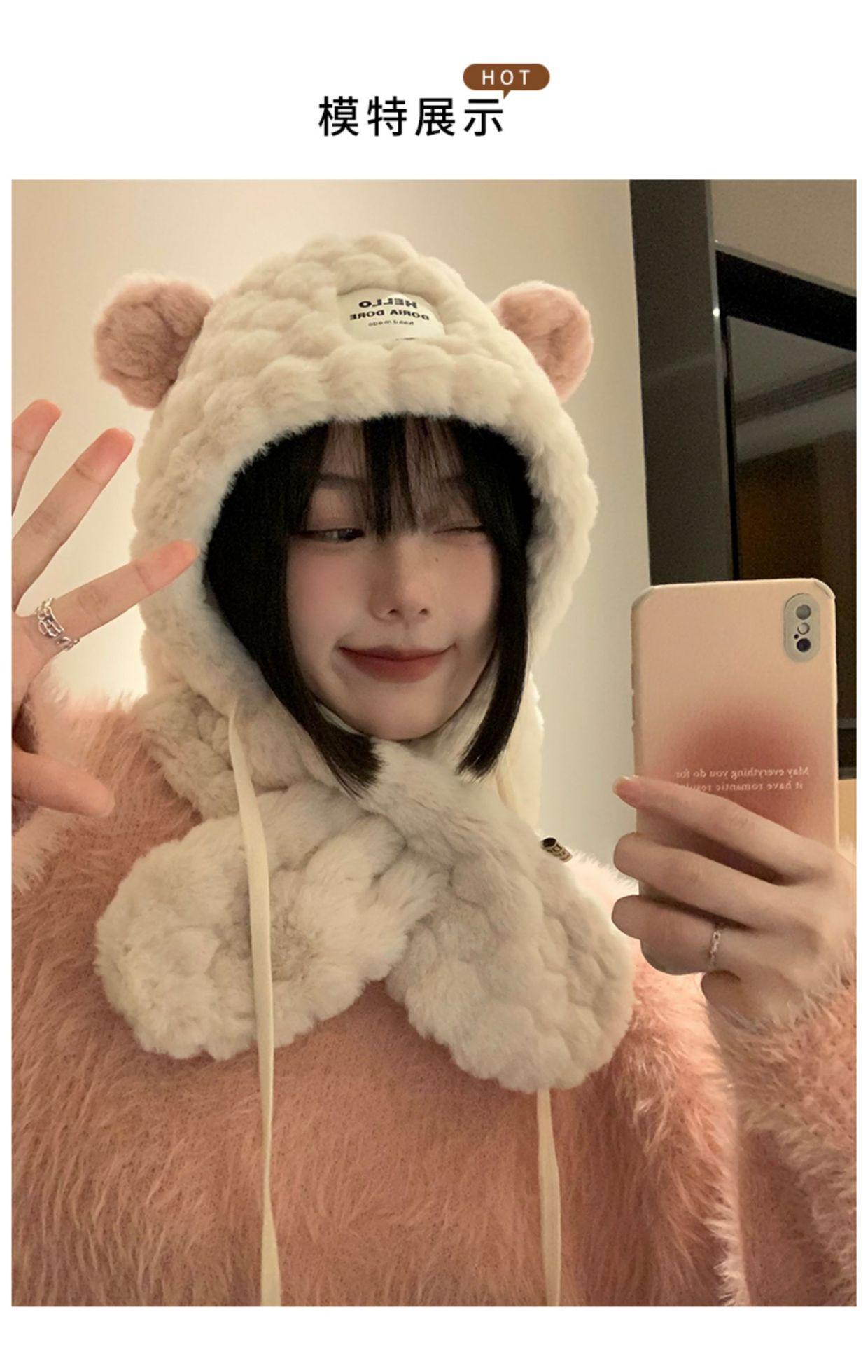 Lindo gorro bufanda con orejas de oso para mujer, invierno, estilo coreano, felpa gruesa cálida, ciclismo a prueba de frío, orejeras