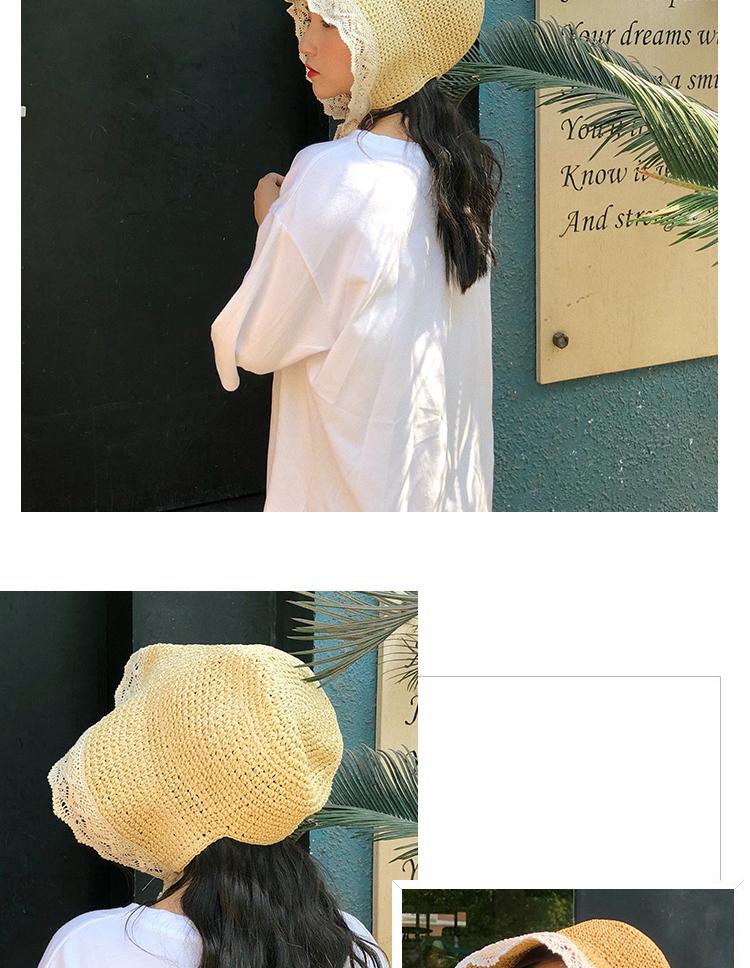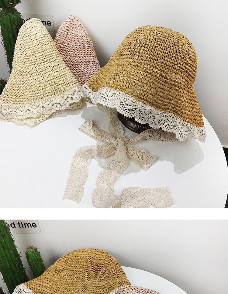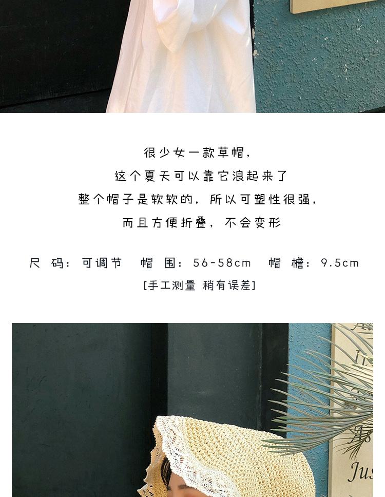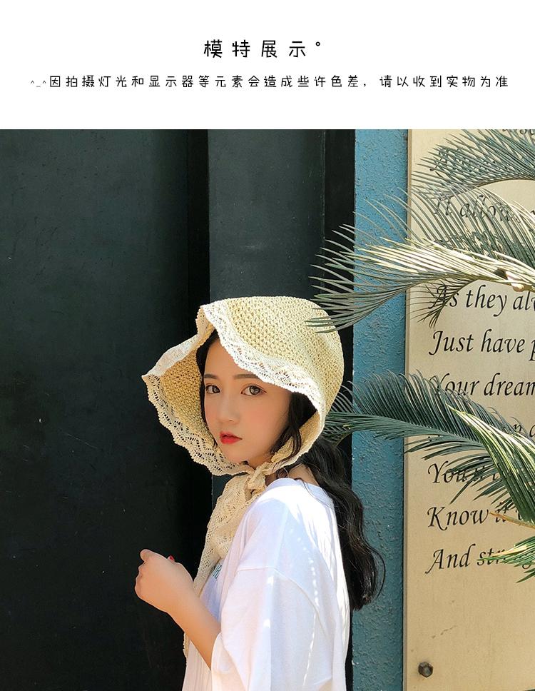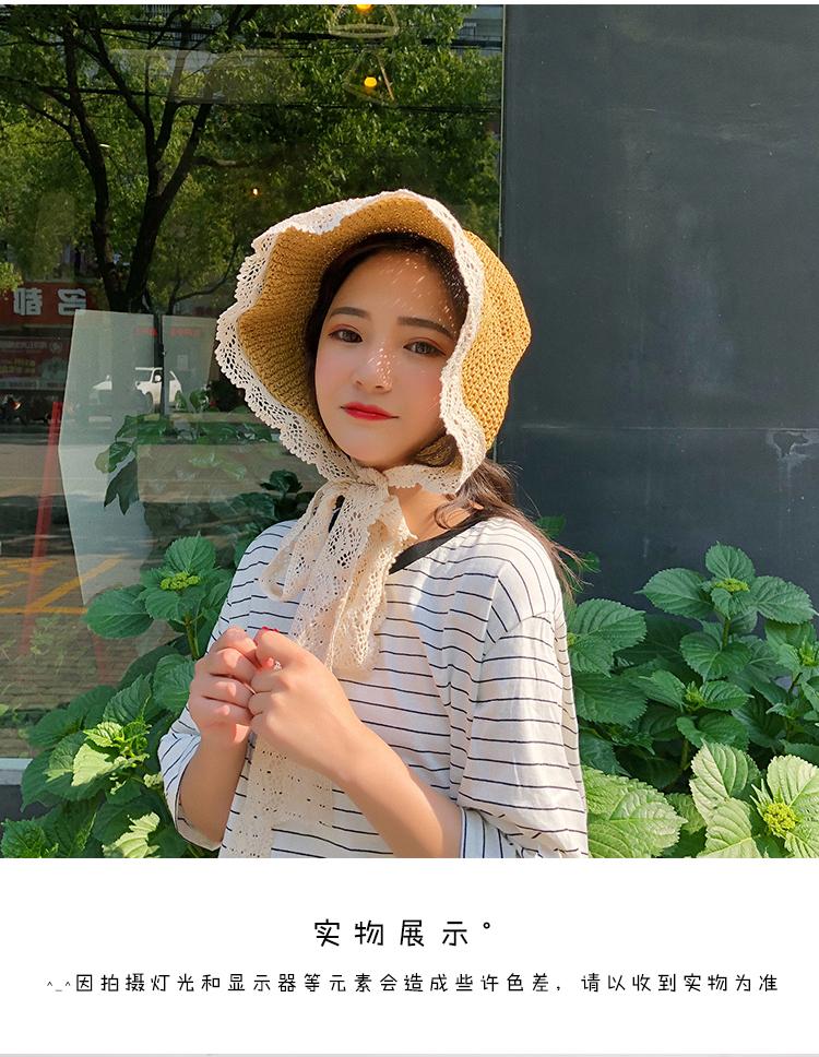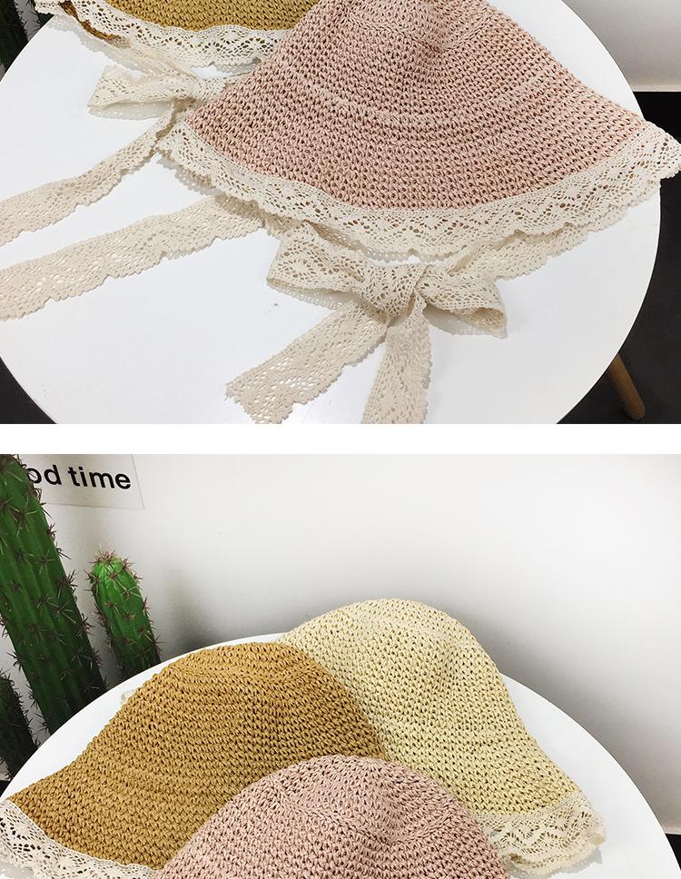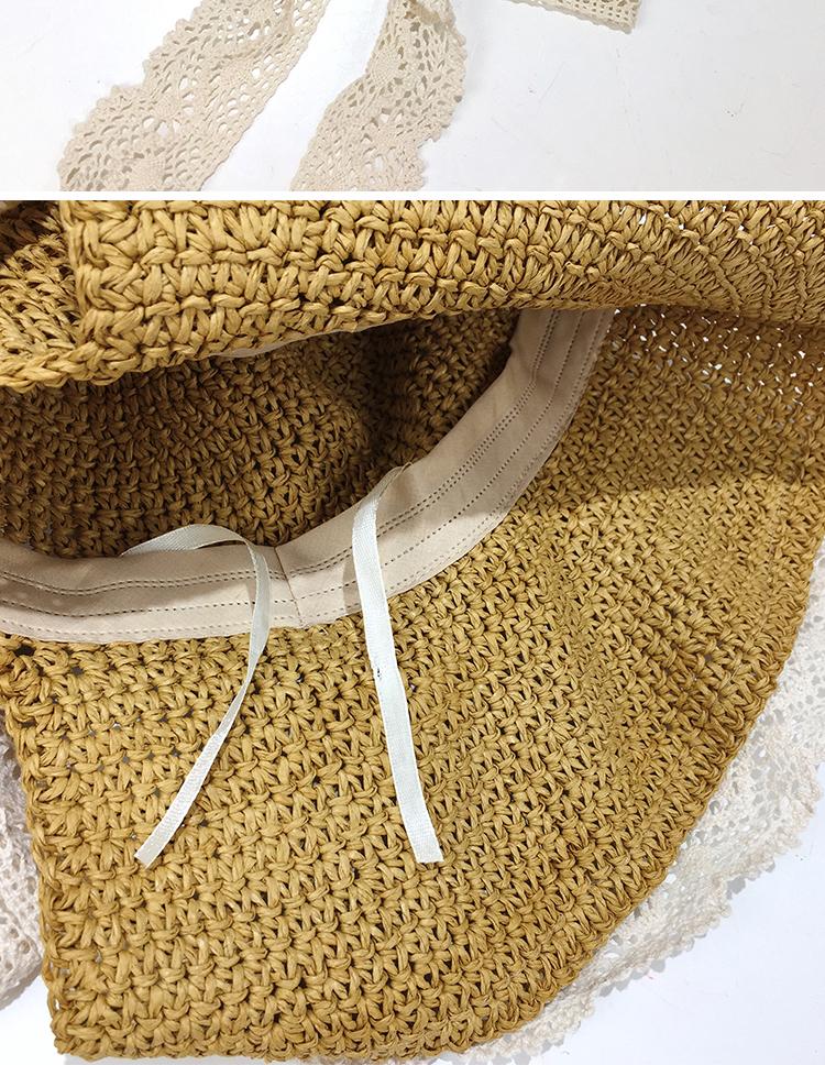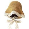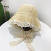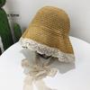 Versión coreana de sombrero de paja con lazo de encaje ins para viaje, ocio, playa, pescador, plegable, temperamento, sombrero para el sol, moderno para mujer