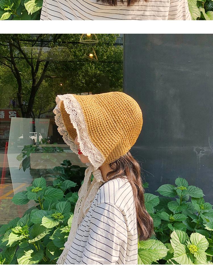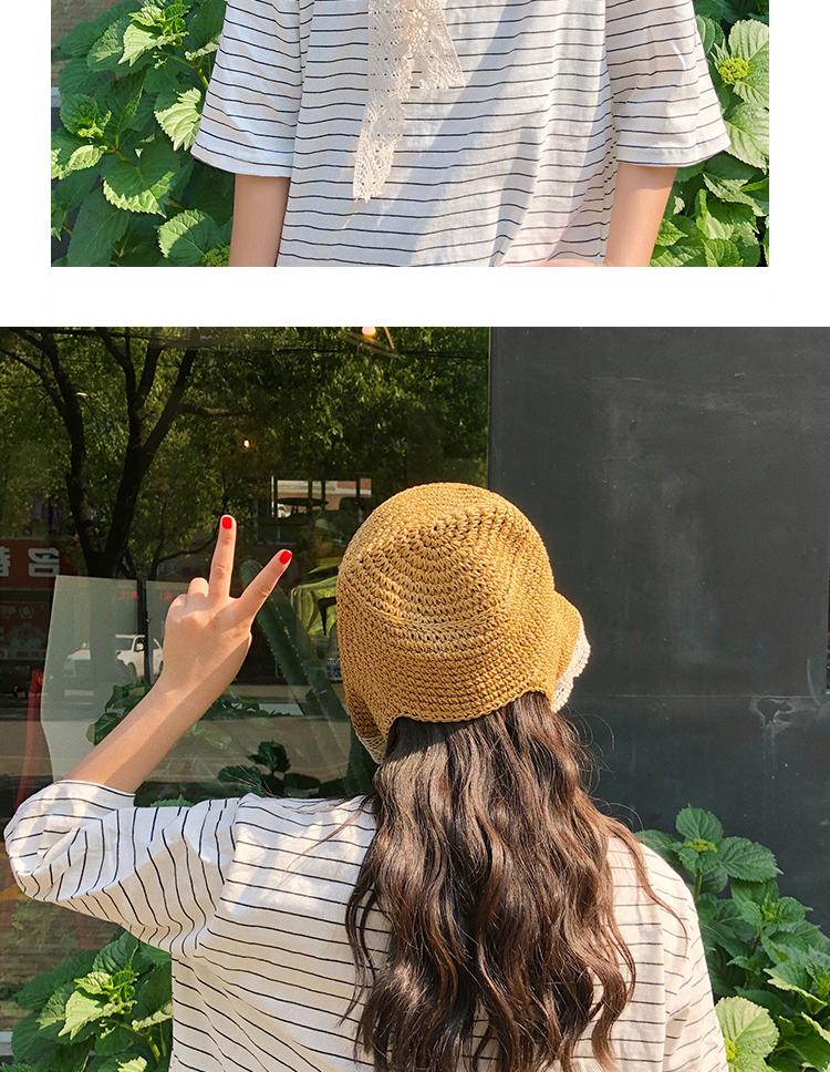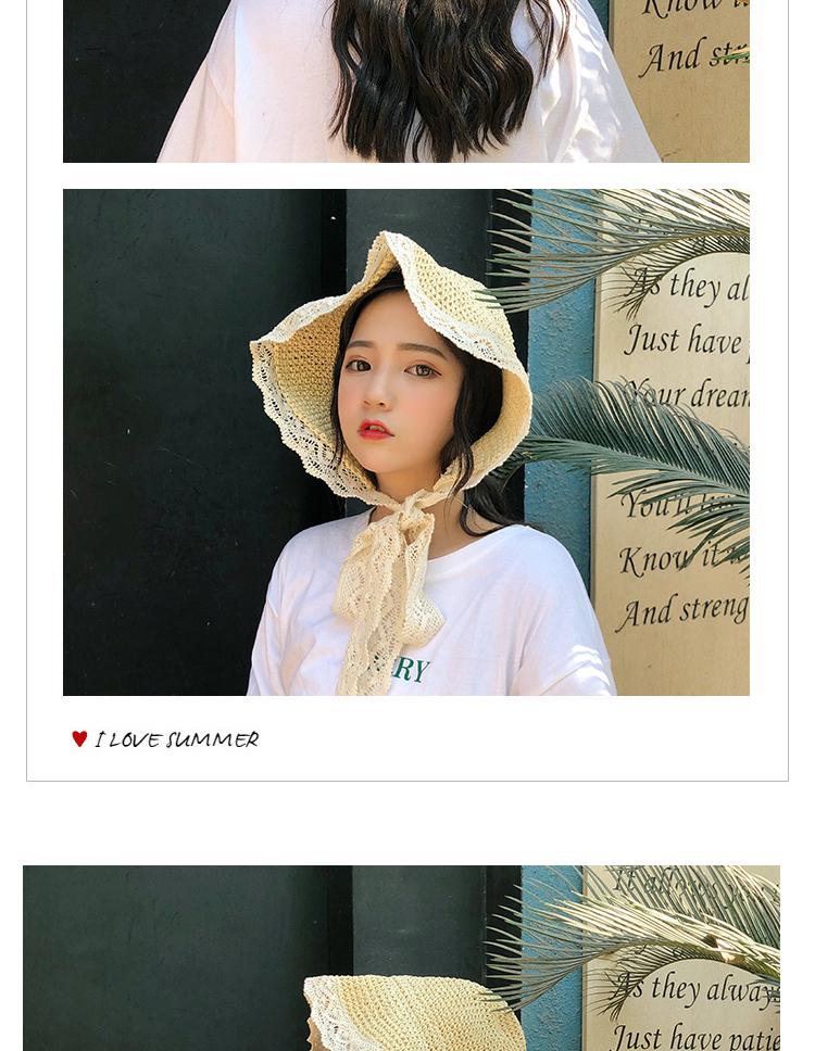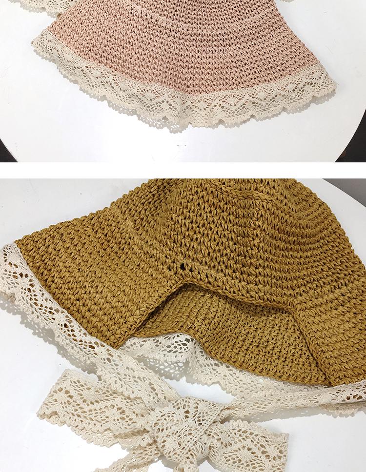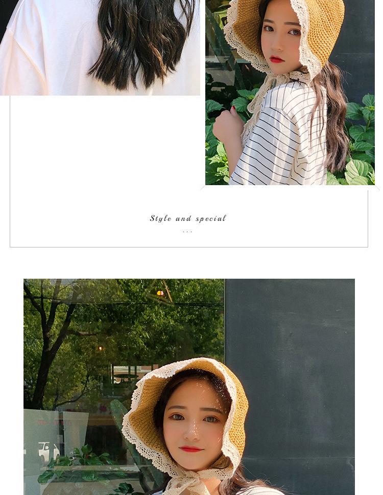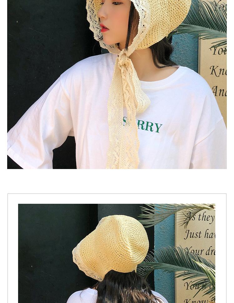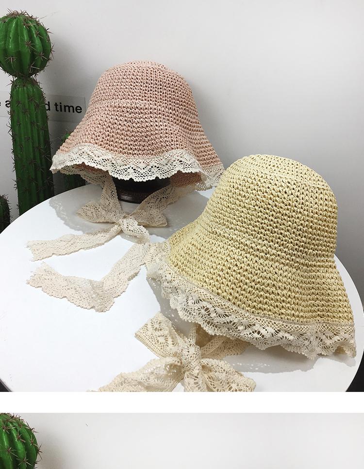 Versión coreana de sombrero de paja con lazo de encaje ins para viaje, ocio, playa, pescador, plegable, temperamento, sombrero para el sol, moderno para mujer