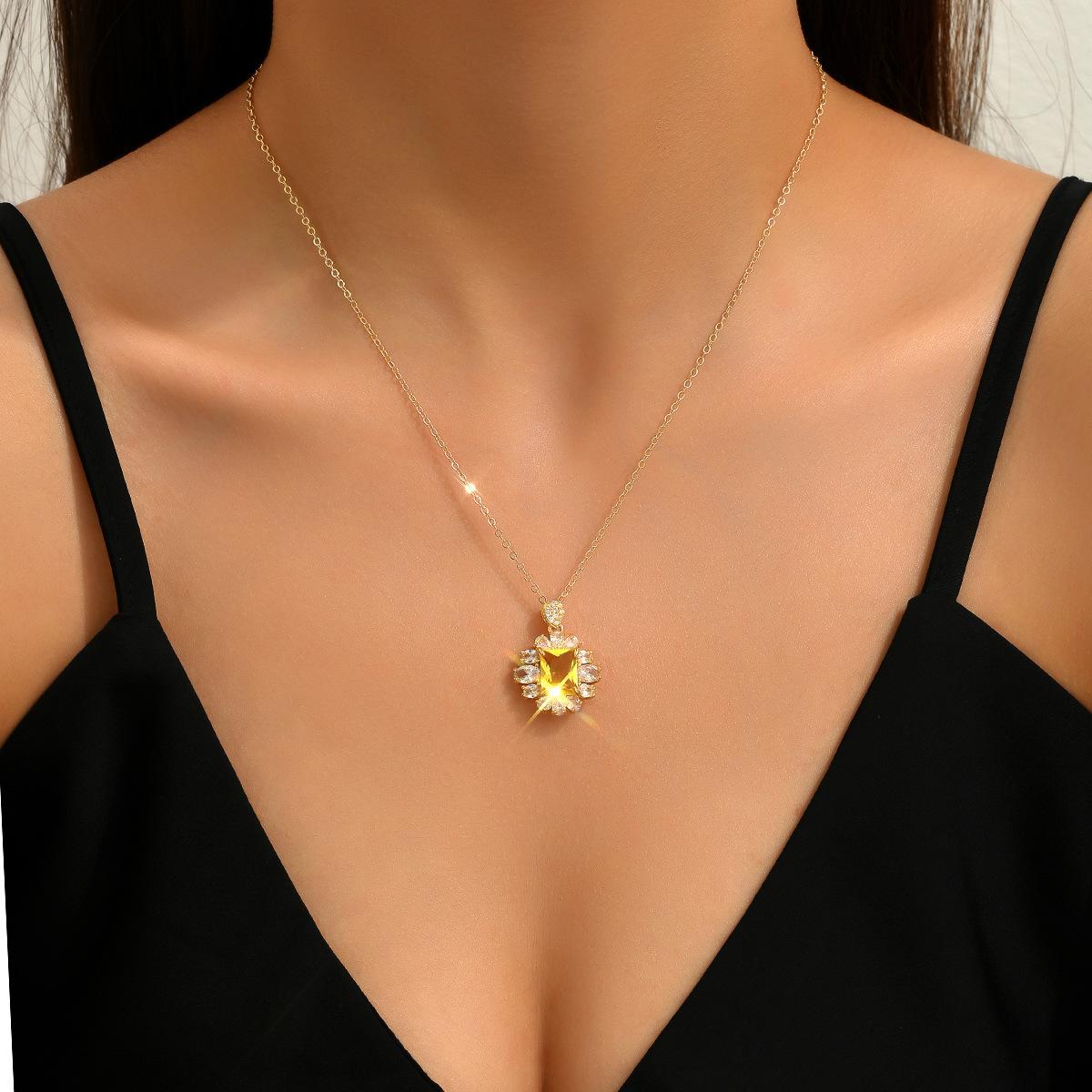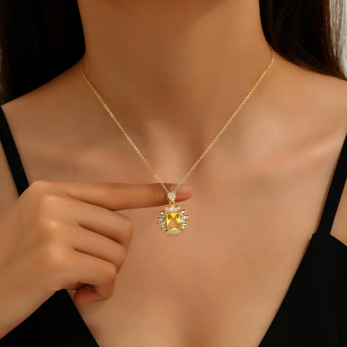 Collar con colgante de cobre y gema amarilla de Amazon, cadena de clavícula con diamantes, para mujer, Shein, disponible al por mayor.