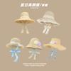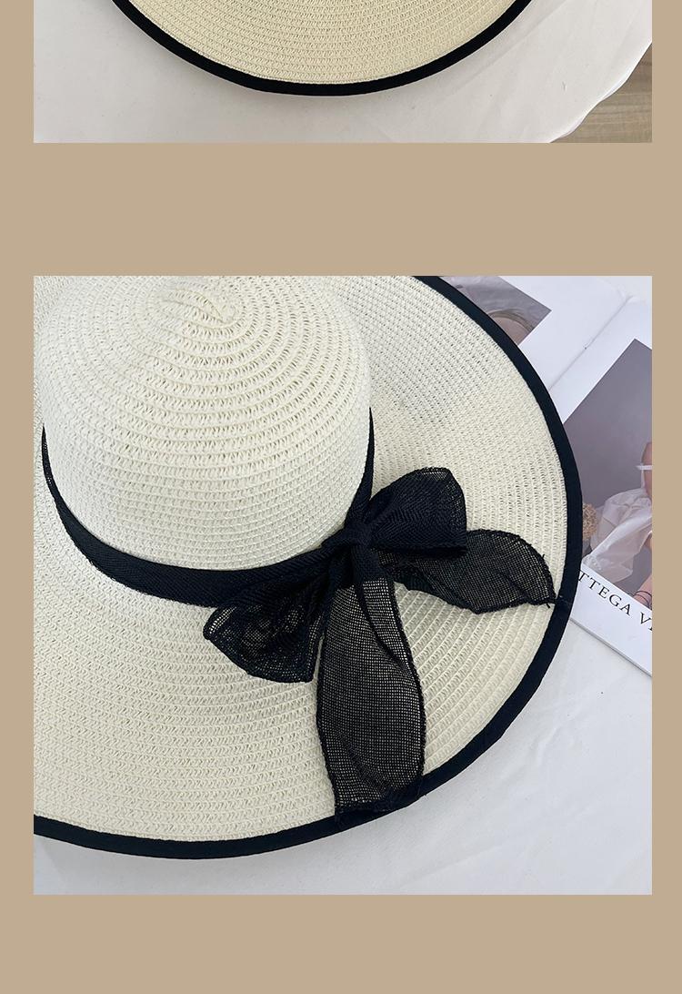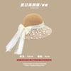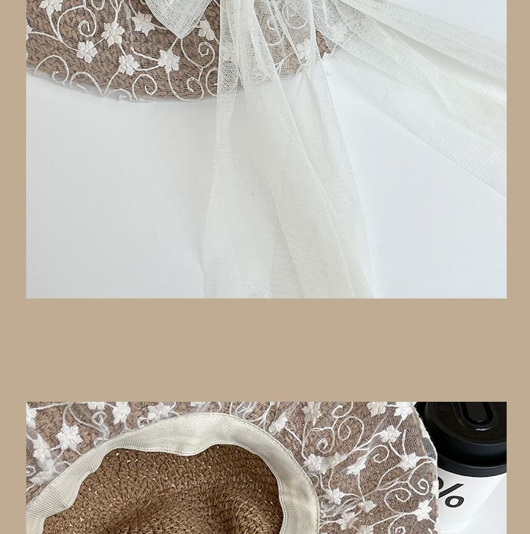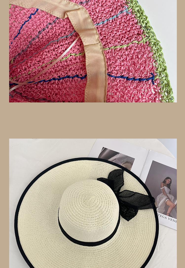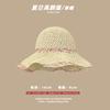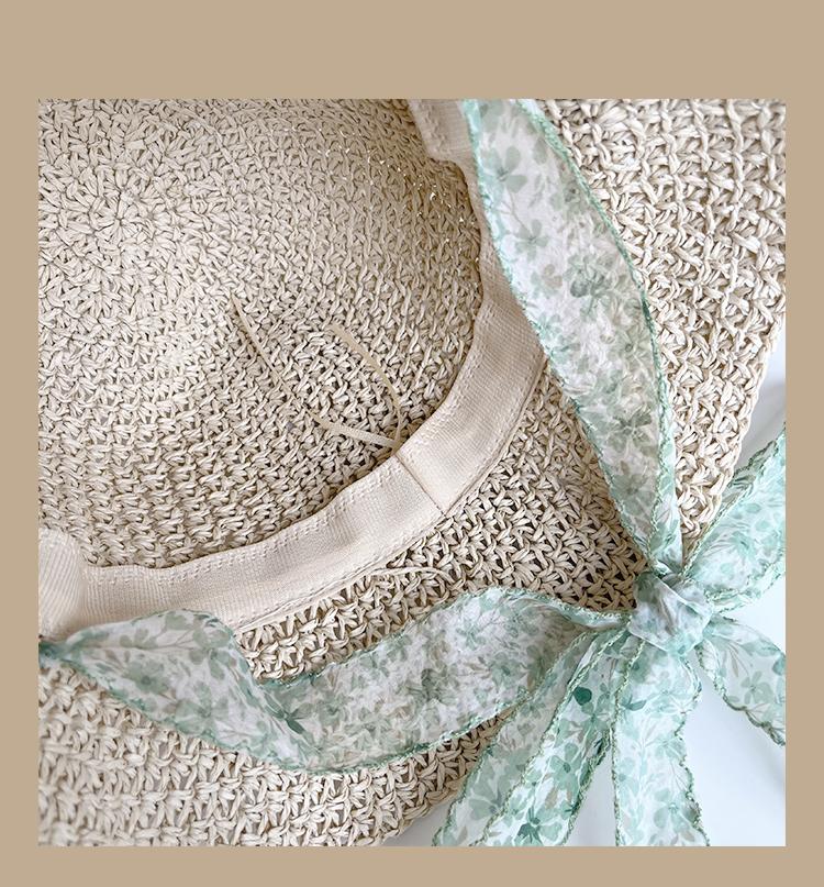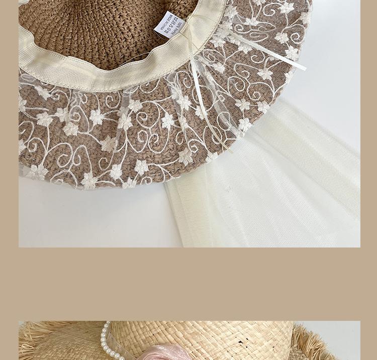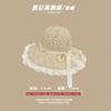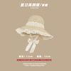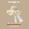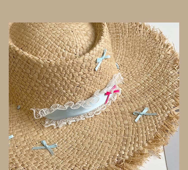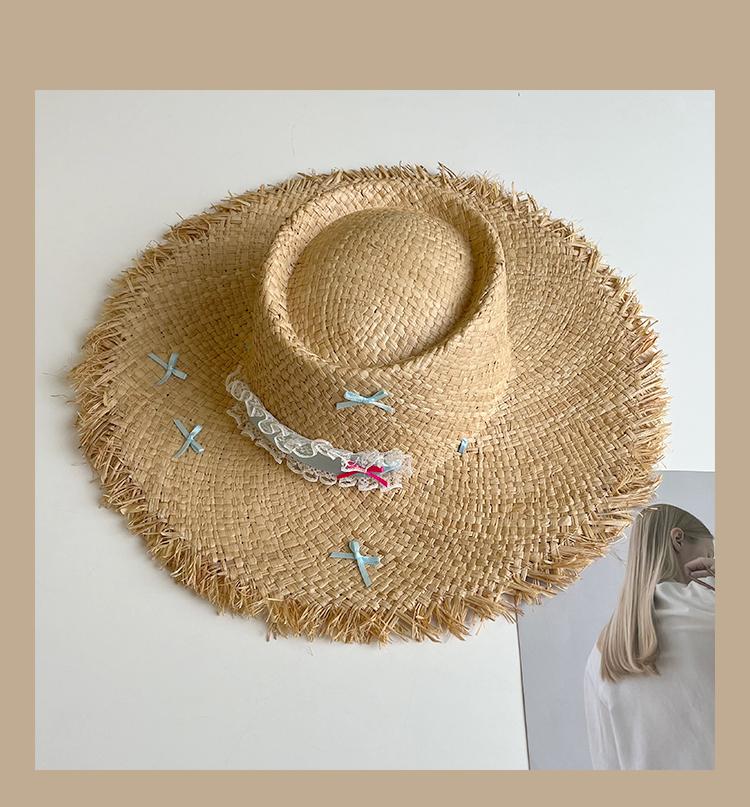 Lace Long Ribbon Straw Hat, New pearl lace beige, Zhao Zhaoyi same style straw hat with black edge rice, rainb...