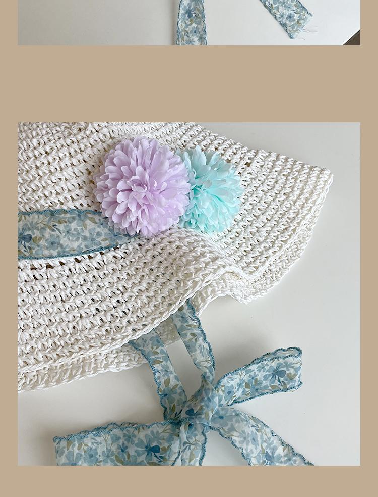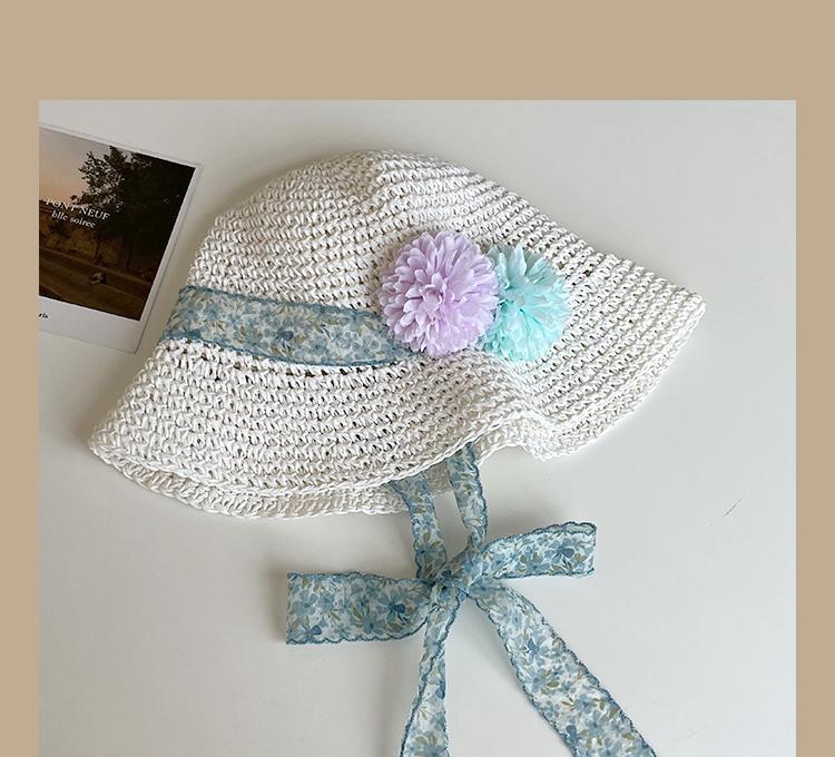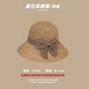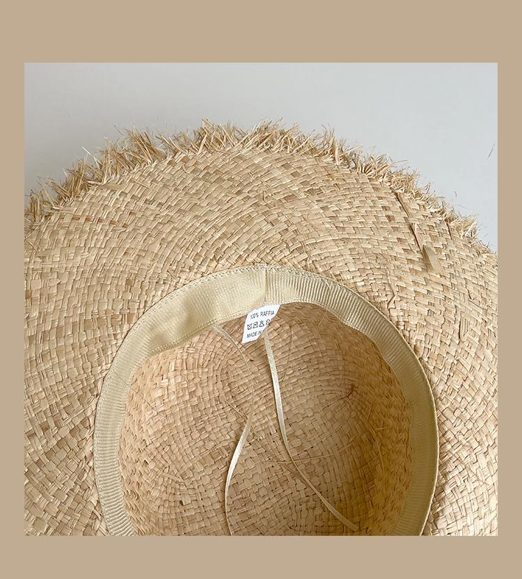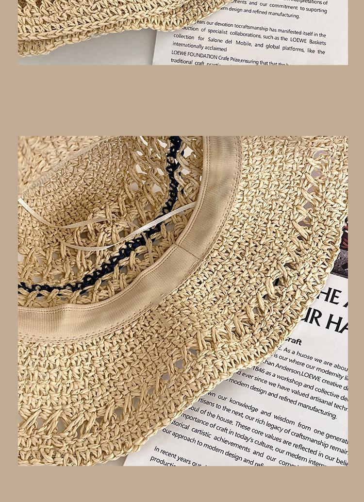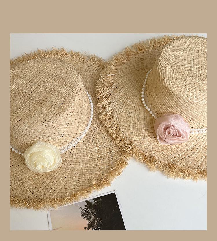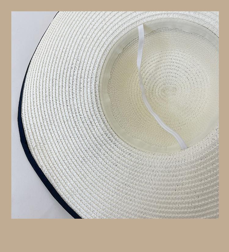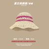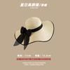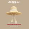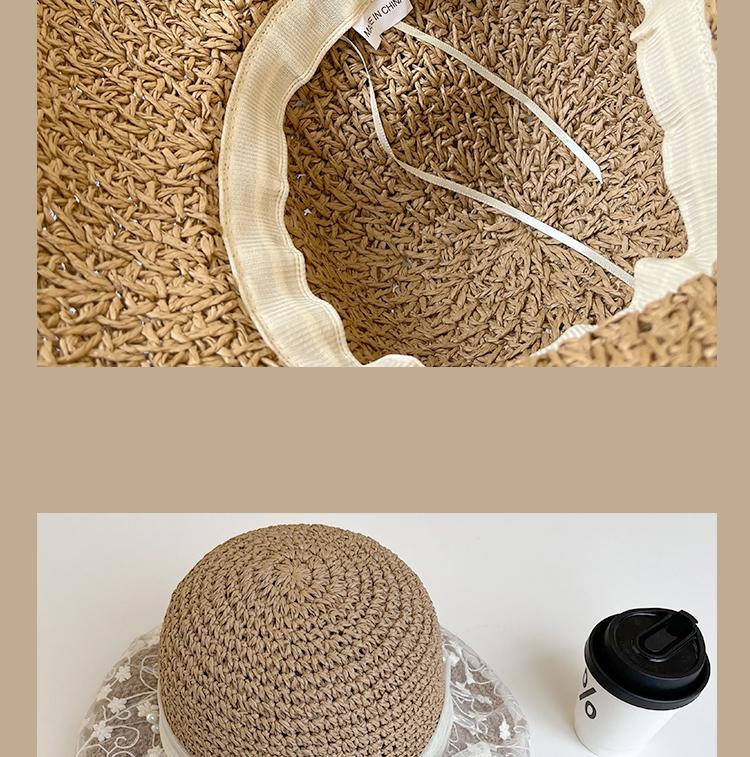 Lace Long Ribbon Straw Hat, New pearl lace beige, Zhao Zhaoyi same style straw hat with black edge rice, rainb...