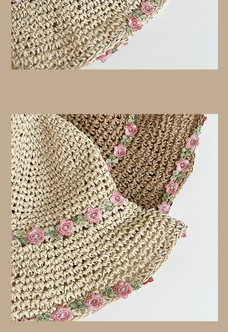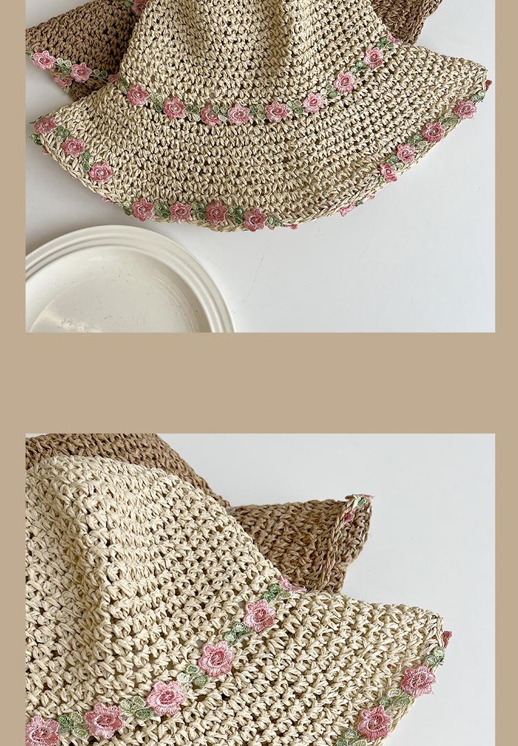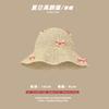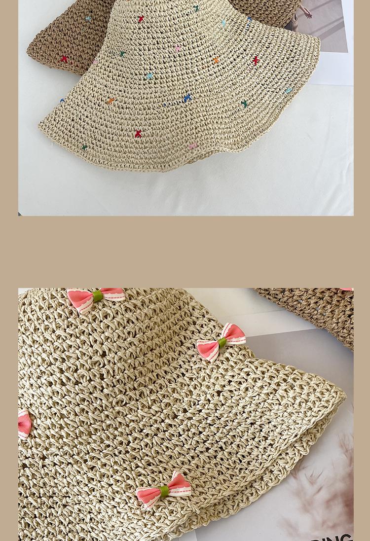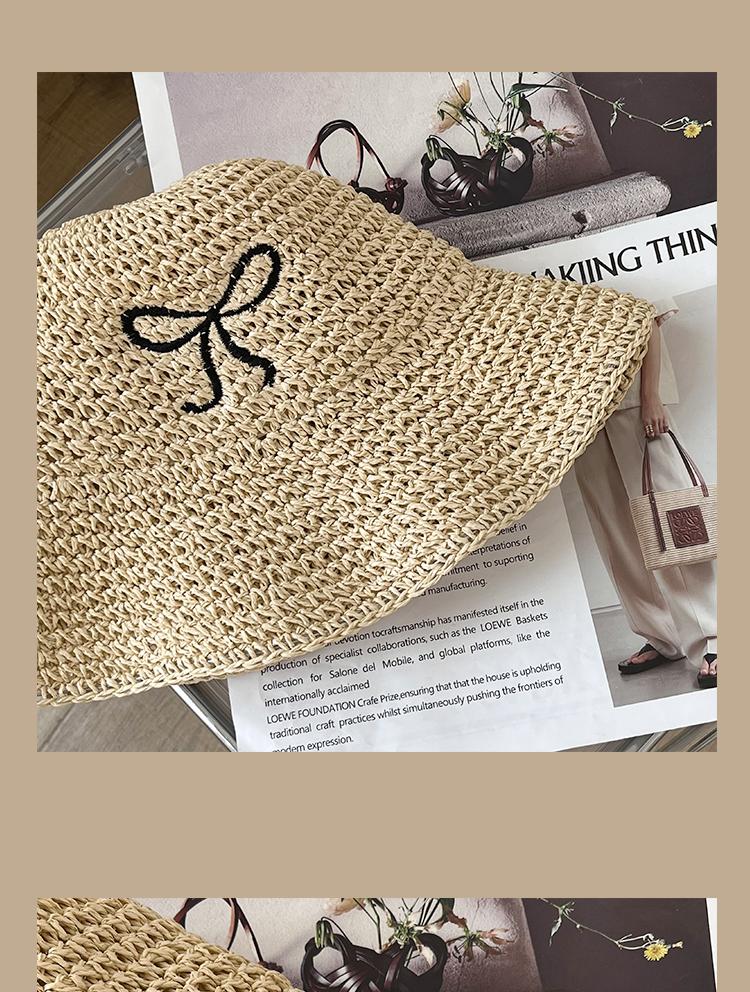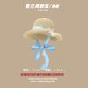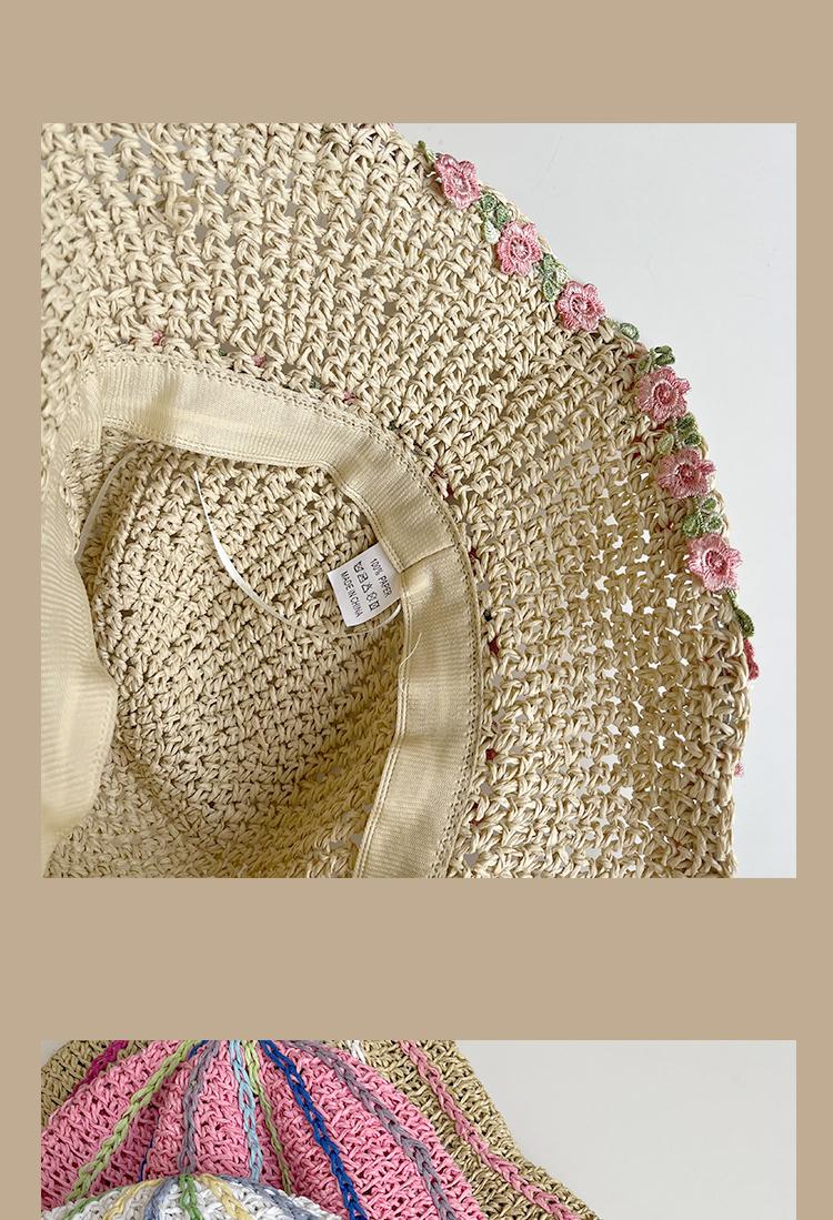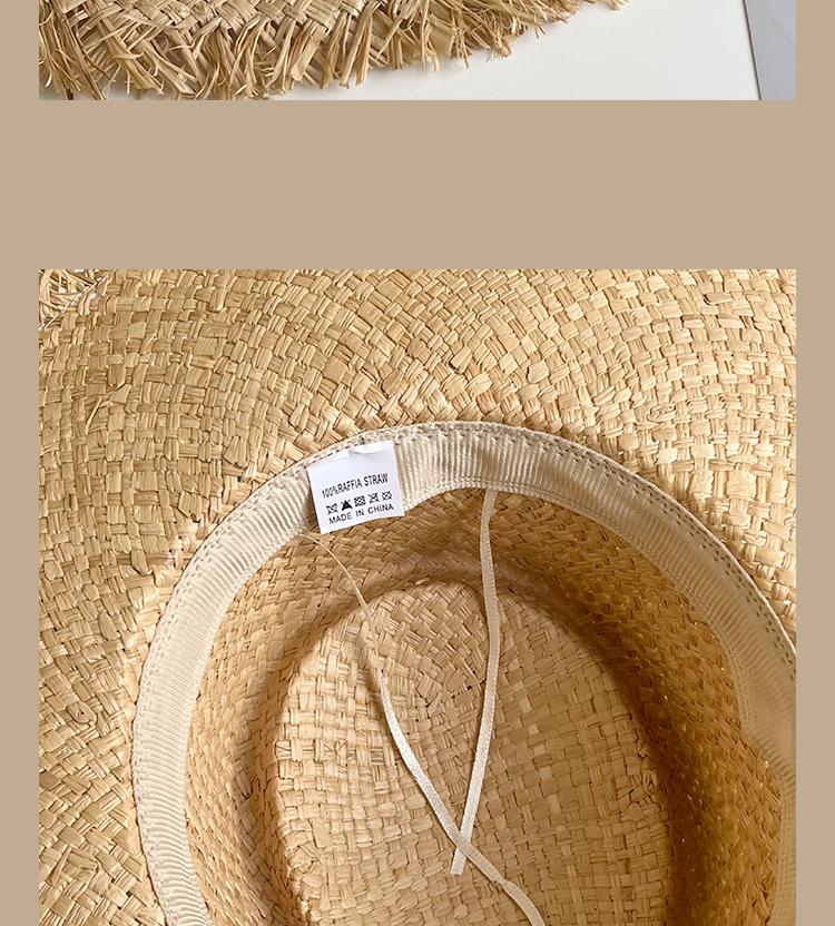 Lace Long Ribbon Straw Hat, New pearl lace beige, Zhao Zhaoyi same style straw hat with black edge rice, rainb...