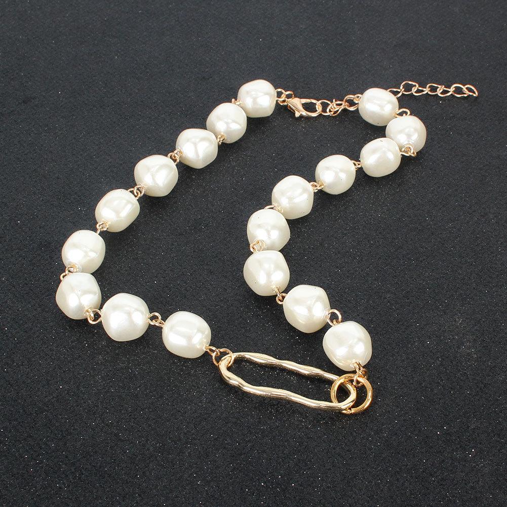 Collar exagerado de joyería europea y americana, estilo transfronterizo, simple imitación de perla, cadena de clavícula corta, fuente de fábrica, gargantilla