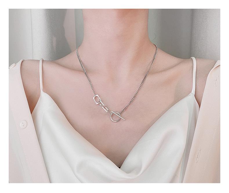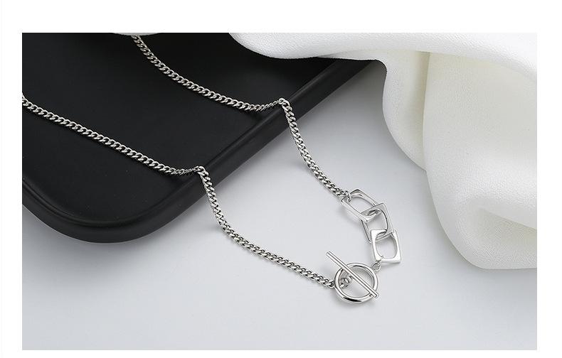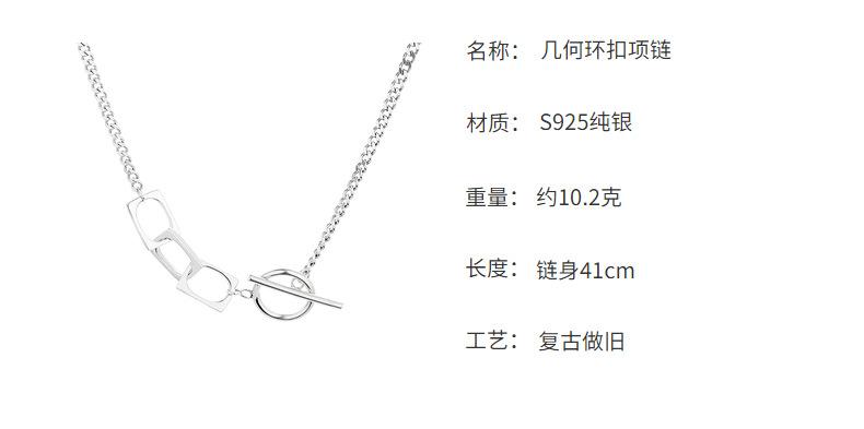 Collar Chao Sheng s925 con hebilla geométrica cuadrada y diseño de estilo Hong Kong, accesorios con un toque moderno.