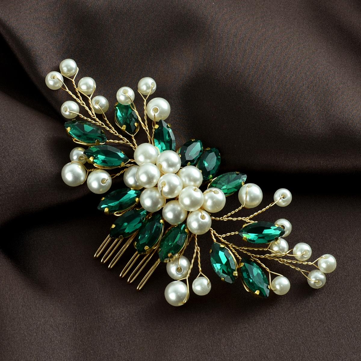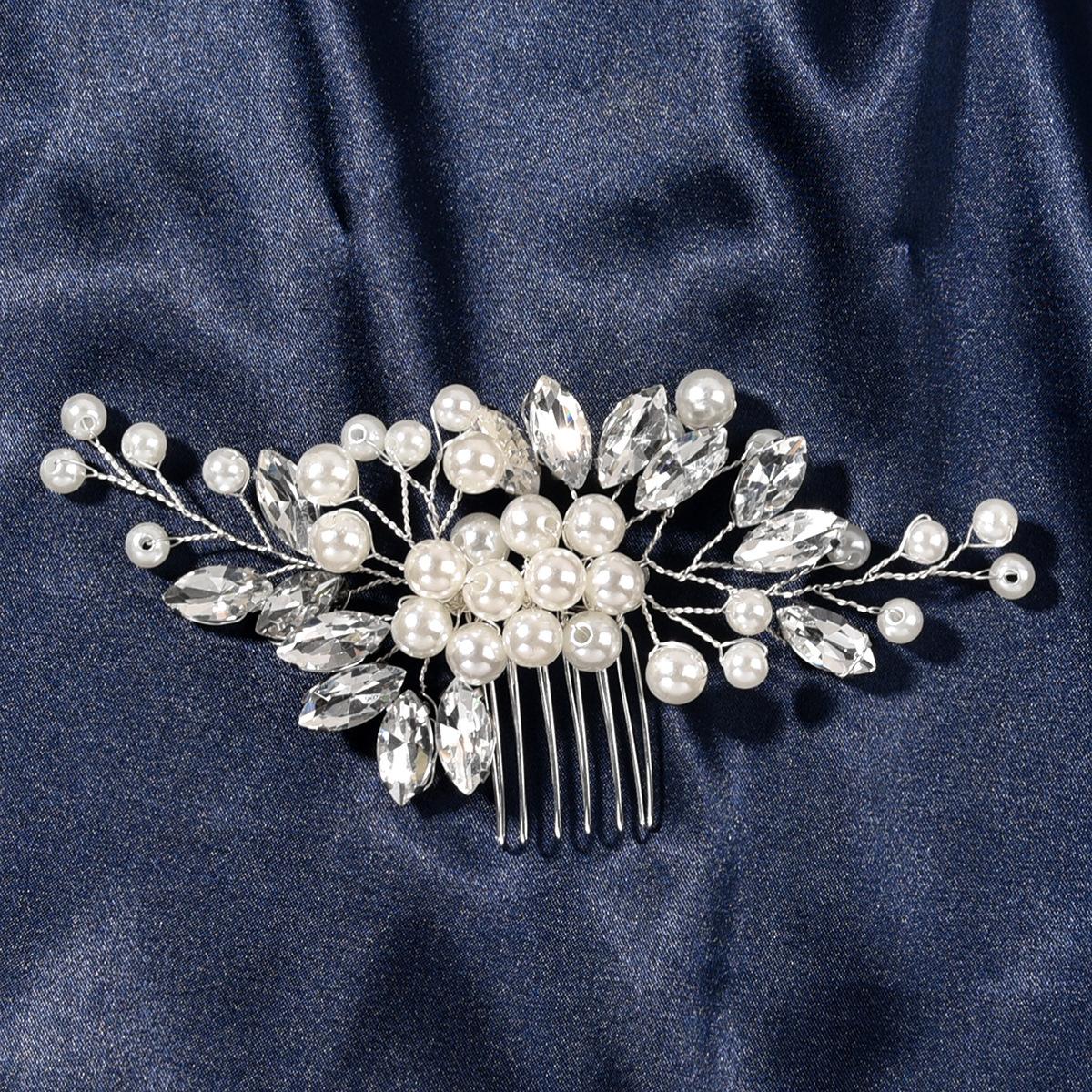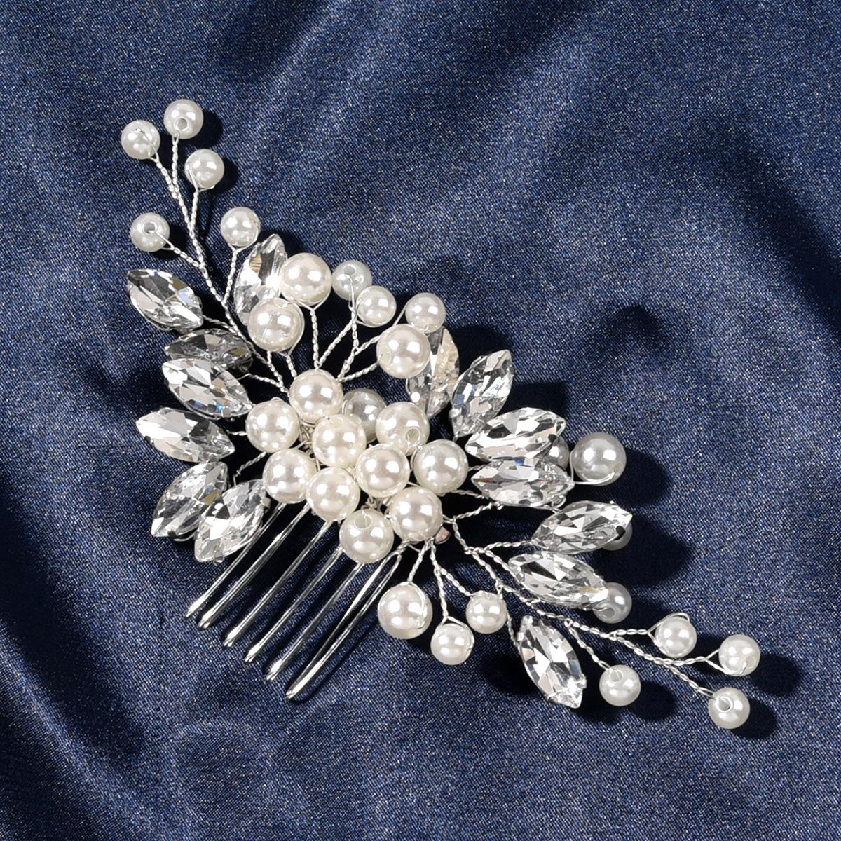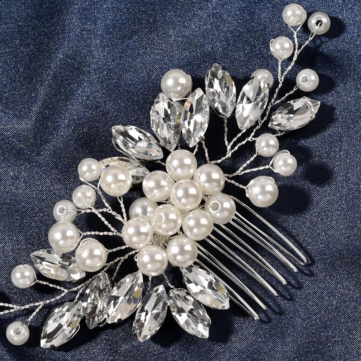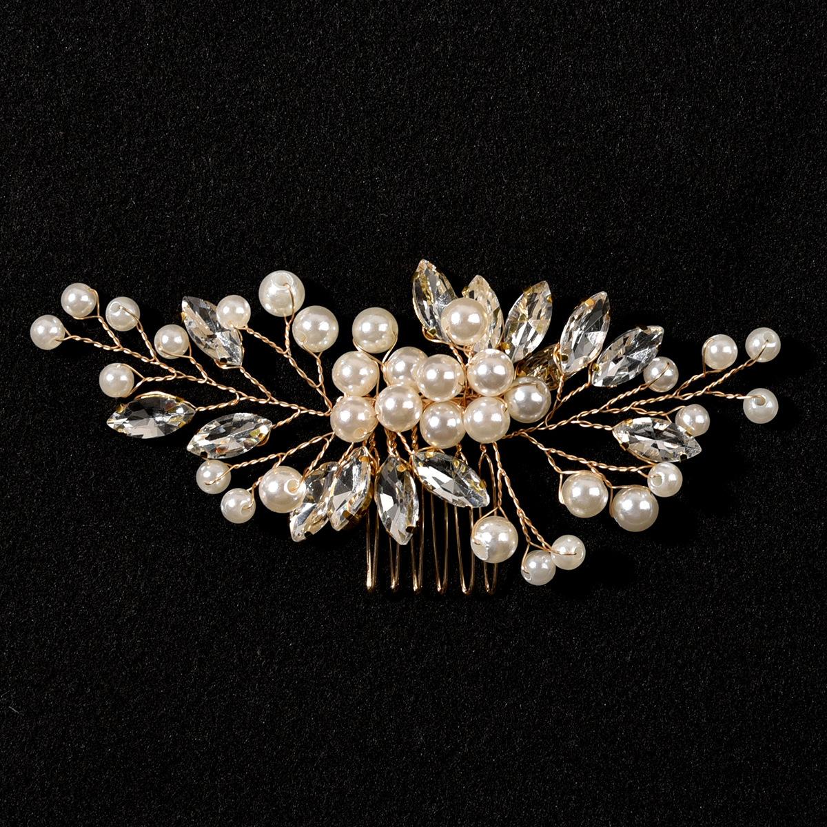 Accesorios para el cabello de novia hechos a mano para bodas, peineta de cristal con forma de ojo de caballo y perlas de imitación, accesorios para el cabello, transfronterizos europeos y americanos