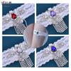 Liga nupcial LOWOSAIWOR, anillo para la pierna, banda para la pierna, liga de encaje con diamantes de imitación