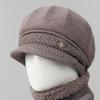 Conjunto de gorro de punto para mujer, bufanda de terciopelo y gorro de invierno, conjunto de dos piezas de gorro y bufanda de lana de punto con diamantes para hombre |