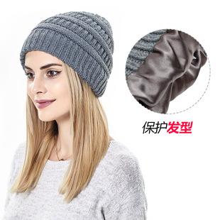 Otoño e invierno INS nuevos sombreros europeos y americanos para damas transfronterizas que protegen el cabello estilo cálido gorro de satén de punto de lana en 9 colores |