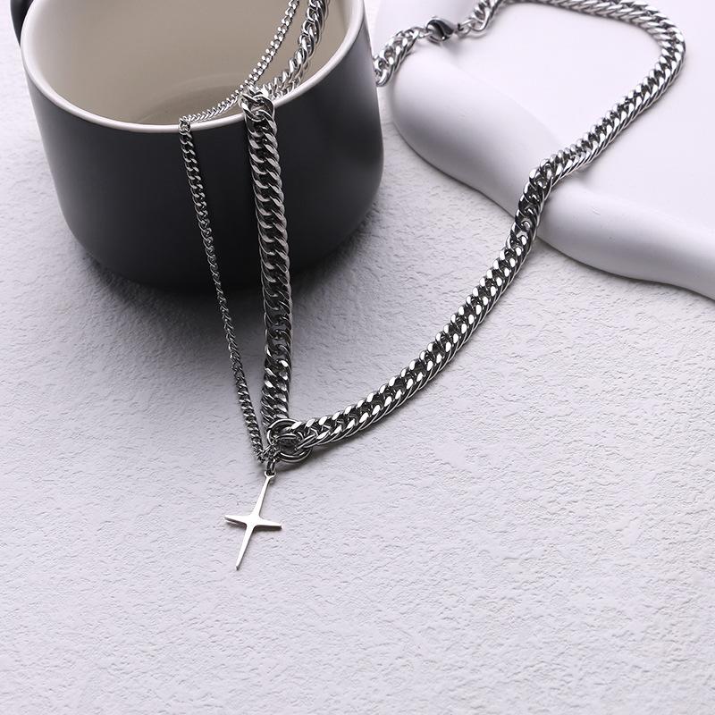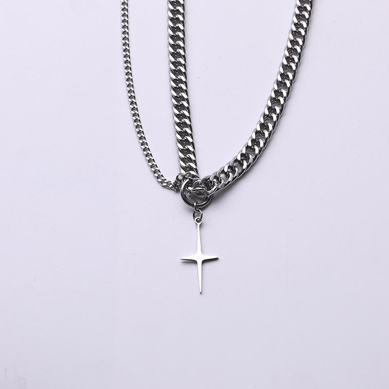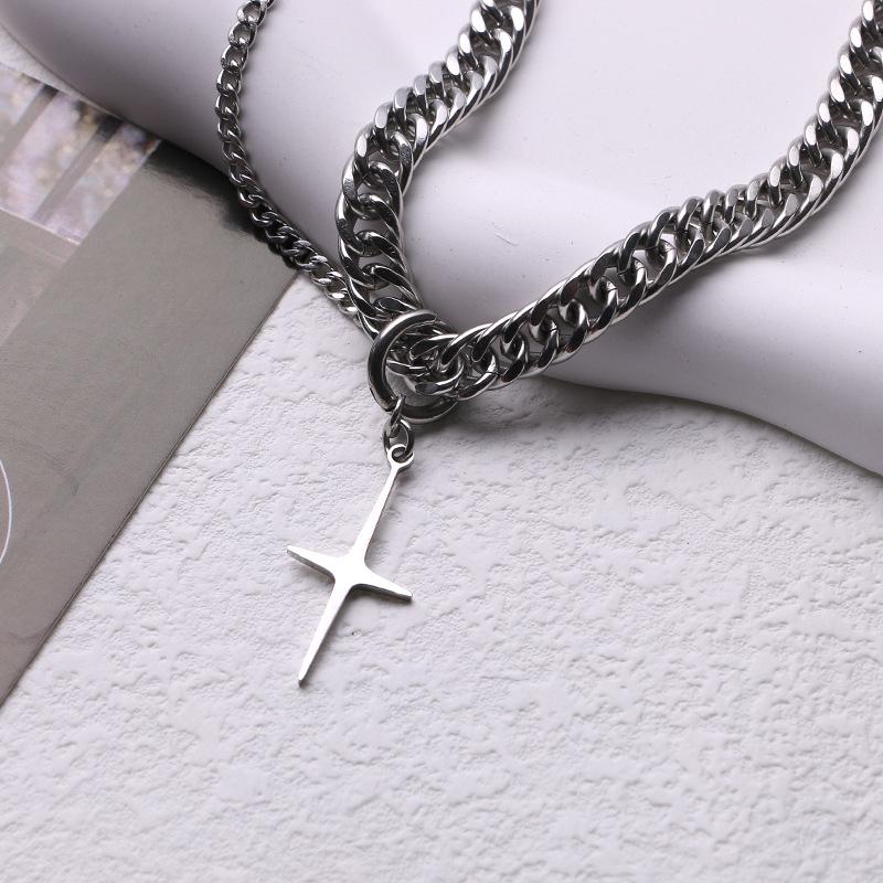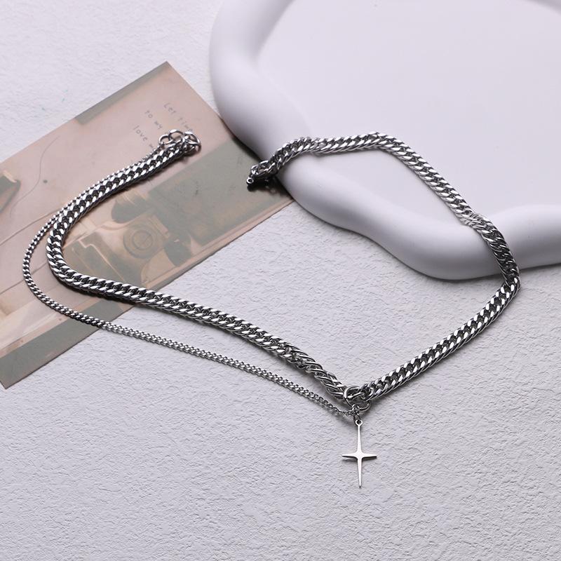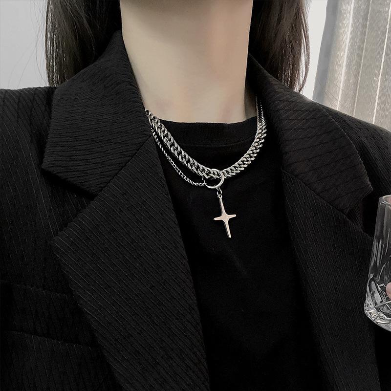 Collar de cadena cubana con estrella cruzada de acero de titanio europeo y americano para hombres y mujeres, estilo hip hop, joyería de cadena de clavícula de viento frío