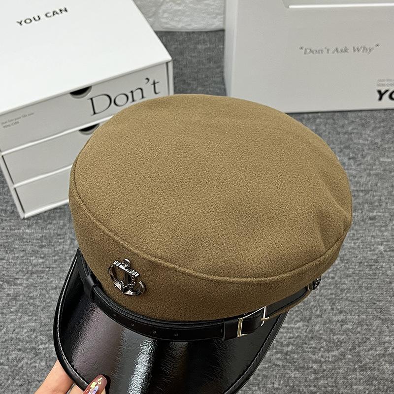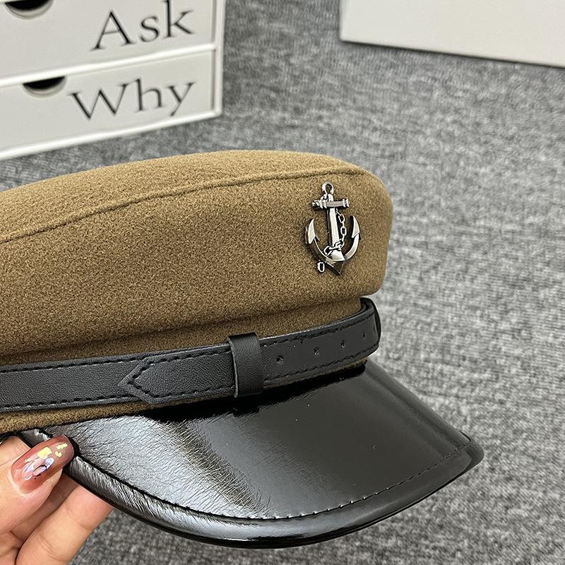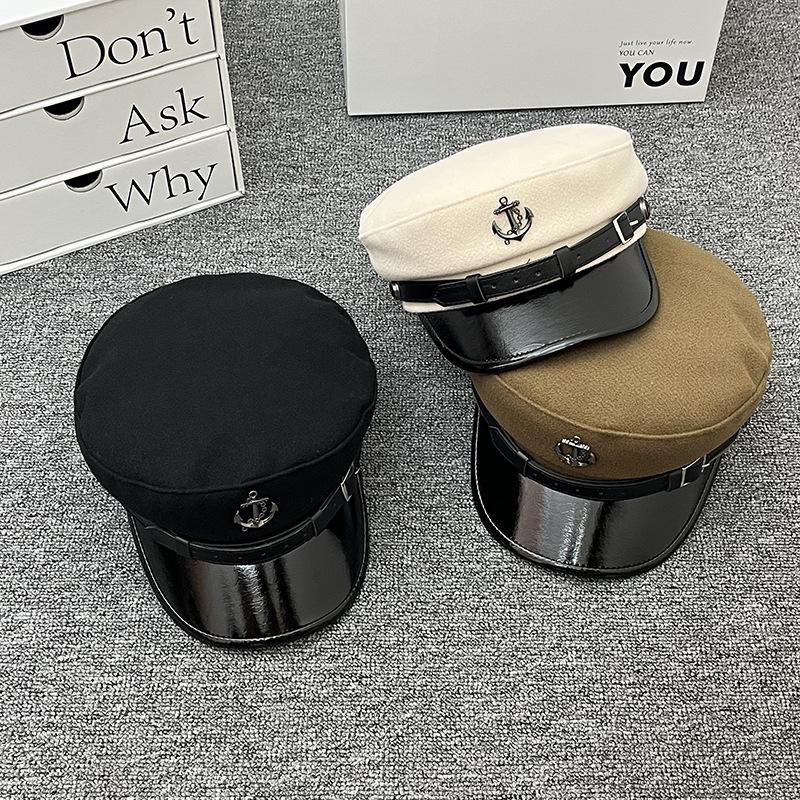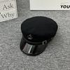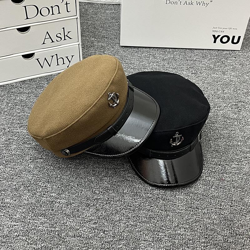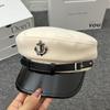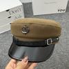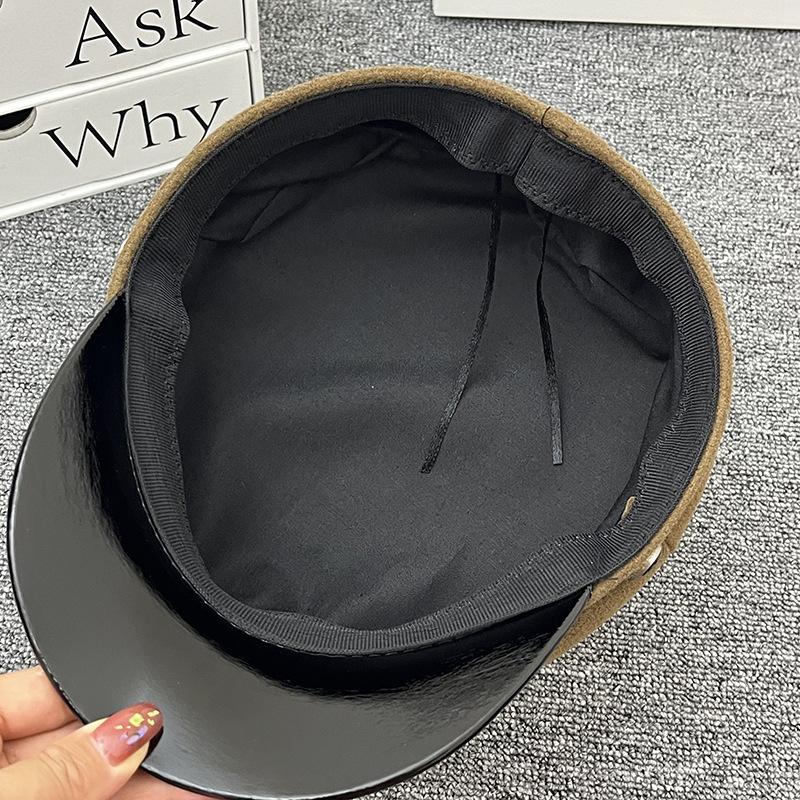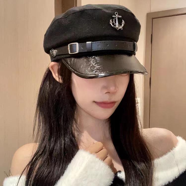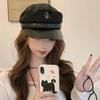 Otoño e Invierno lana estilo Navy sombrero octogonal femenino coreano retro ins boina de marinero nicho PU cuero sombrero militar moda