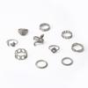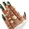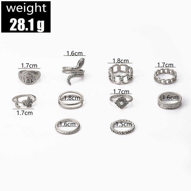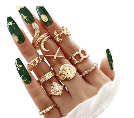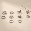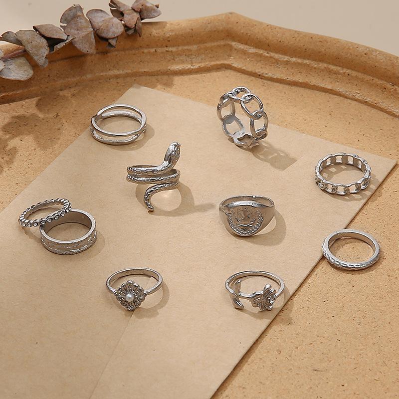 Conjunto de 10 anillos de serpiente con diseño de mariposa y luna de diamante retro con elementos metálicos de cadena transfronteriza europea y americana