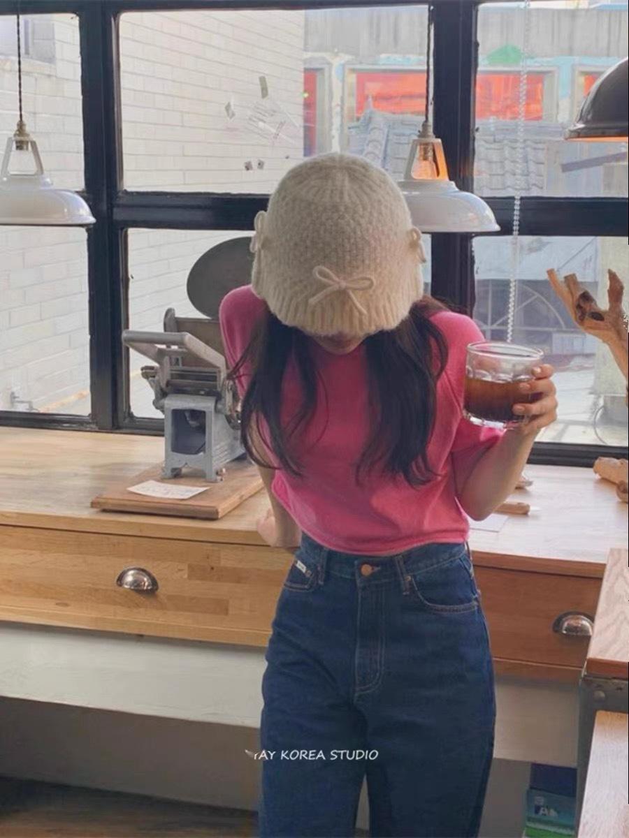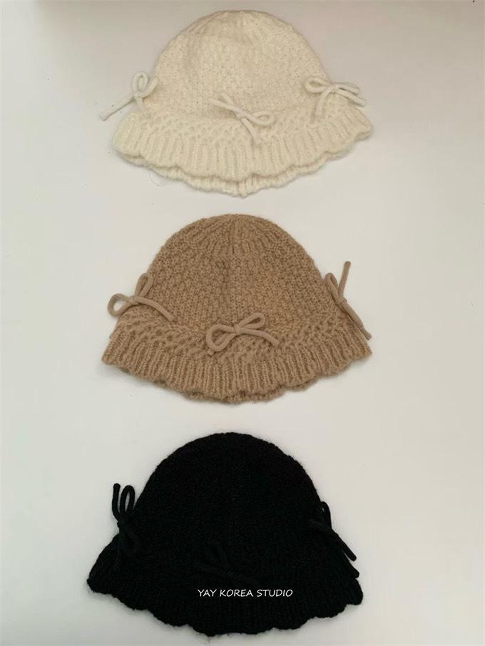 23 Corea del Sur nuevo agente de compras mismo otoño e invierno lazo tejido sombrero de pescador lana sombrero de cuenca femenino ins versátil nicho