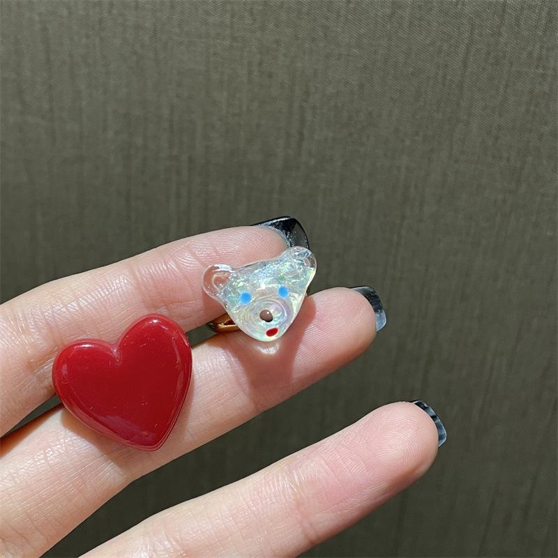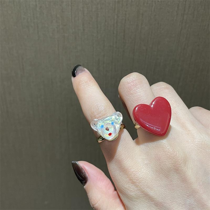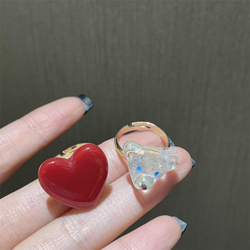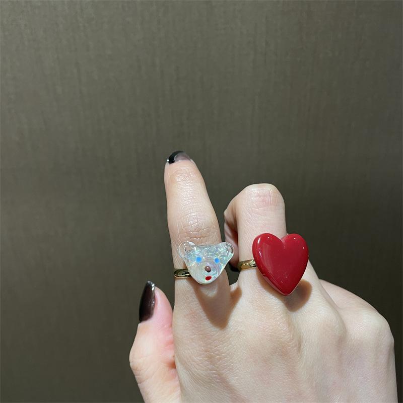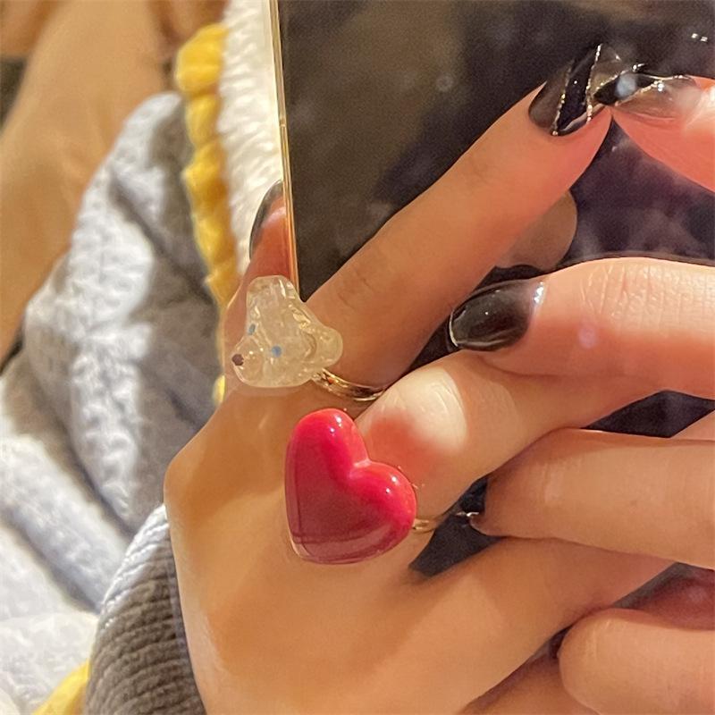 Anillo de dedo ajustable de dieta de amor rojo blanco exquisito estilo ins para niña, anillo de osito blanco, anillo de oso de dibujos animados