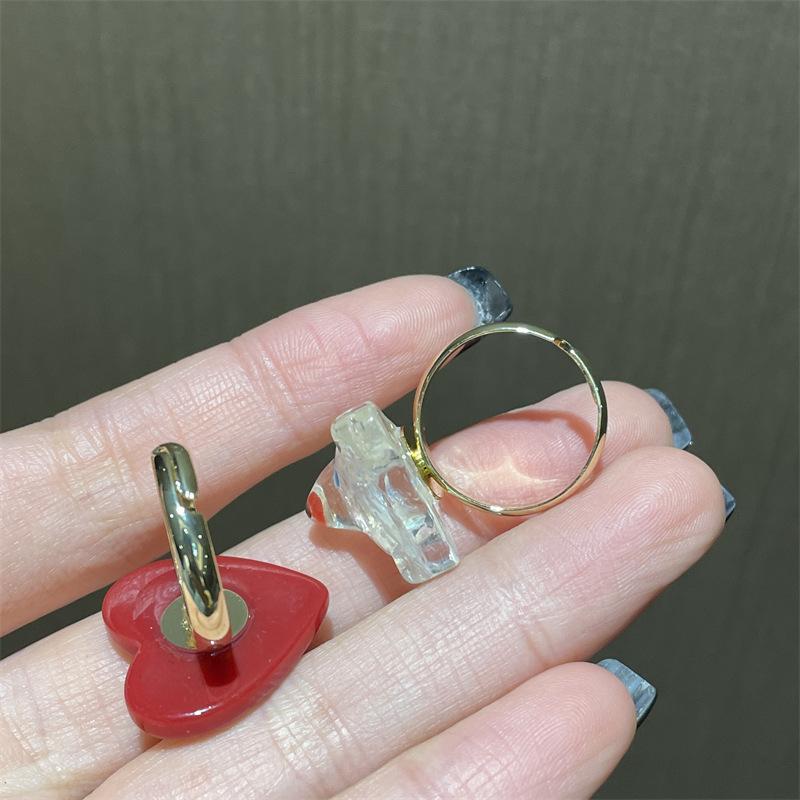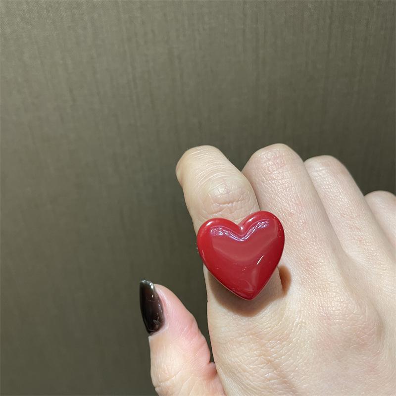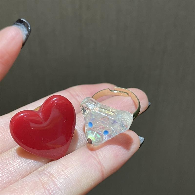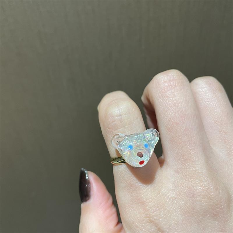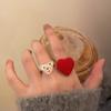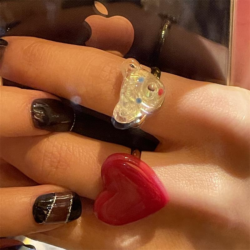 Anillo de dedo ajustable de dieta de amor rojo blanco exquisito estilo ins para niña, anillo de osito blanco, anillo de oso de dibujos animados