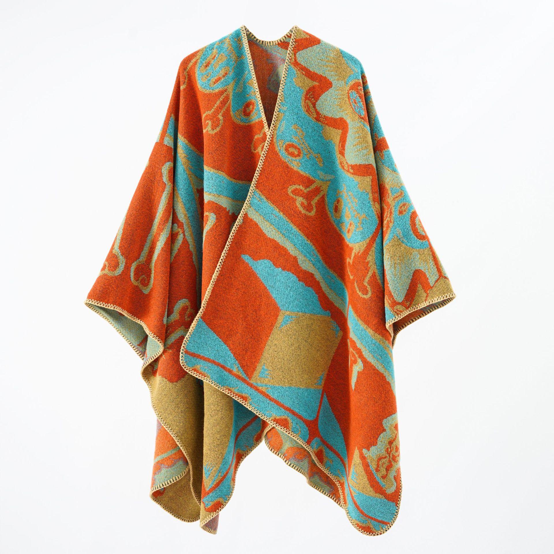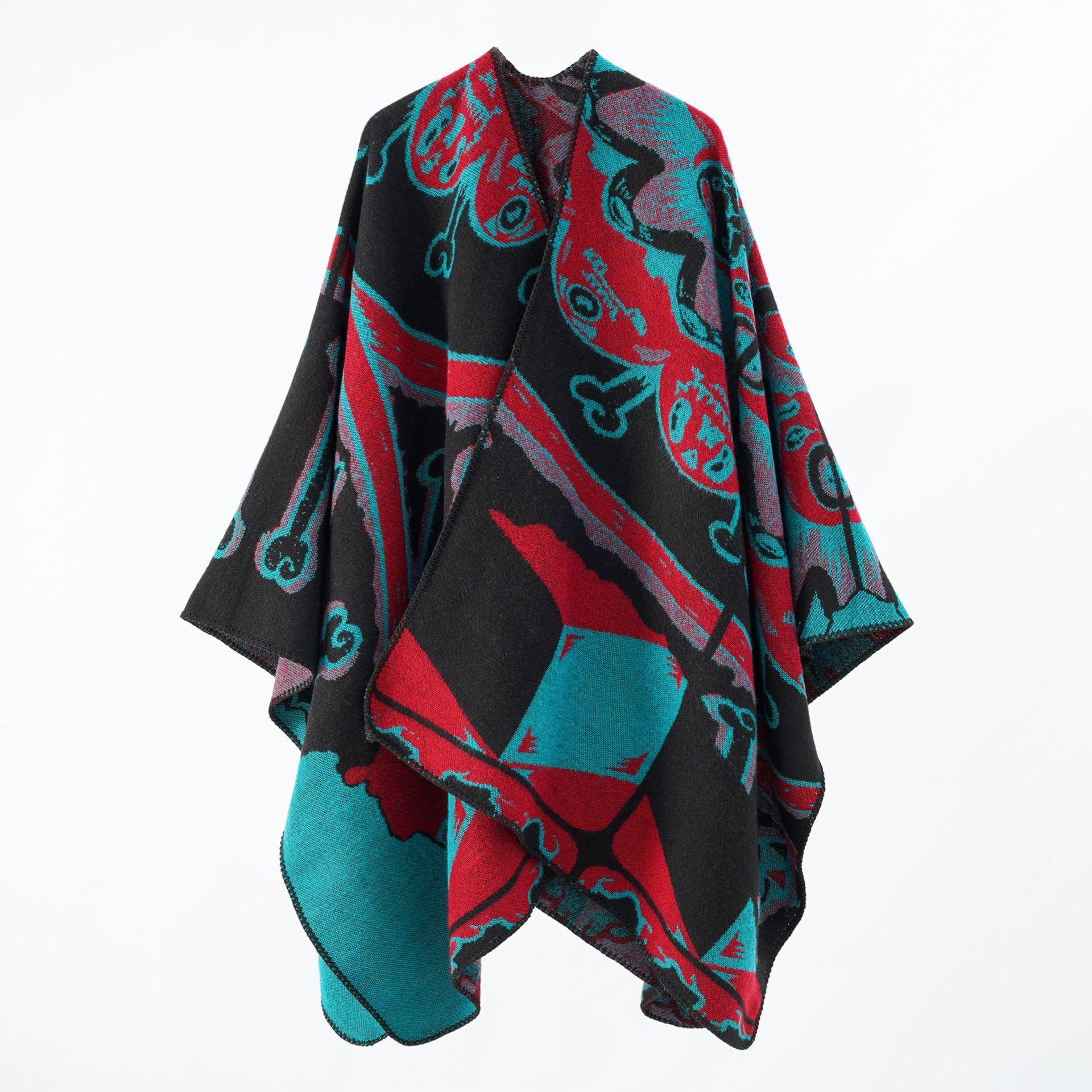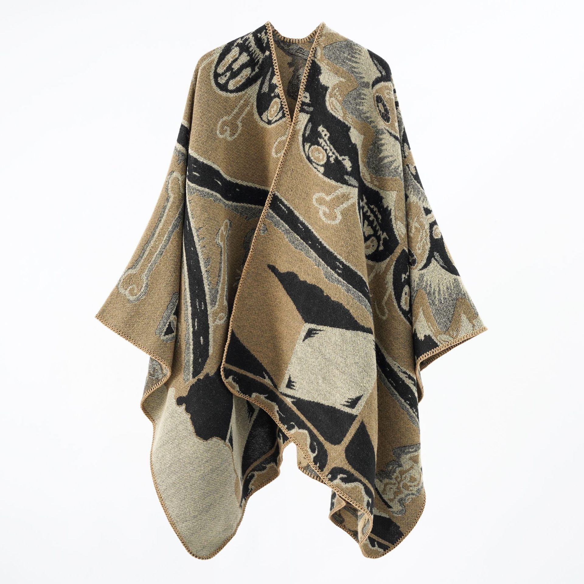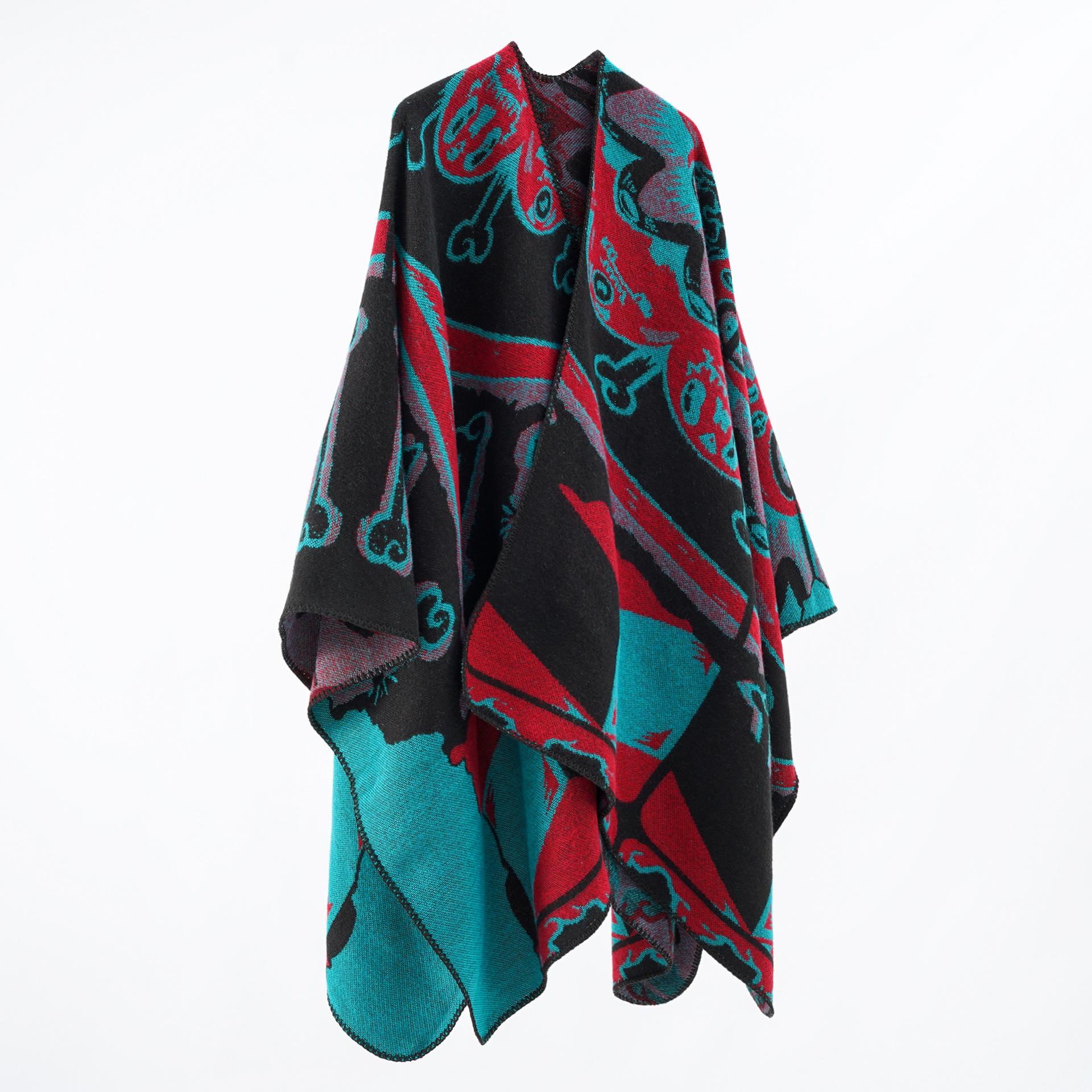 Nuevas explosiones transfronterizas de otoño e invierno, chal cálido, foto de viaje, cárdigan exterior, moda, capa con borlas Joker, venta al por mayor