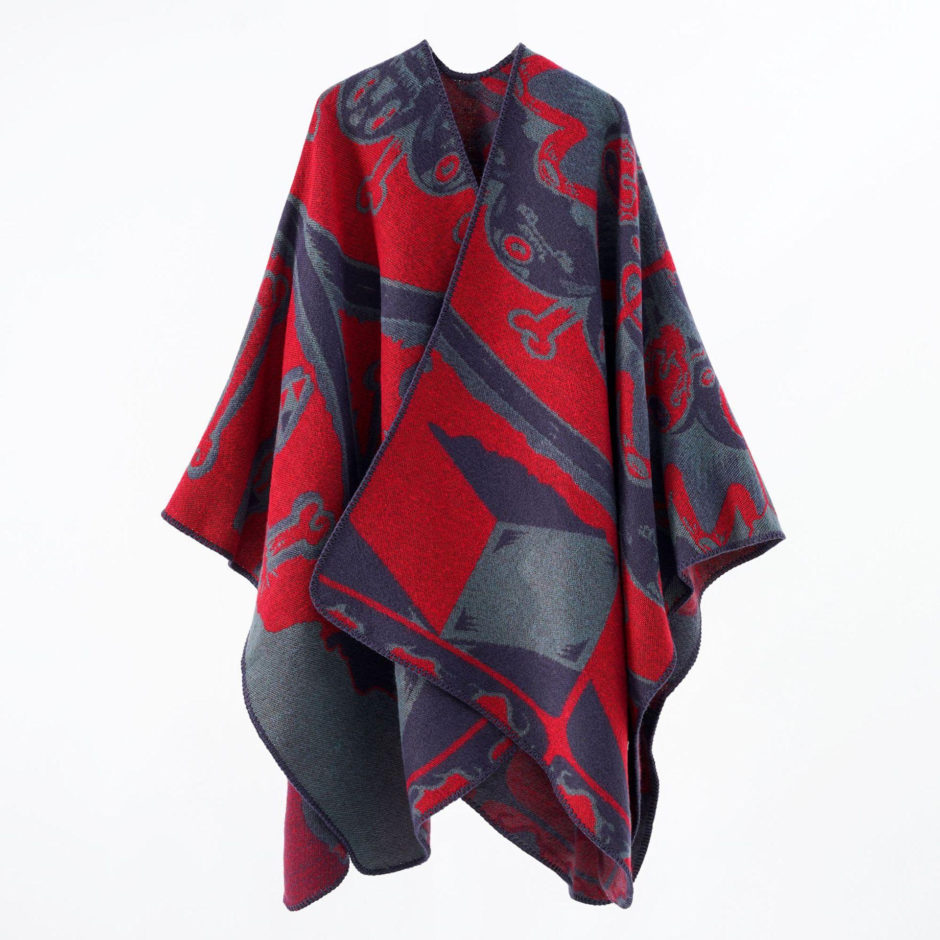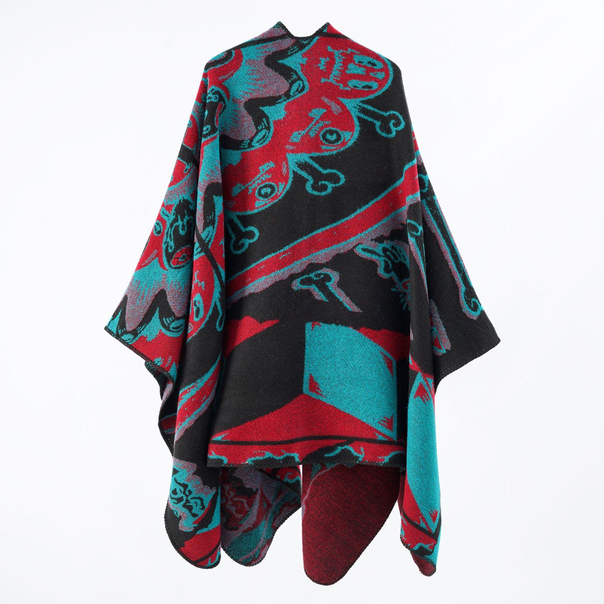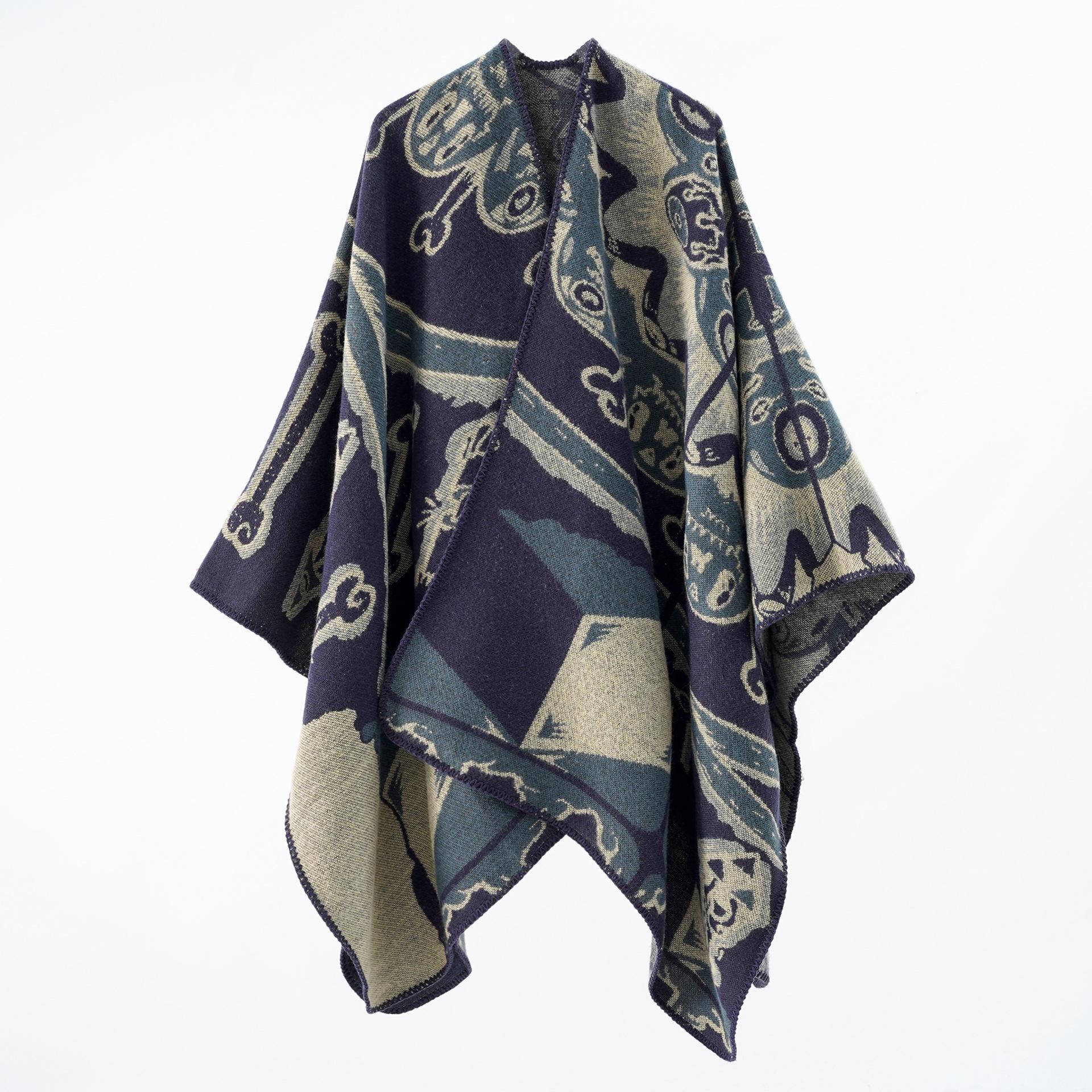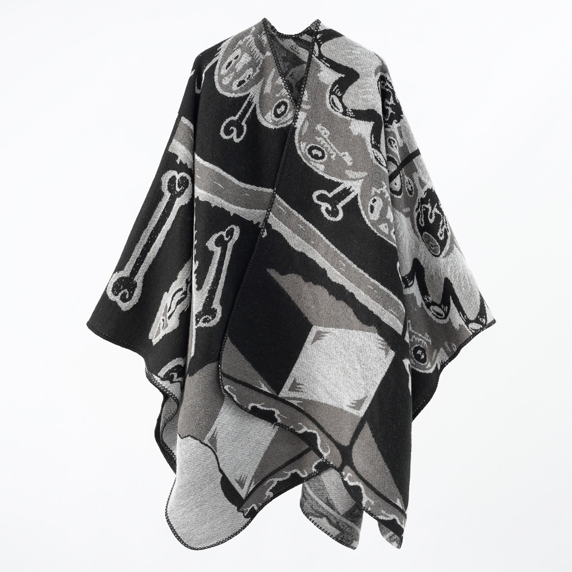 Nuevas explosiones transfronterizas de otoño e invierno, chal cálido, foto de viaje, cárdigan exterior, moda, capa con borlas Joker, venta al por mayor