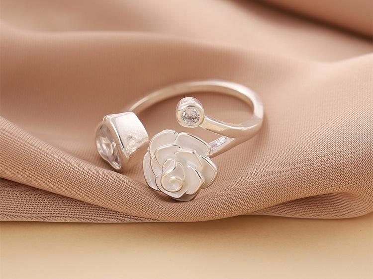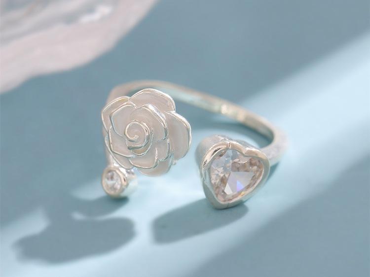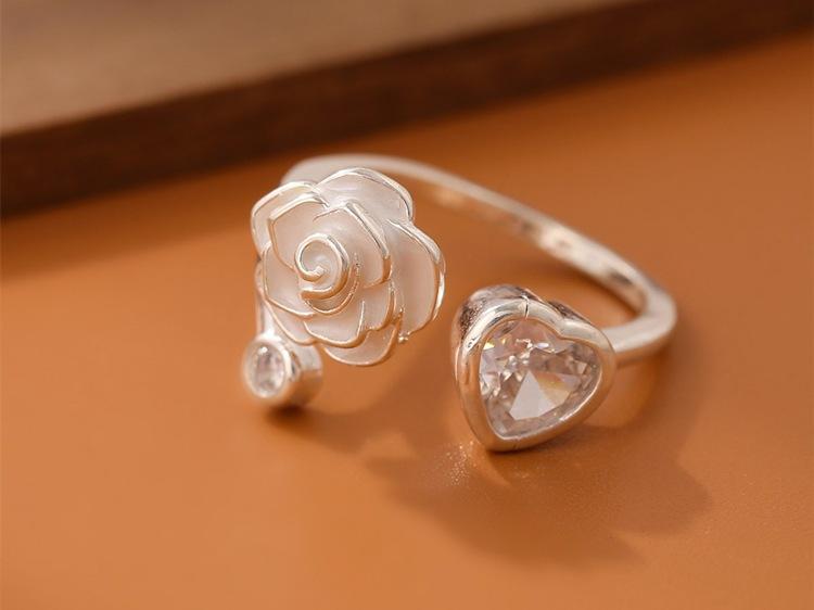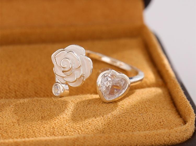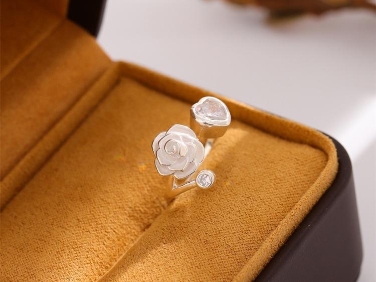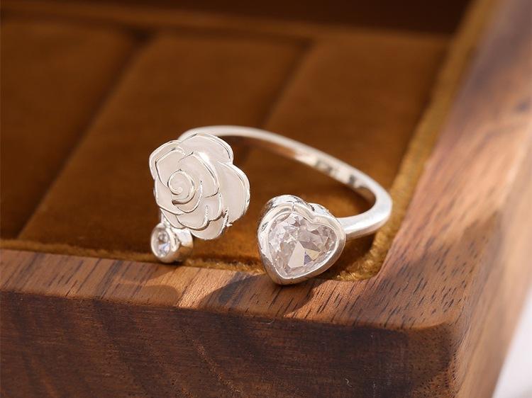 Nueva moda amor diamante rosa temperamento personalidad anillo abierto femenino al por mayor