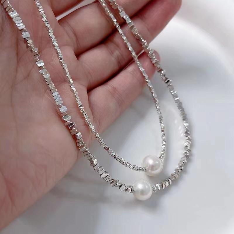 Silver + Bead Bracelet, Silver + Bead Necklace, 925 broken silver + pearl bracelet, 925 broken silver + pearl necklace