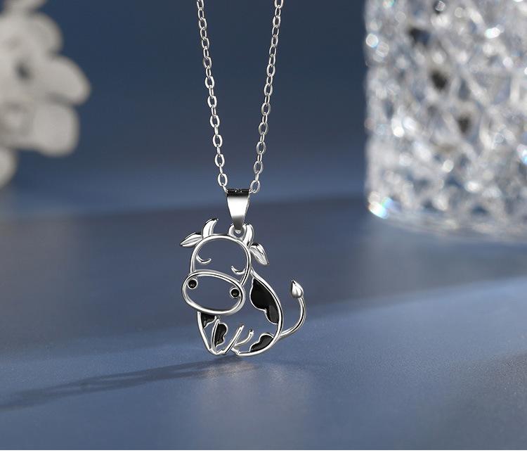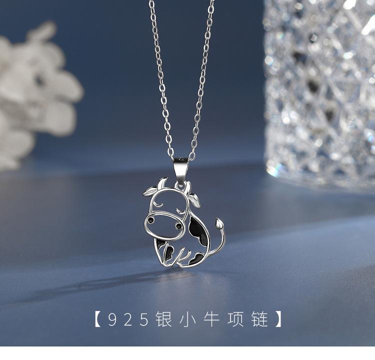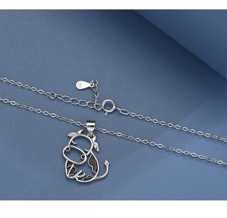 Collar de Plata de Ley 925 para Mujer Europa y América Amazon Transfronterizo Moda Pequeño Animal Hueco Colgante de Vaca Cadena Clavicular Cadena de Collar