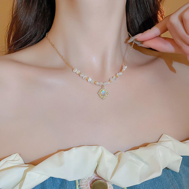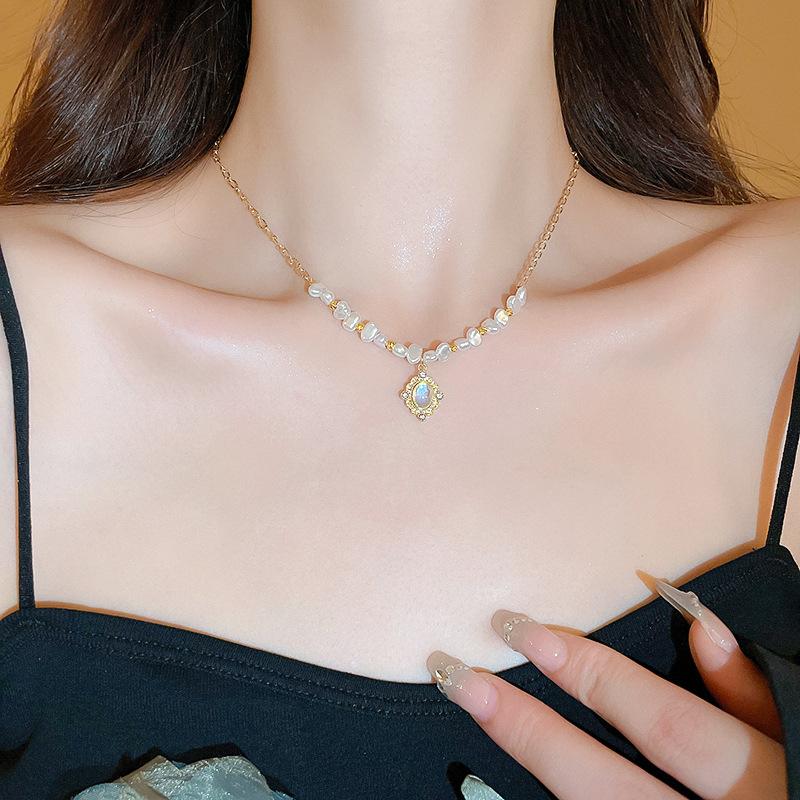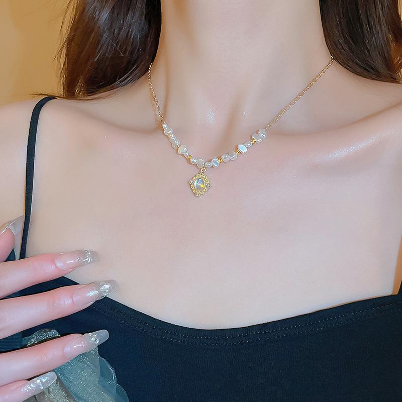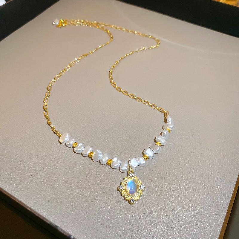 Collar de Perlas Piedra Luna Estilo Palacio Francés, Moda de Alta Gama, Cadena Clavícula Lujo Ligero, Collar Popular Versátil