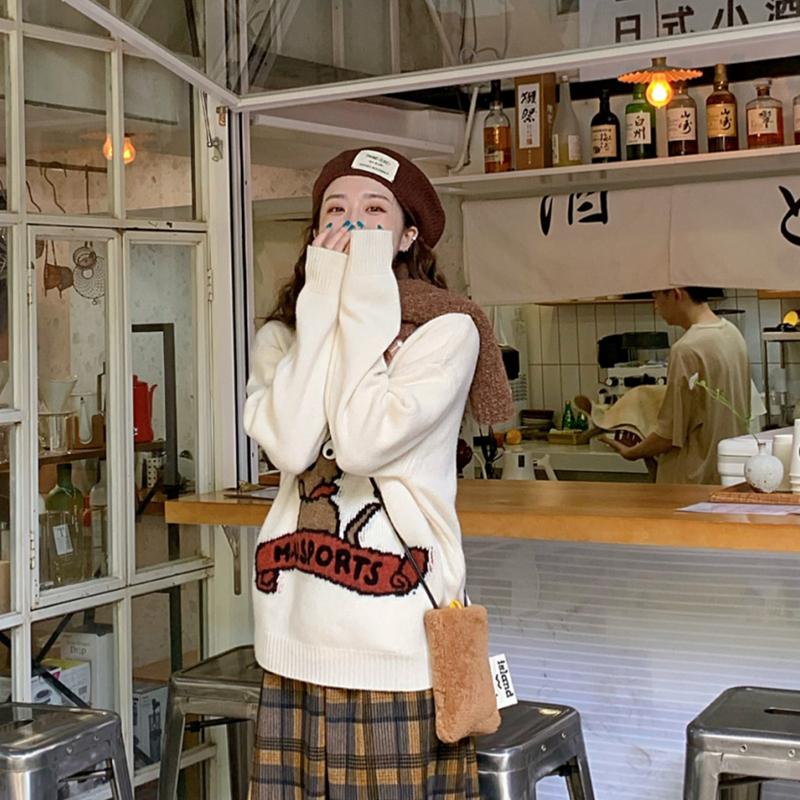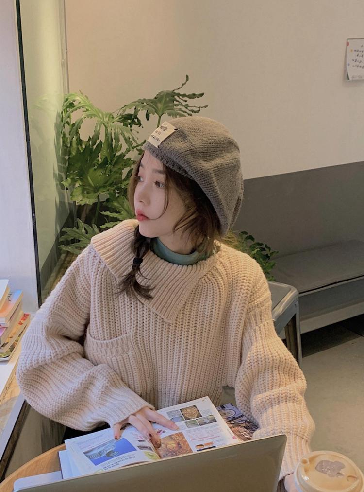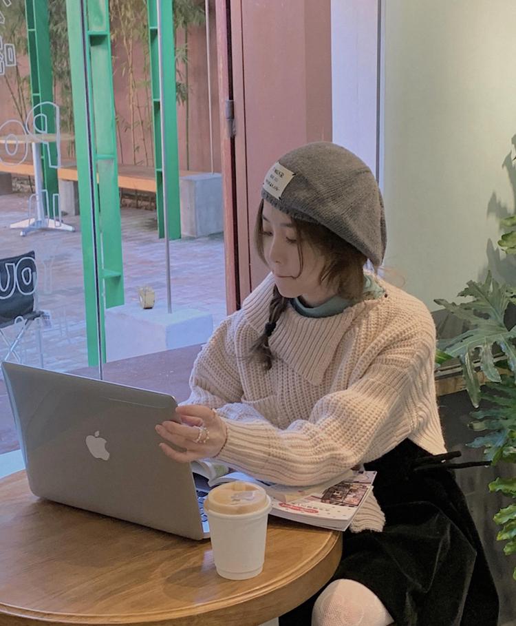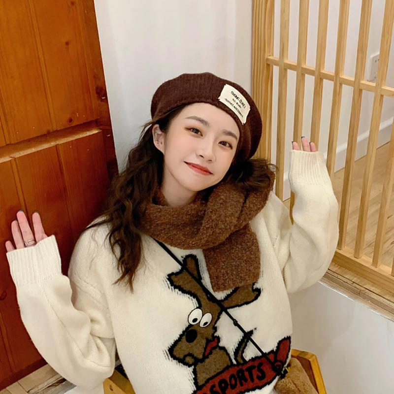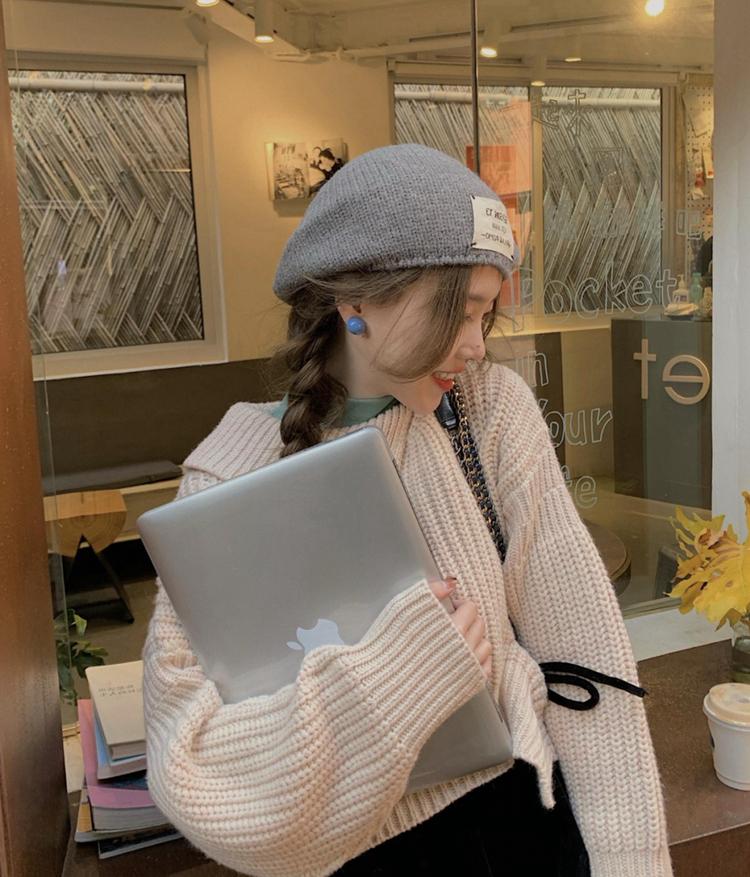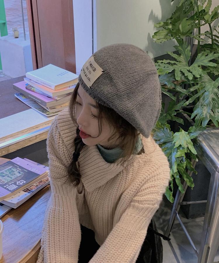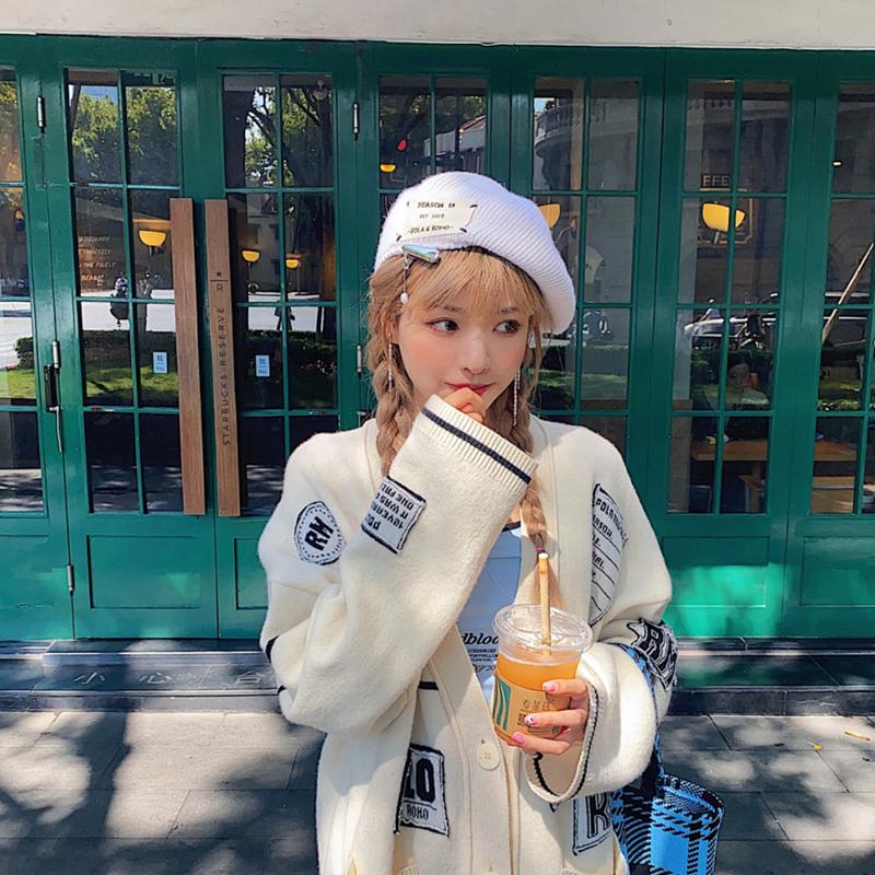 Boina de lana tejida con letras adhesivas de estilo japonés y coreano para mujer, gorro de pintor combinable para otoño e invierno, red de marea roja