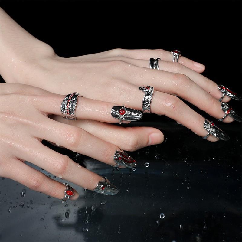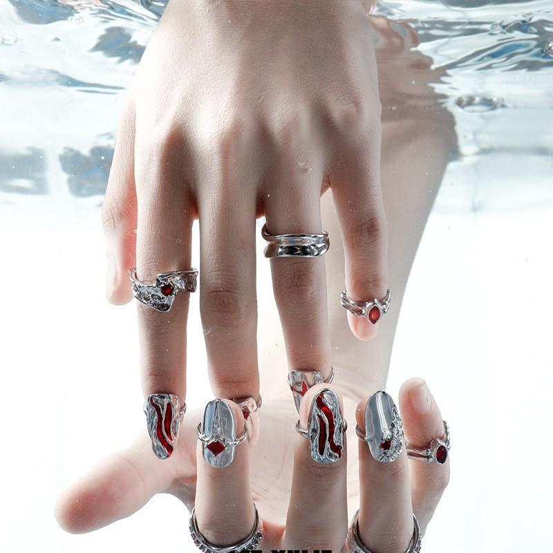 Anillo de Circonita Roja Estilo Coreano para Mujer Estilo Dulce y Cool Ins Diseño de Alta Gama Versátil Moda Anillo Ajustable