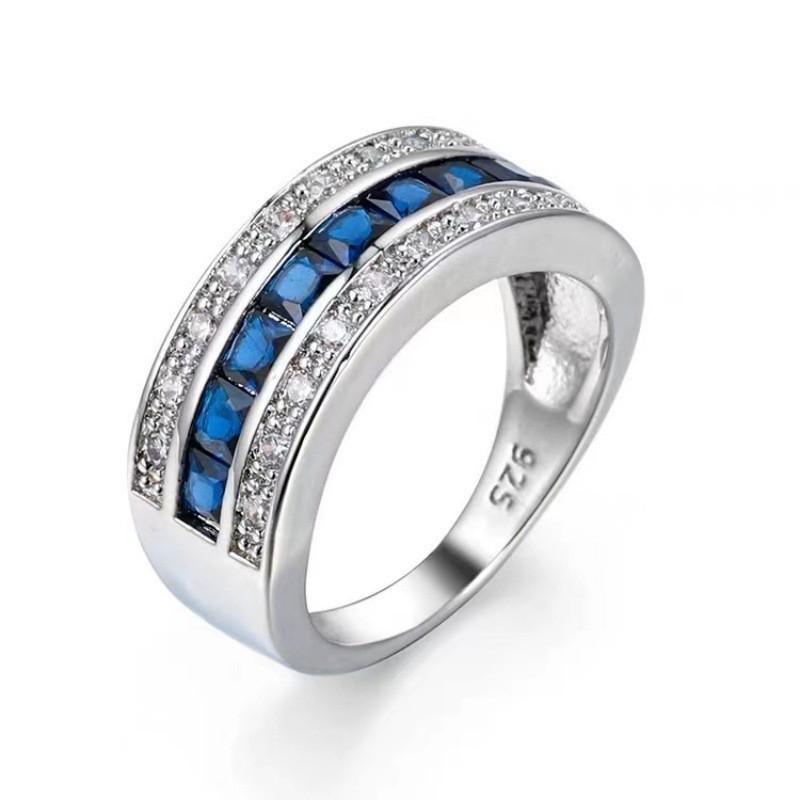 Europa y Estados Unidos nuevo anillo de micro diamantes cruzado transfronterizo moda creativo anillo de zafiro anillo de circonita con incrustaciones de diamantes cuadrados para mujer pulsera