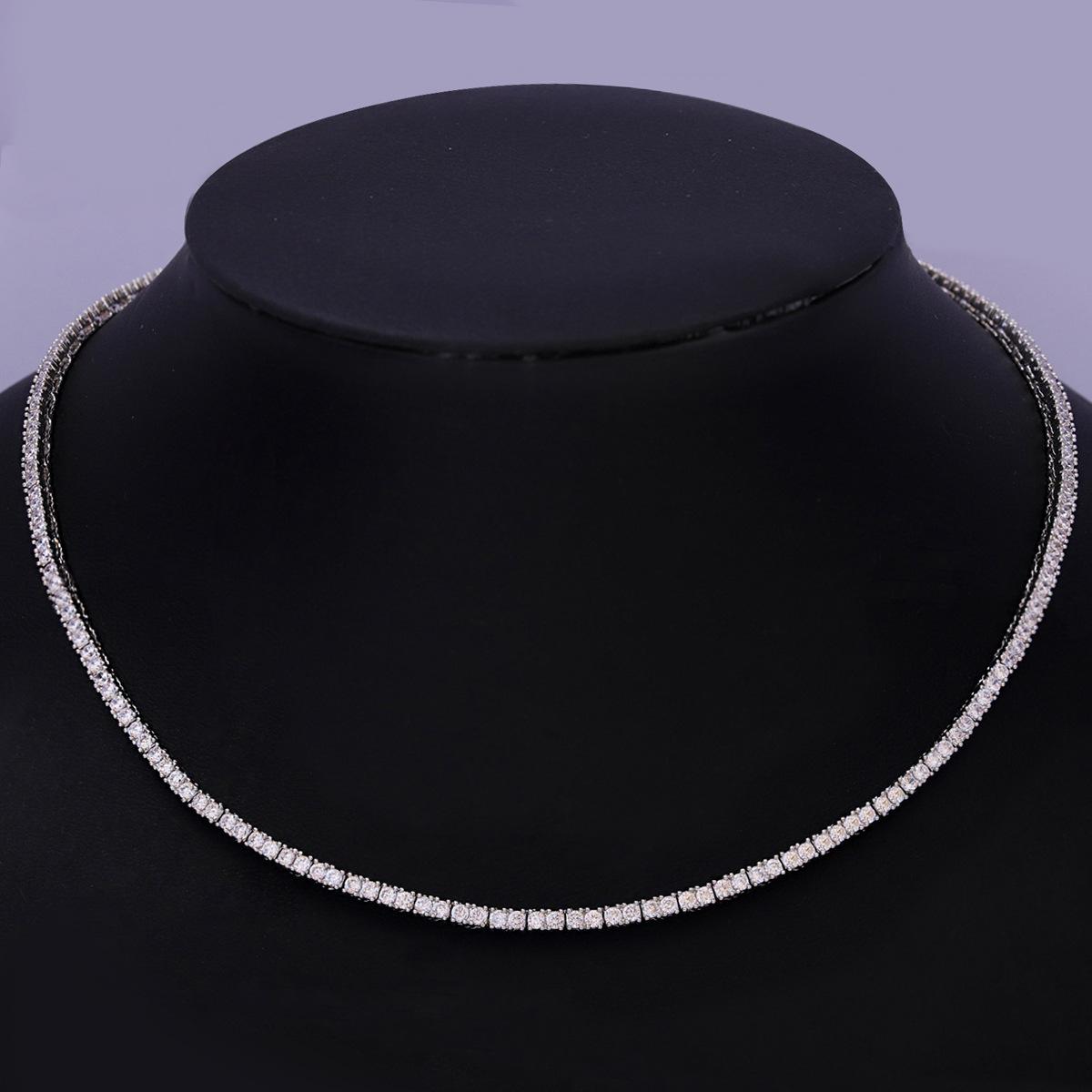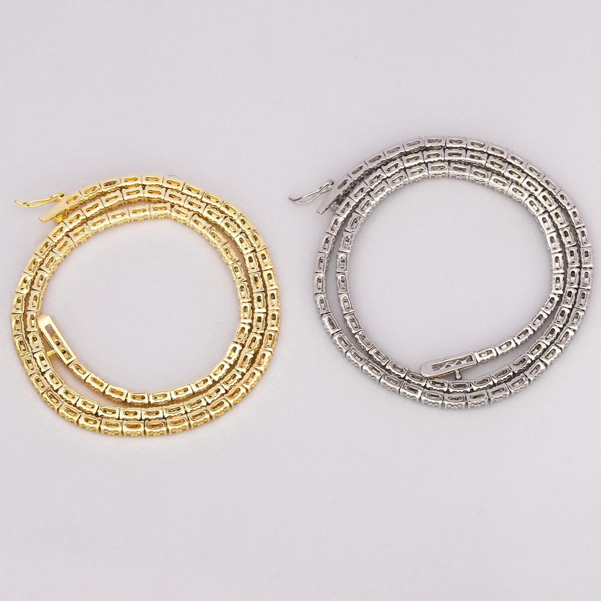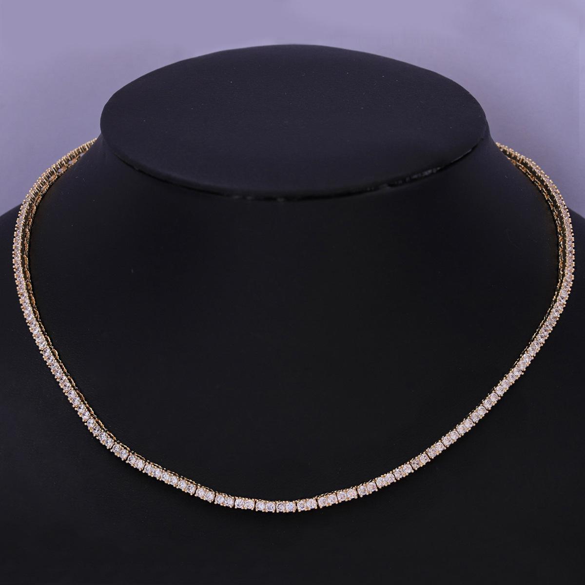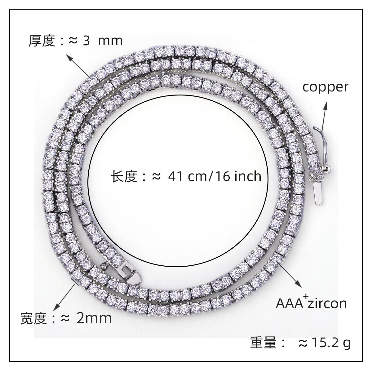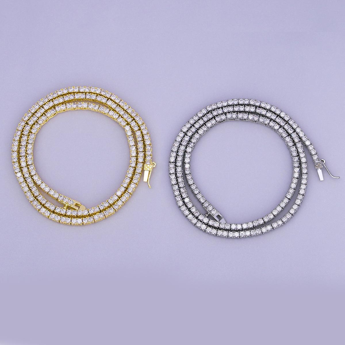 Europeo y Americano Nuevo Hip-Hop 2mm Tenis Moderno Collar de Cobre con Incrustaciones de Piedra Blanca Moda Moderno Más Vendido Accesorios a Juego