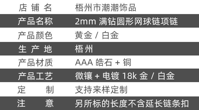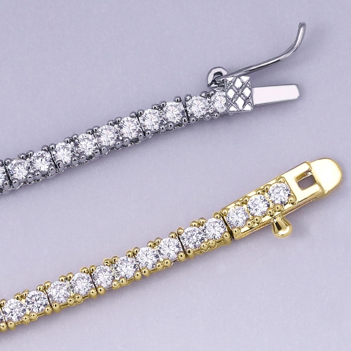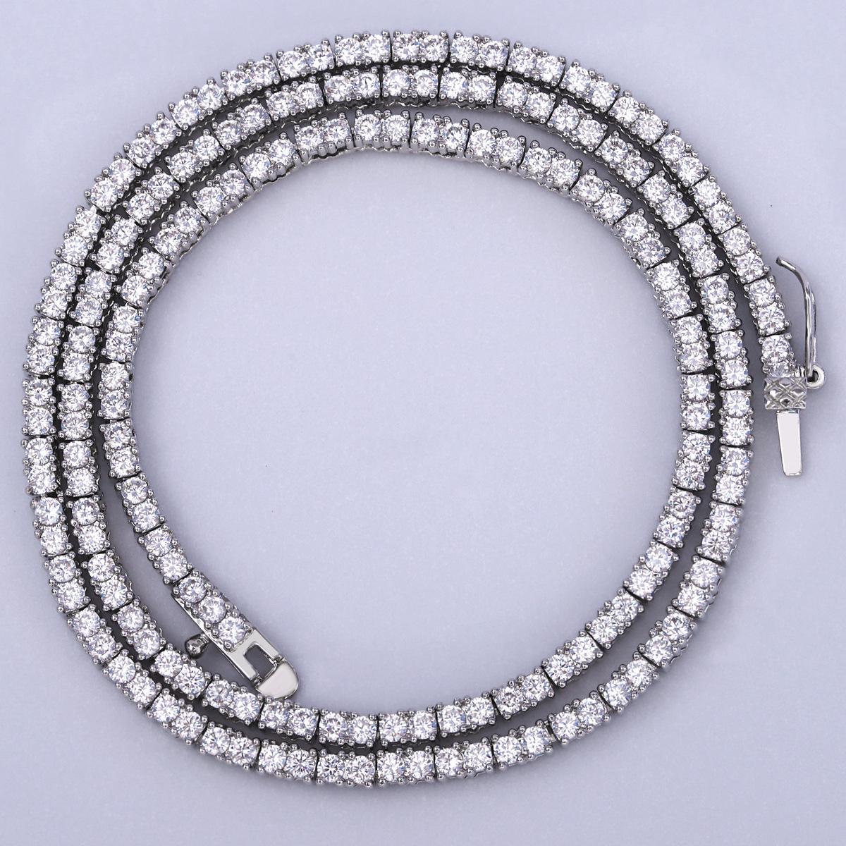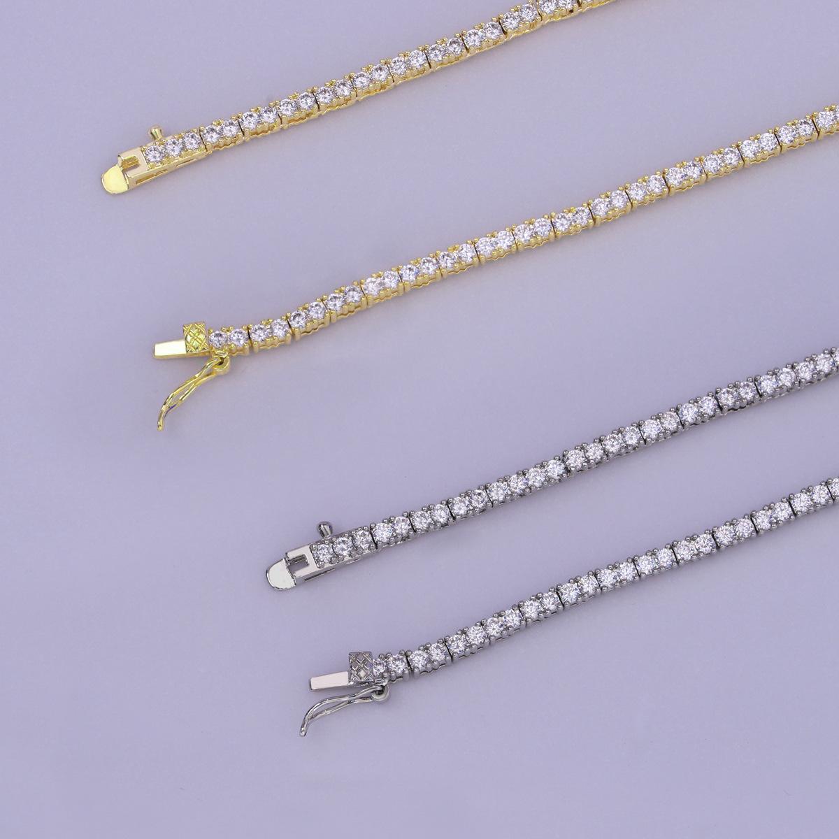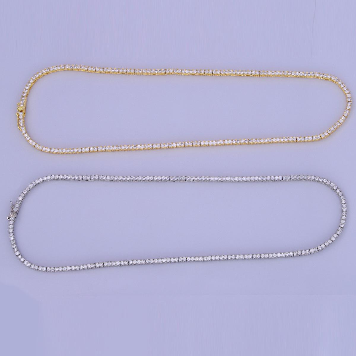 Europeo y Americano Nuevo Hip-Hop 2mm Tenis Moderno Collar de Cobre con Incrustaciones de Piedra Blanca Moda Moderno Más Vendido Accesorios a Juego