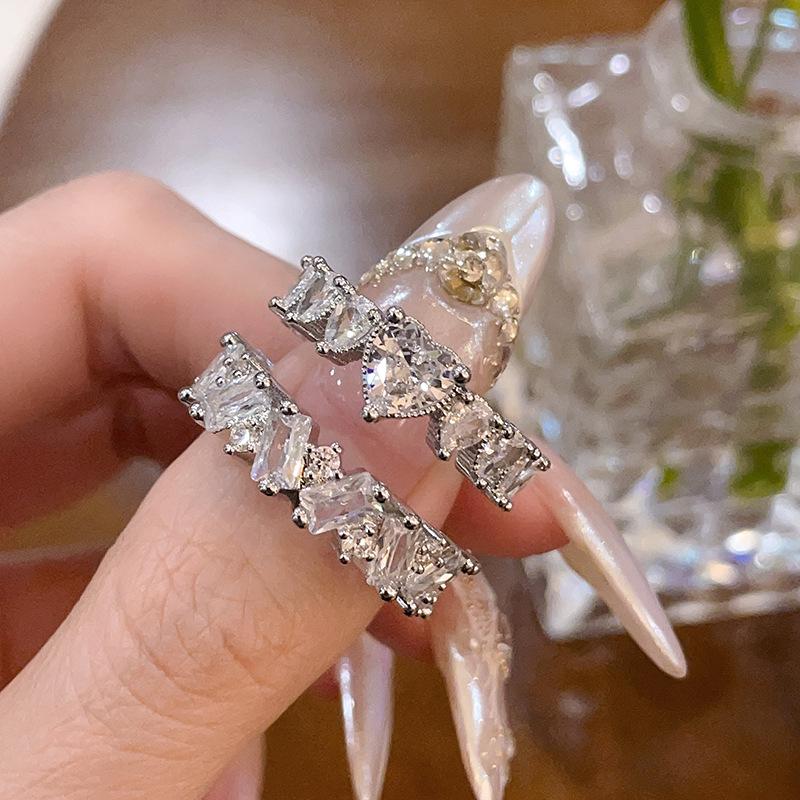Anillo abierto de circonitas con diamantes de alta calidad y diseño de nicho llamativo, ligero, lujoso, apilado, estilo moderno, personalizado.