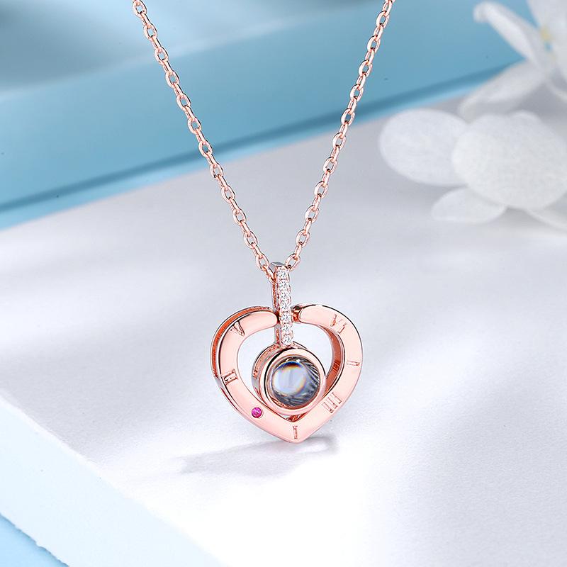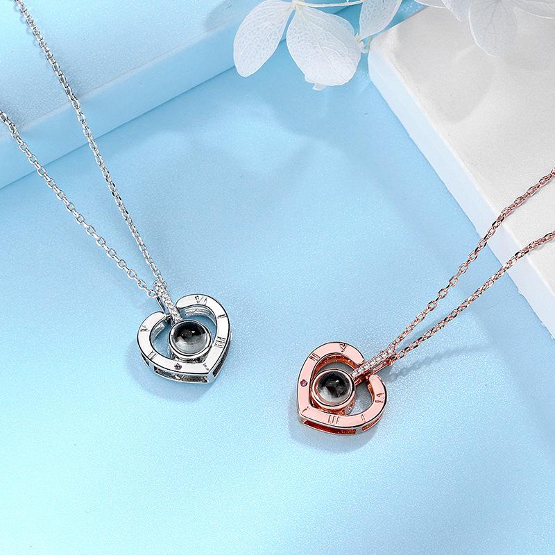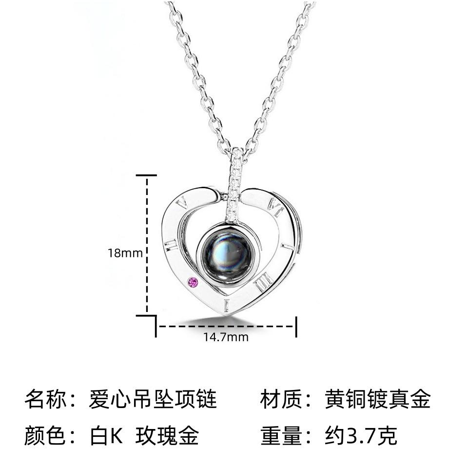 Collar de Proyección de Corazón en Cien Idiomas de Moda Simple para Mujer, Colgante de Amor de Personalidad, Cadena Corta para Clavícula