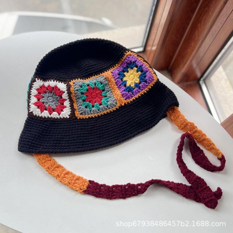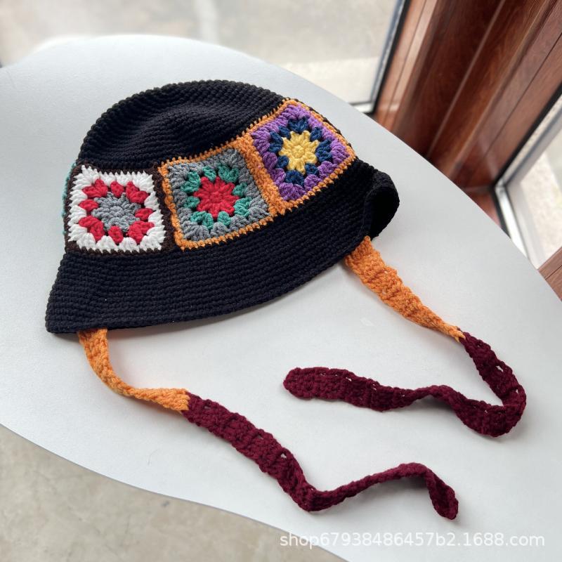 Nuevo Sombrero de Pescador Casual Tejido a Crochet Hecho a Mano Combinable de Color en Contraste para Mujer Moda Lana Tejido Sombrero Vintage Hueco Sombrero de Cubeta Moderno
