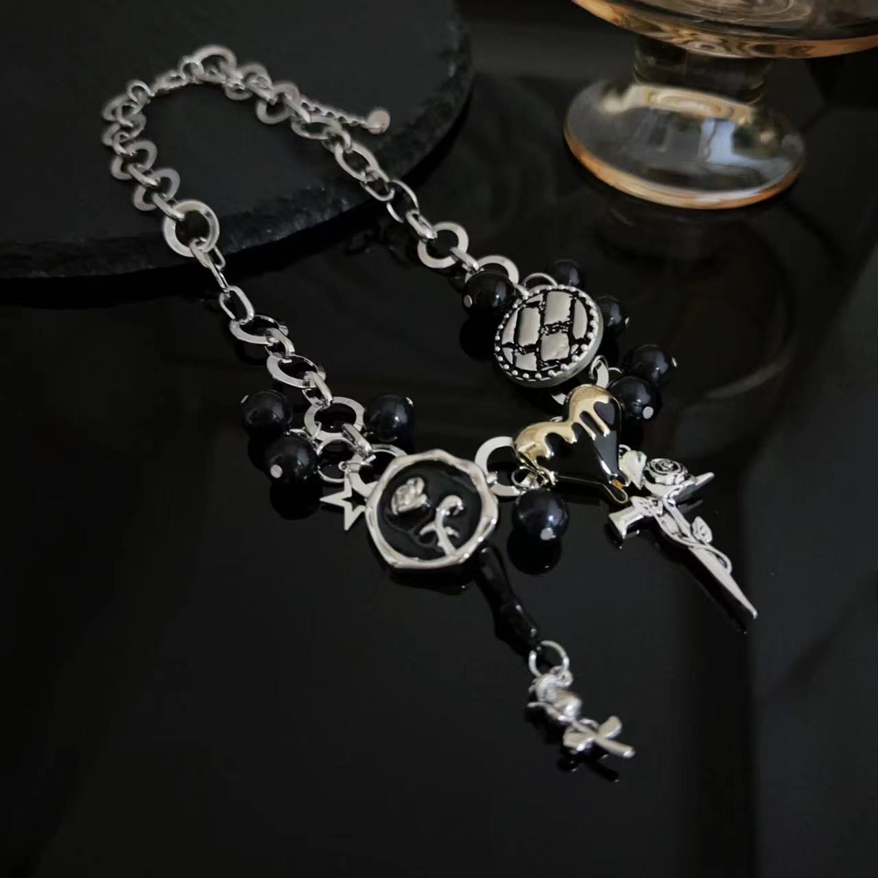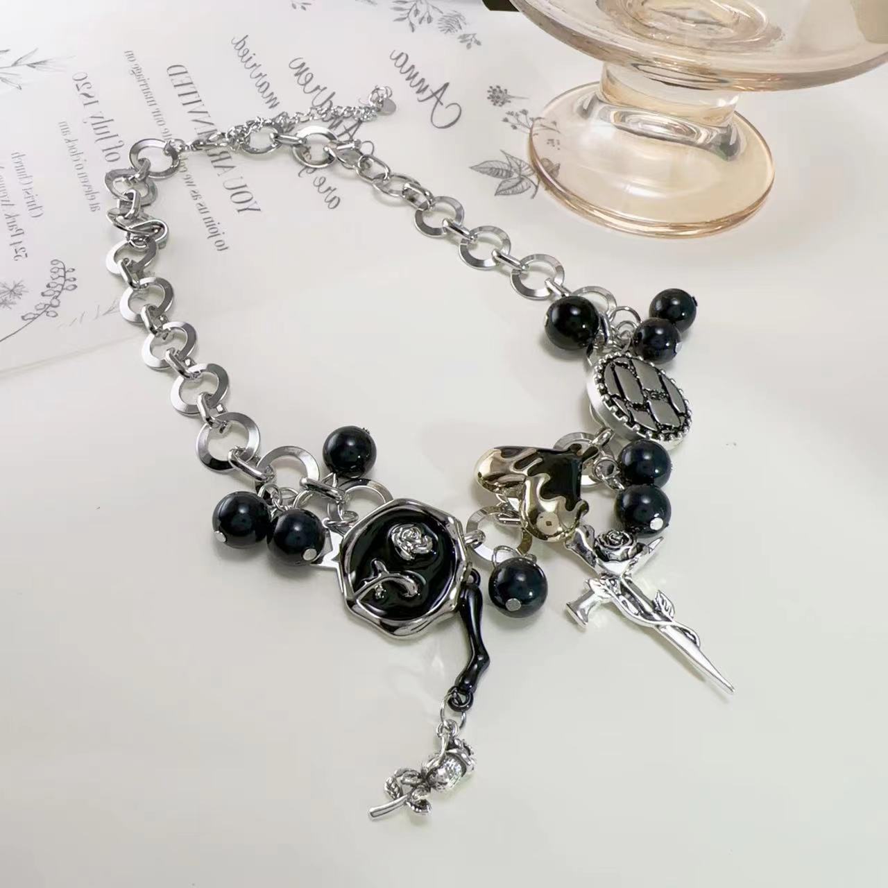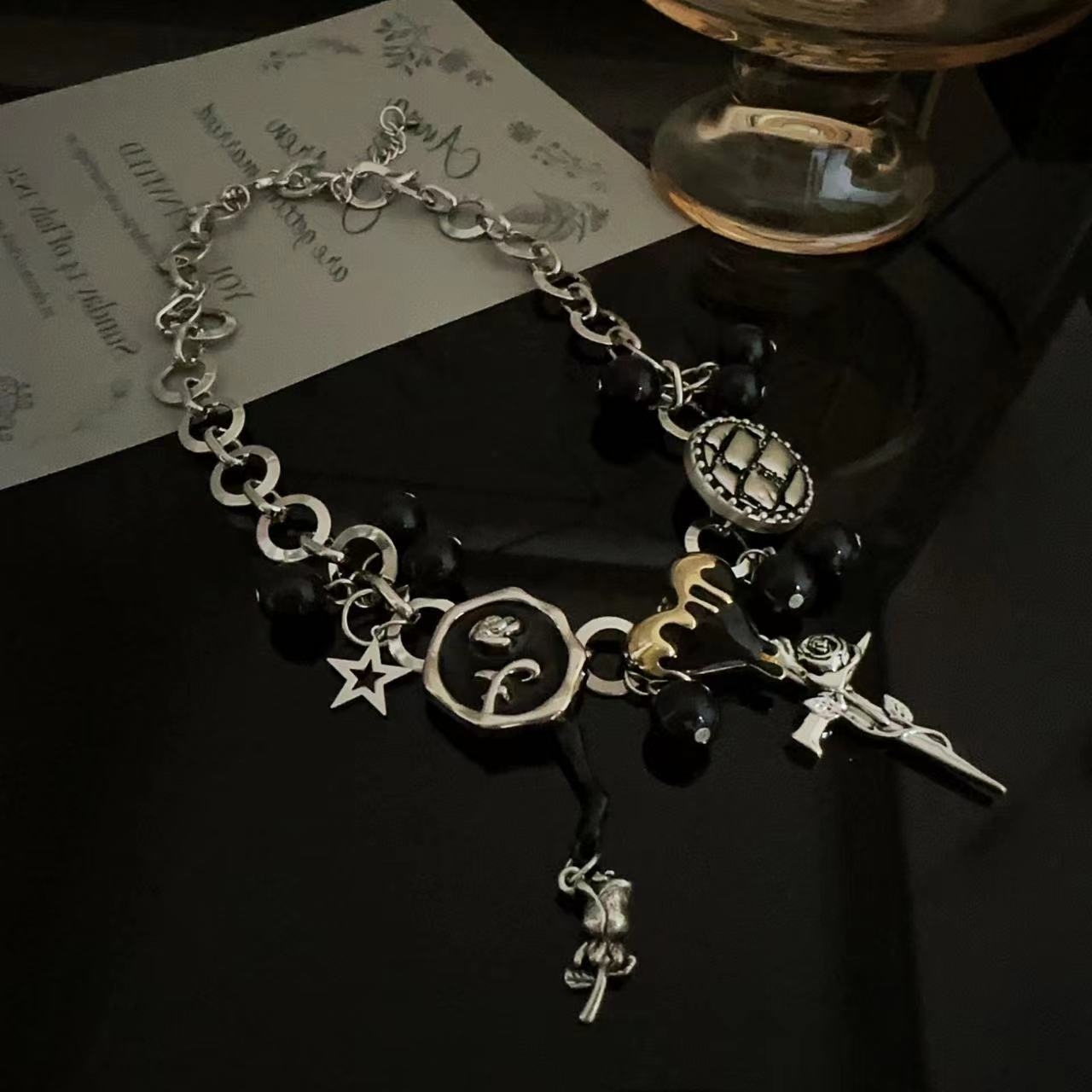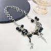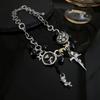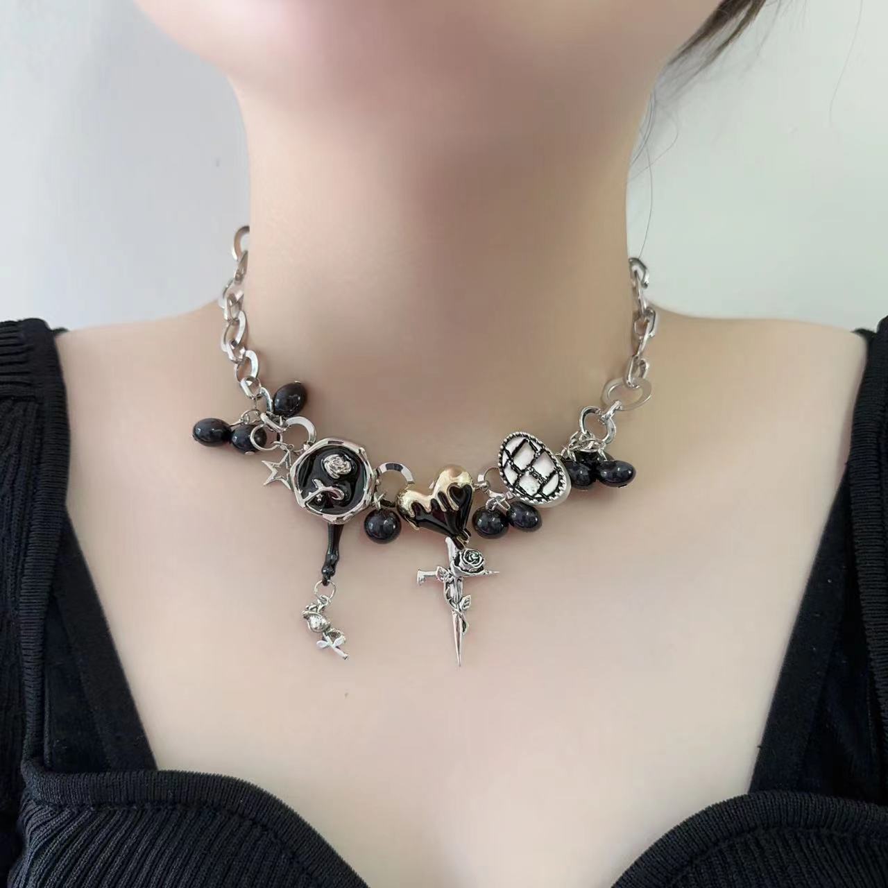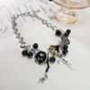 Y2K Negro Botón Estrella Rosa Colgante Cadena Clavícula Collar para Mujer Diseño Nicho Elegante Lujo Ligero Versátil Collar para Mujer