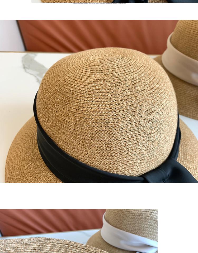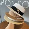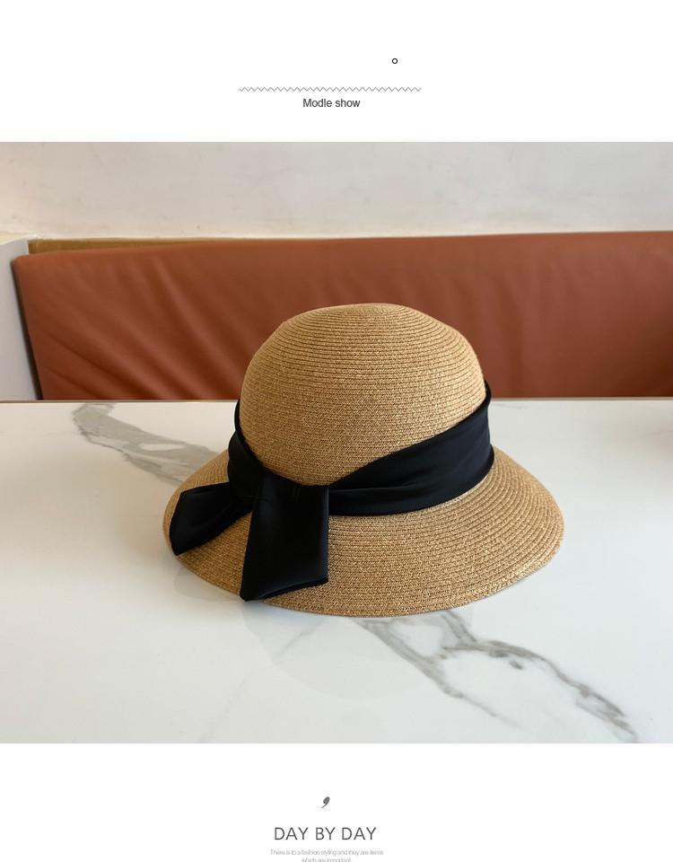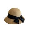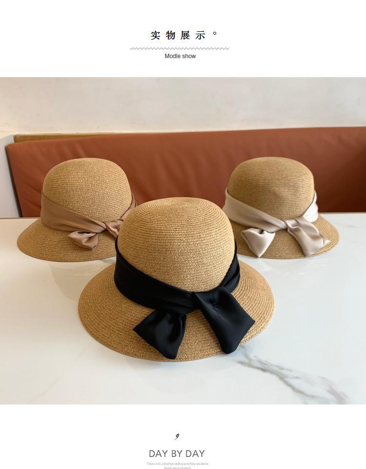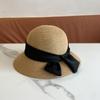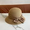 Sombrero de Paja de Alta Gama para Mujer Versátil Casual Moda Protector Solar Sombrero para el Sol Sombrero de Copa Lazo Exterior Ocio Nuevo Estilo