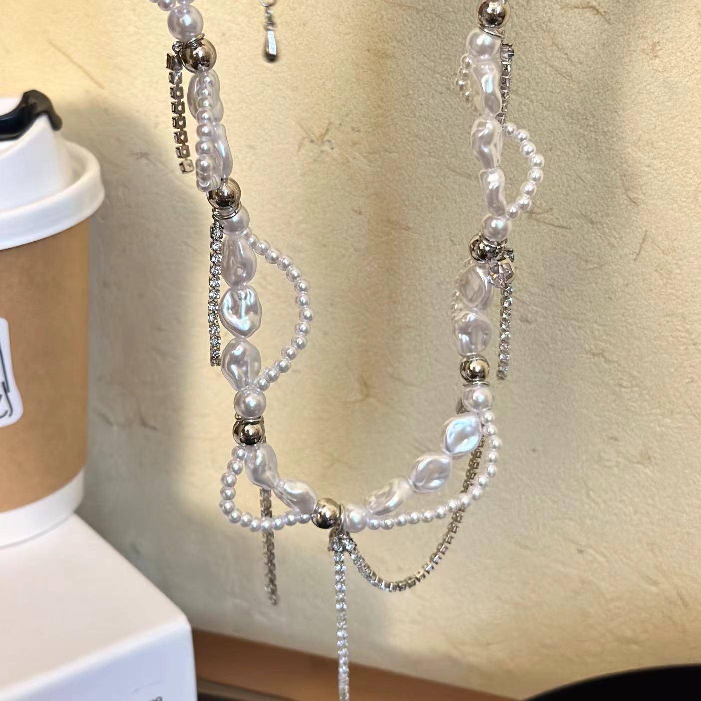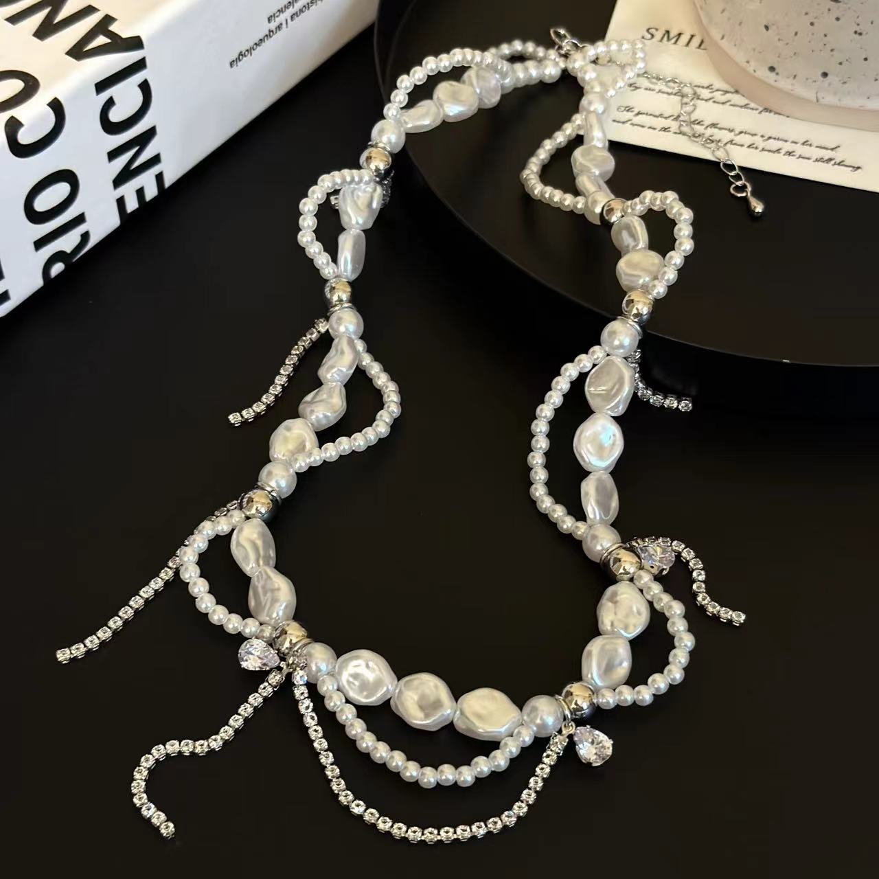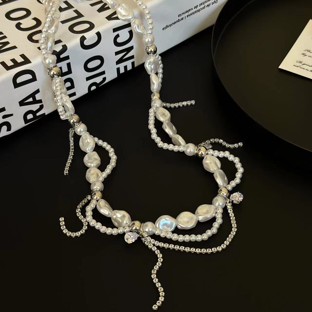 Collar multicapa con perlas y cuentas hecho a mano para mujer, diseño de nicho, cadena de clavícula elegante, de lujo y de alta gama.