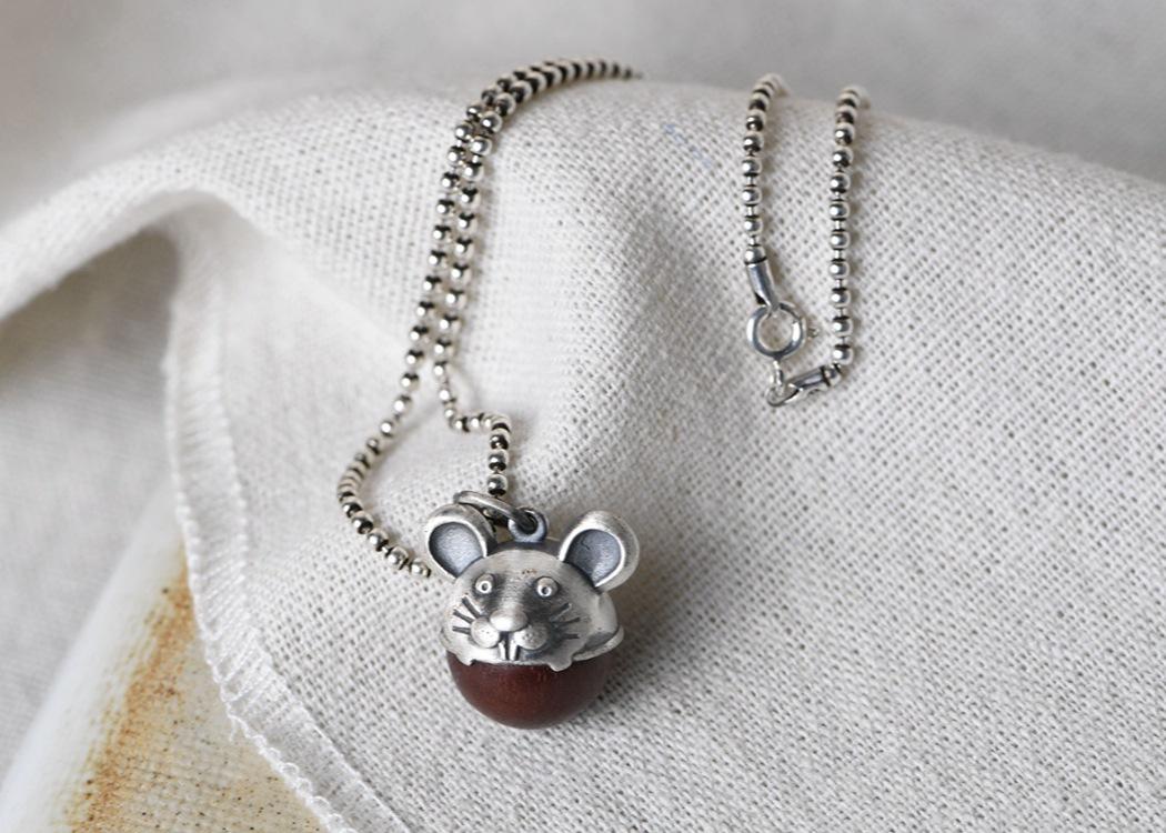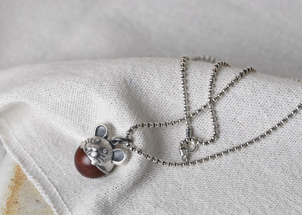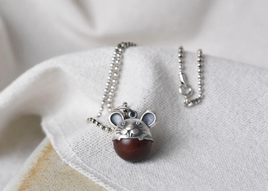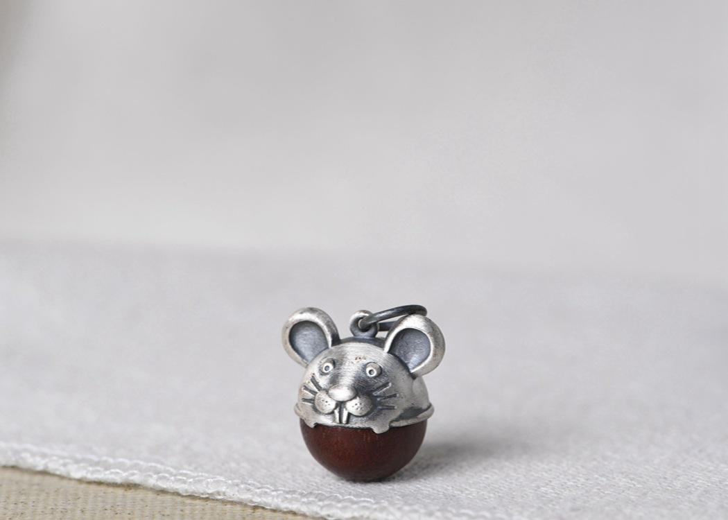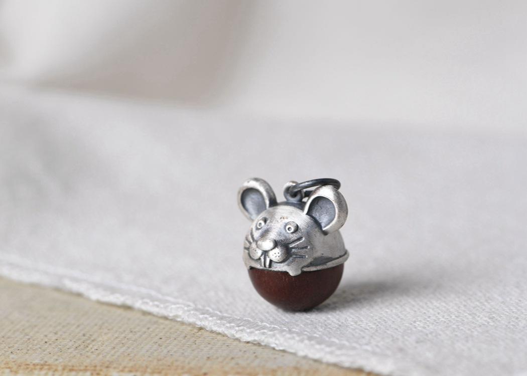 Pulsera DIY de plata tailandesa con pie de ciervo dorado y colgante de ratón de sándalo para hombre y mujer.