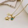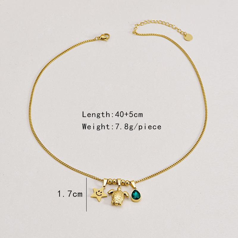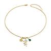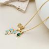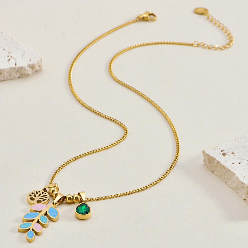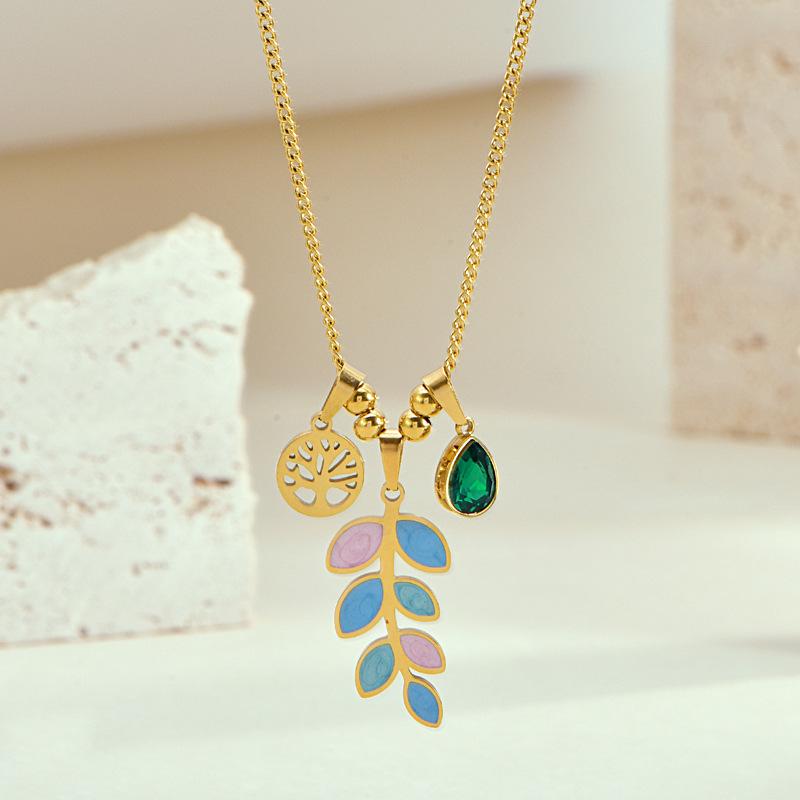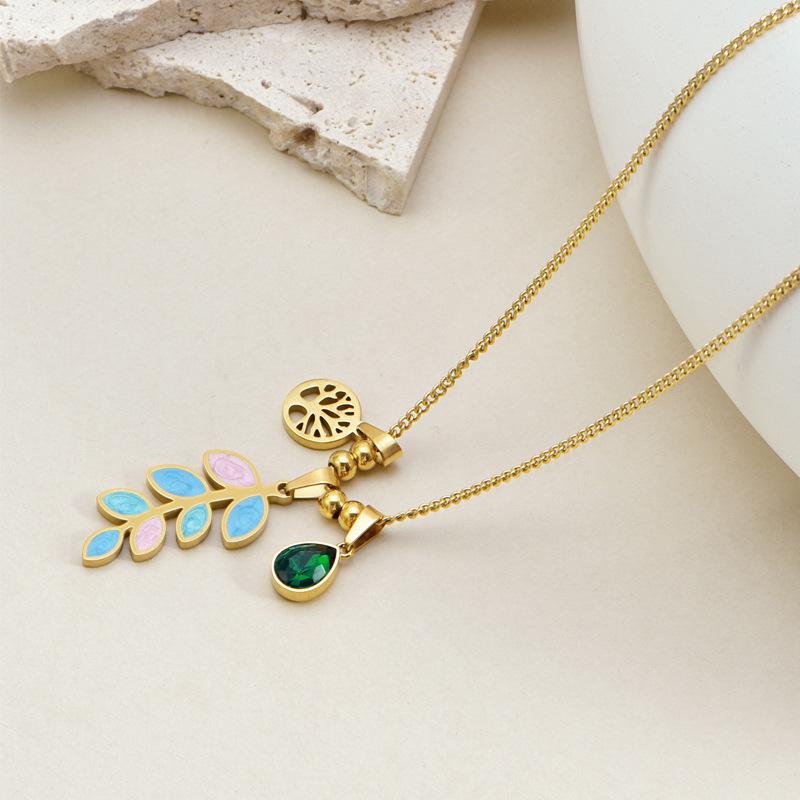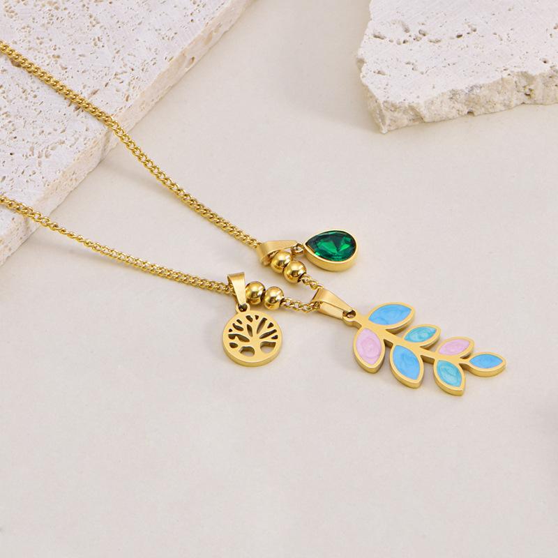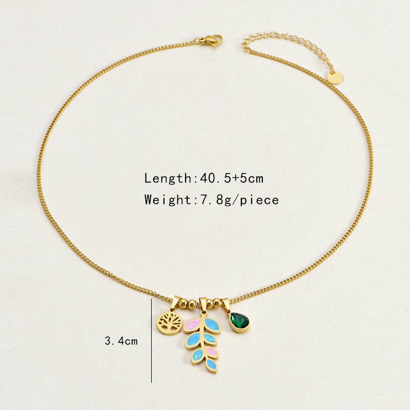 Collar Transfronterizo de Personalidad Combinable Hojas de Color Gotas de Agua Zircón de Imitación Camiseta Cadena Clavicular Color Conservante Acero Inoxidable Árbol de la Vida