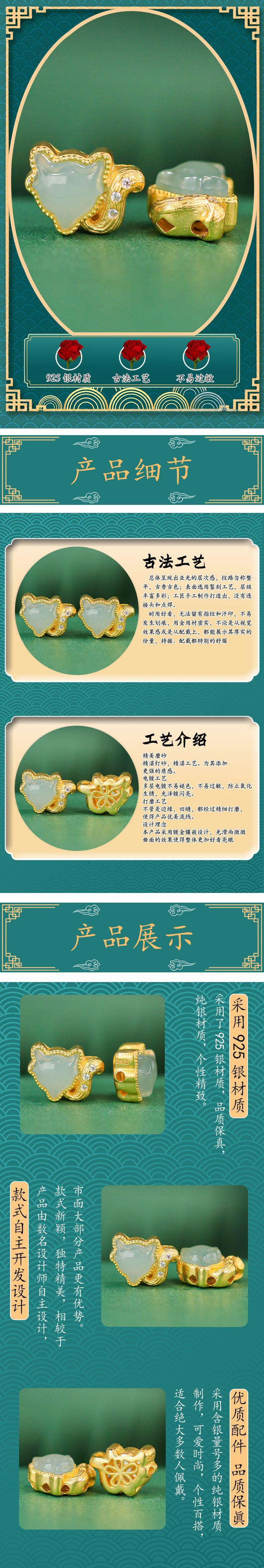 Jadeíta natural A con incrustaciones de oro de 24 quilates, chapado en plata 925, accesorios para pulseras y collares.