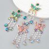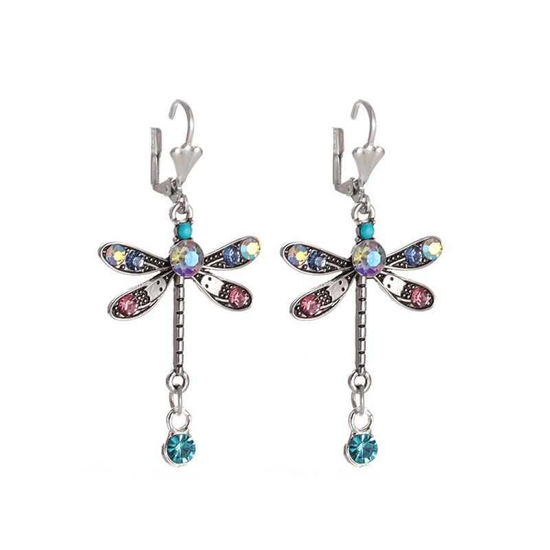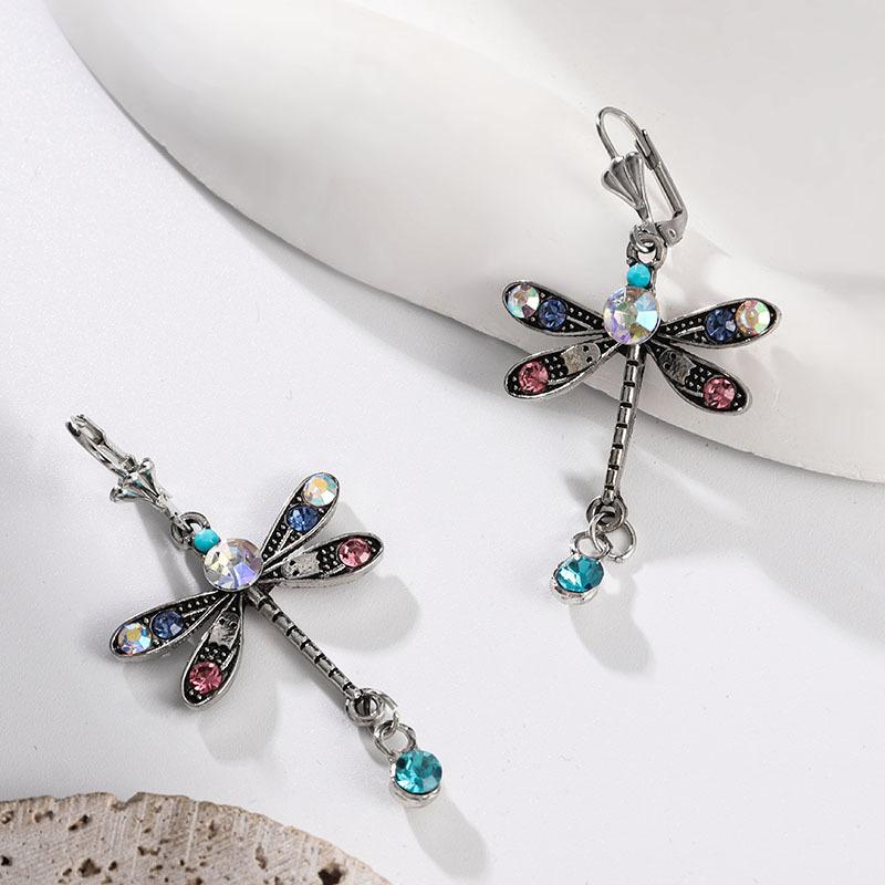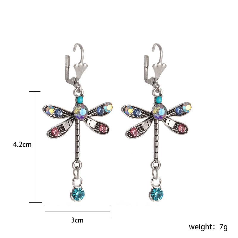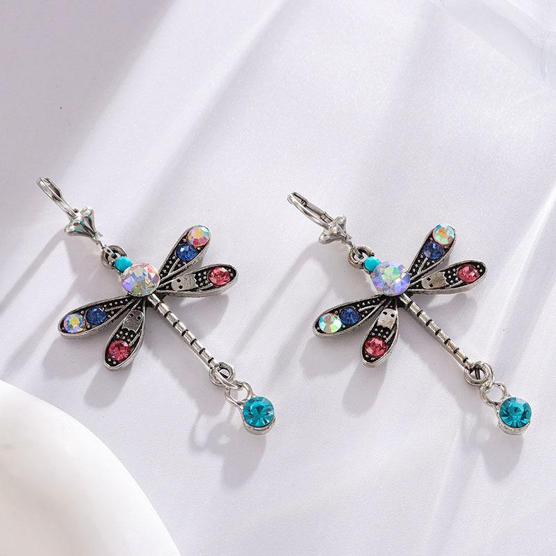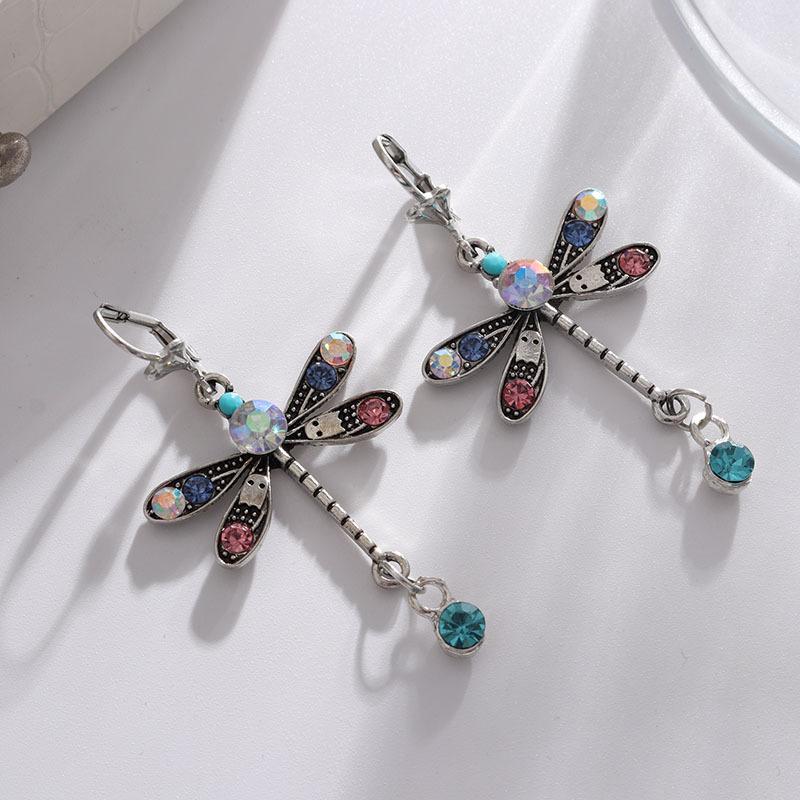 Pendientes de libélula de moda transfronteriza europea y americana Longrui, pendientes de mujer, elegantes pendientes largos y sencillos de diamantes de colores, pendientes al por mayor
